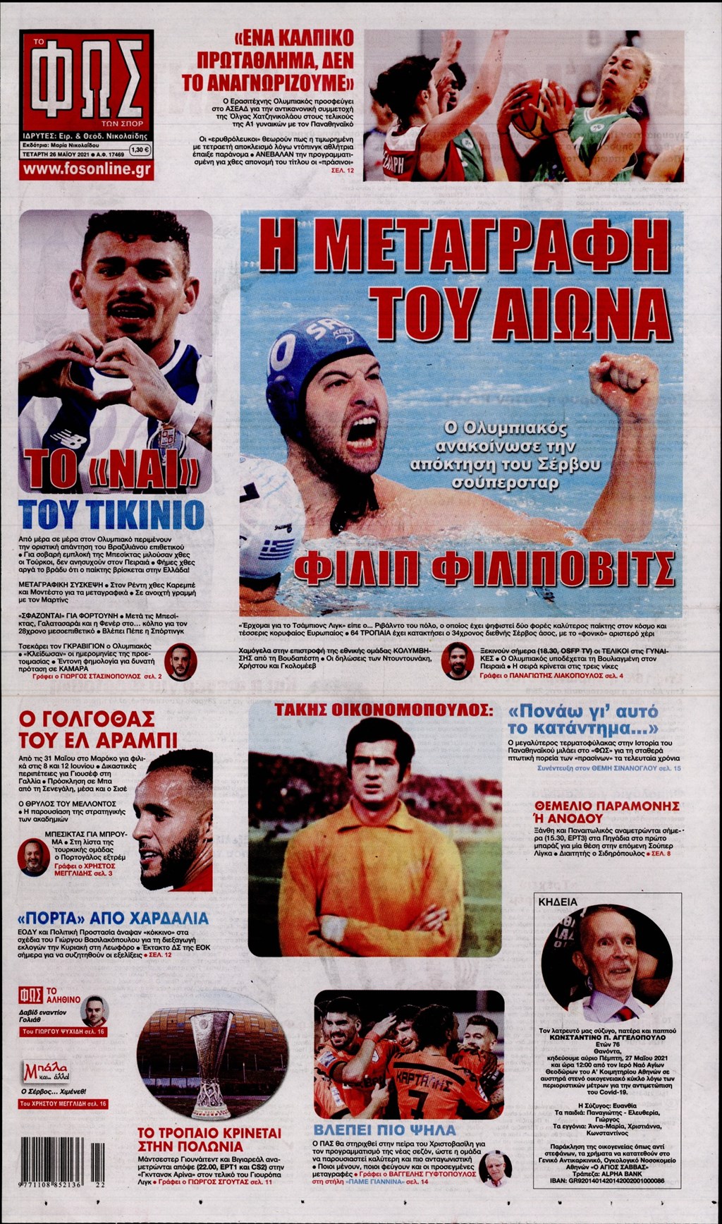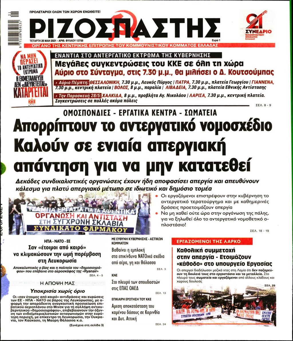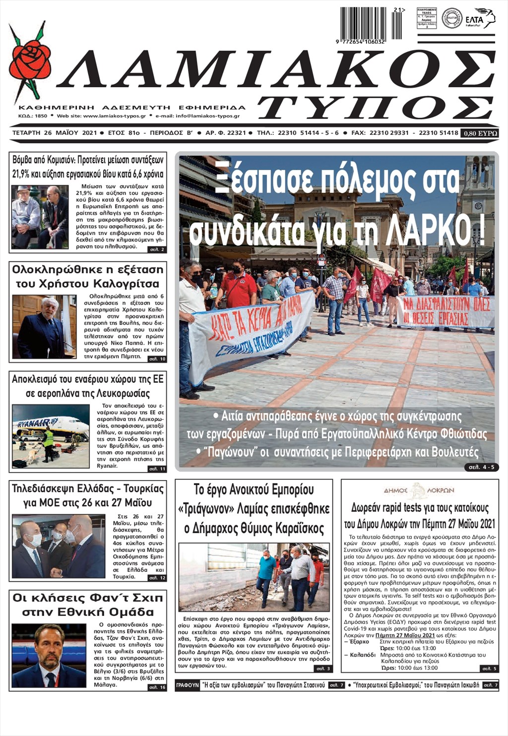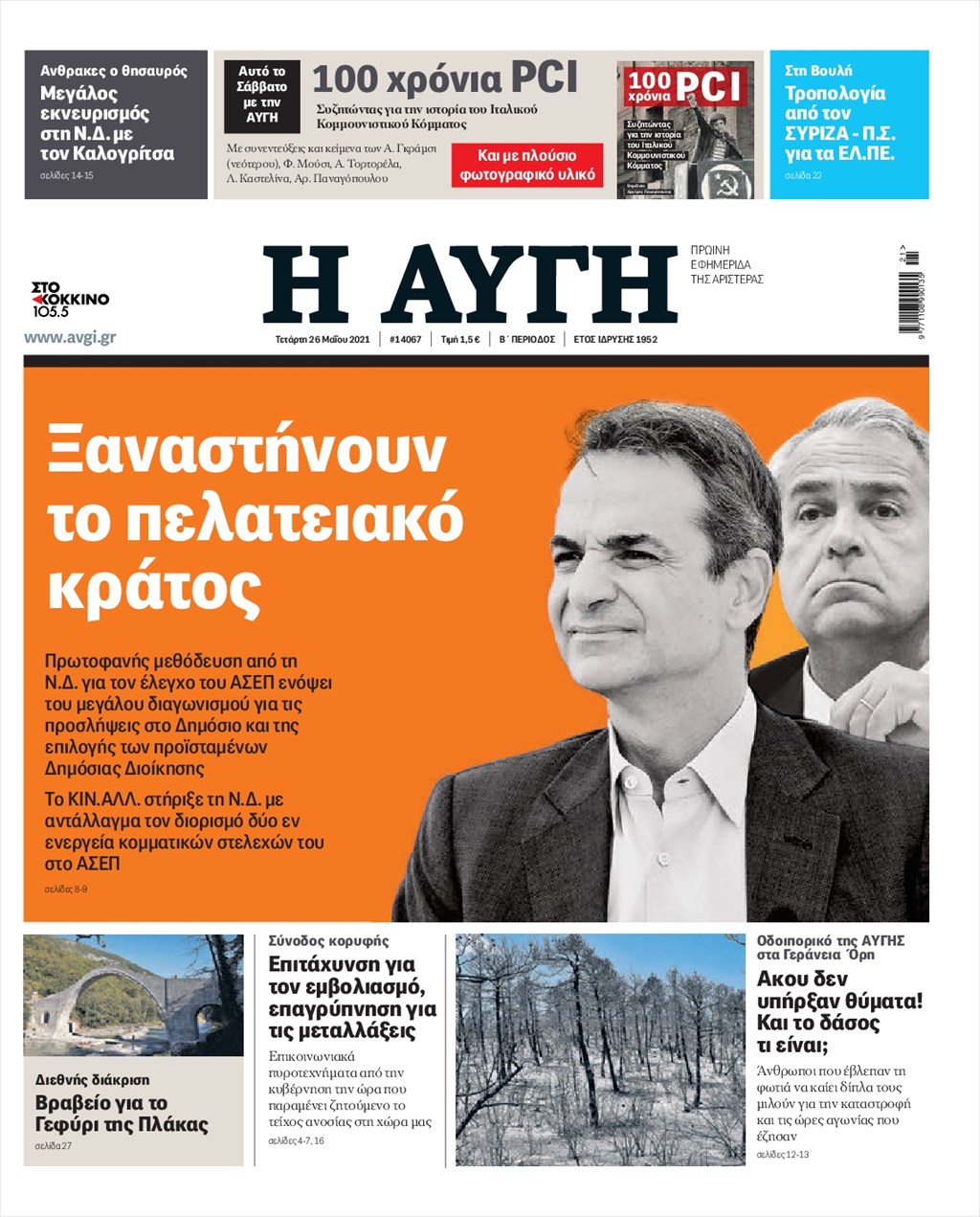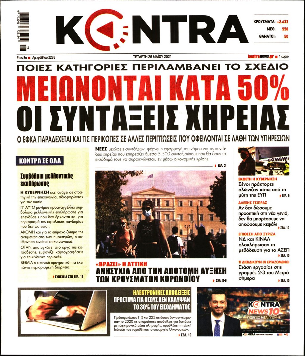 Τα πρωτοσέλιδα των εφημερίδων 26 Μαΐου