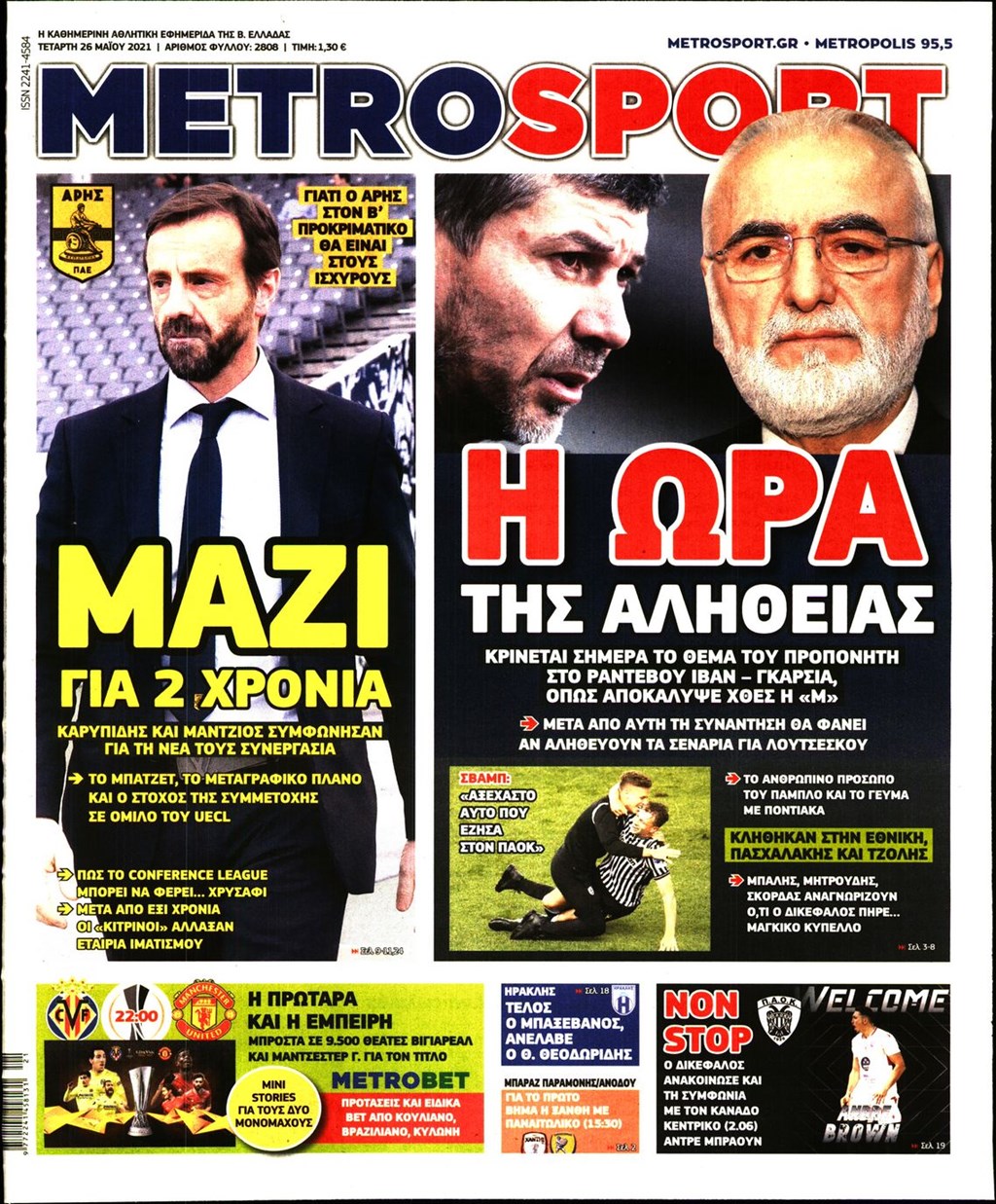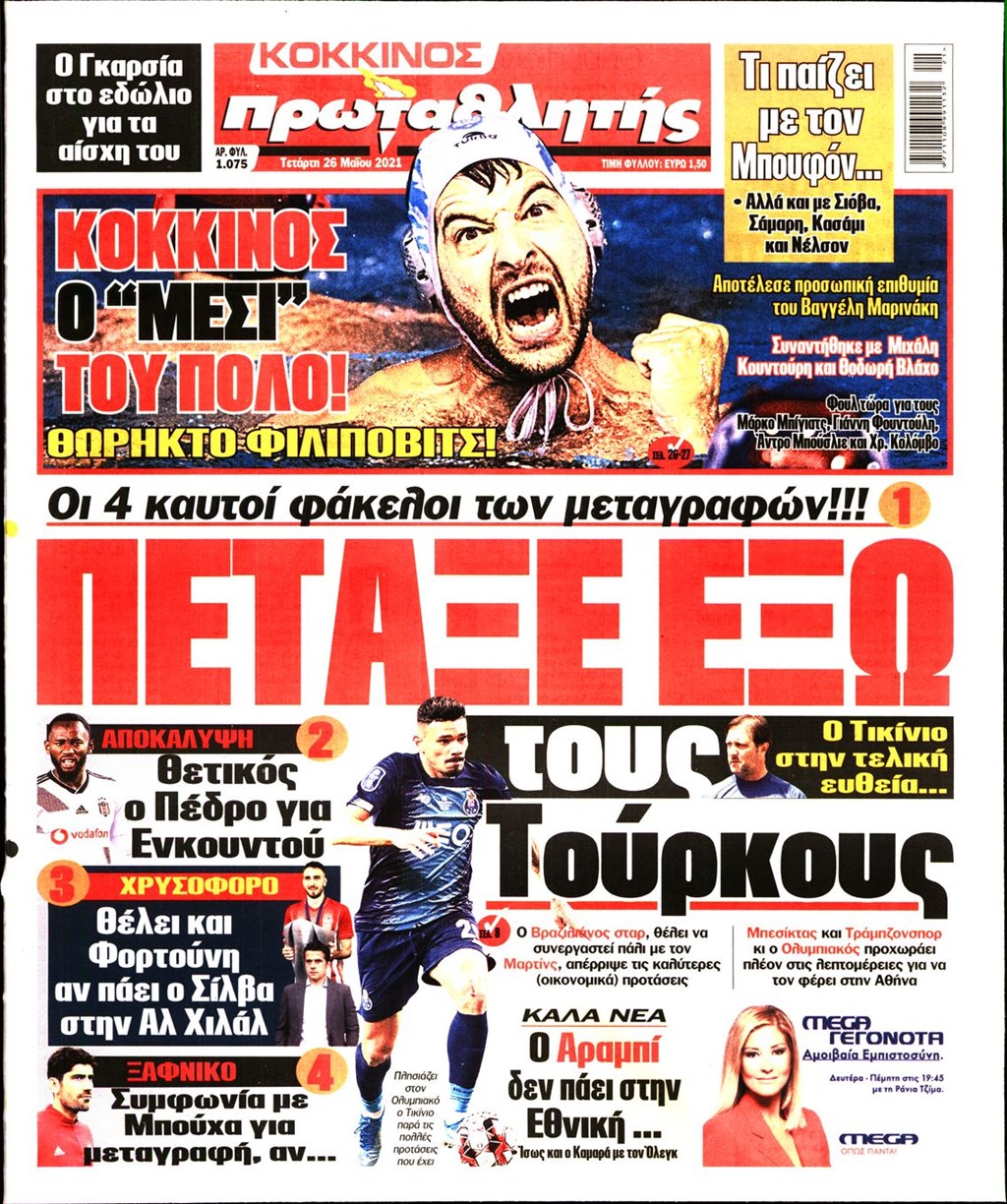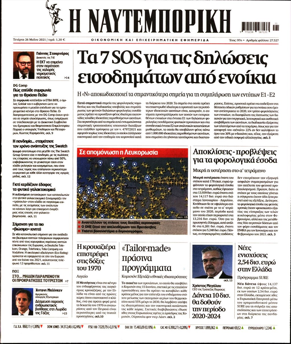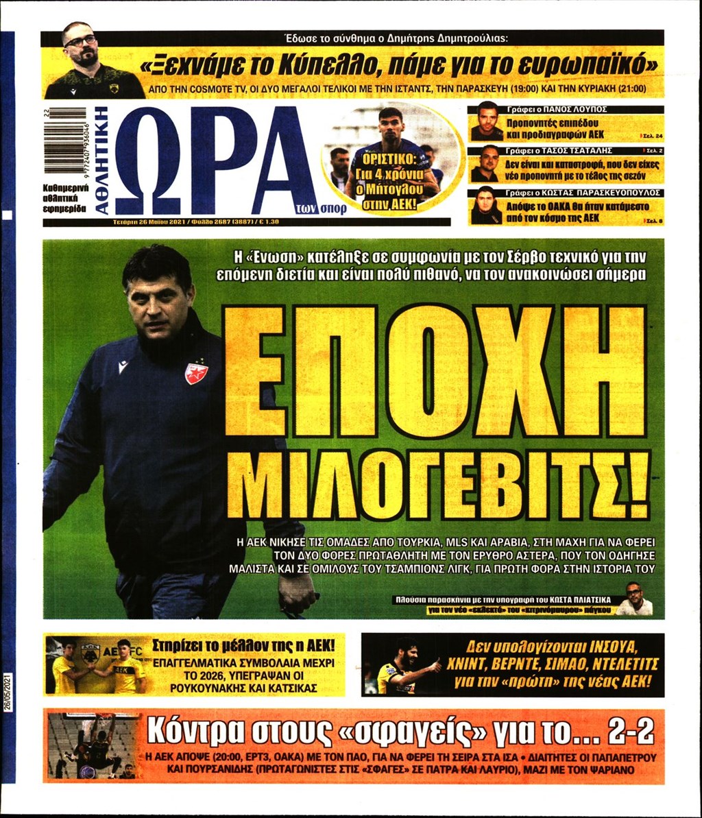 Τα πρωτοσέλιδα των εφημερίδων 26 Μαΐου