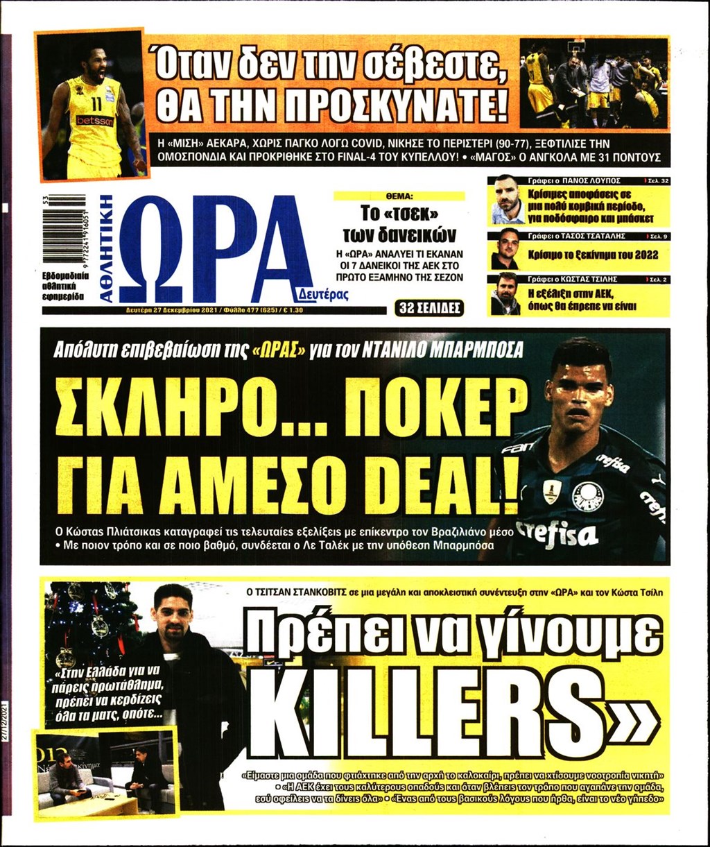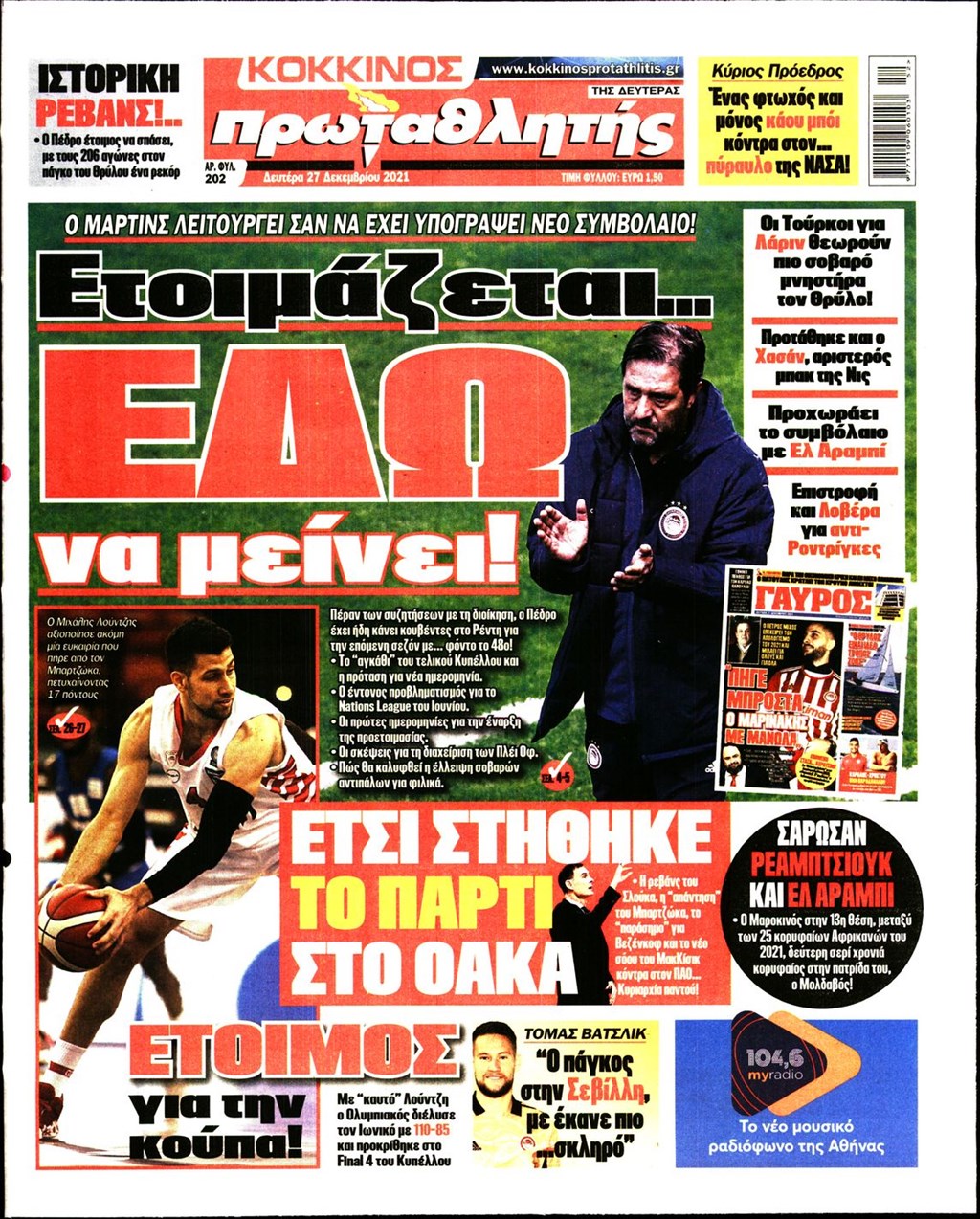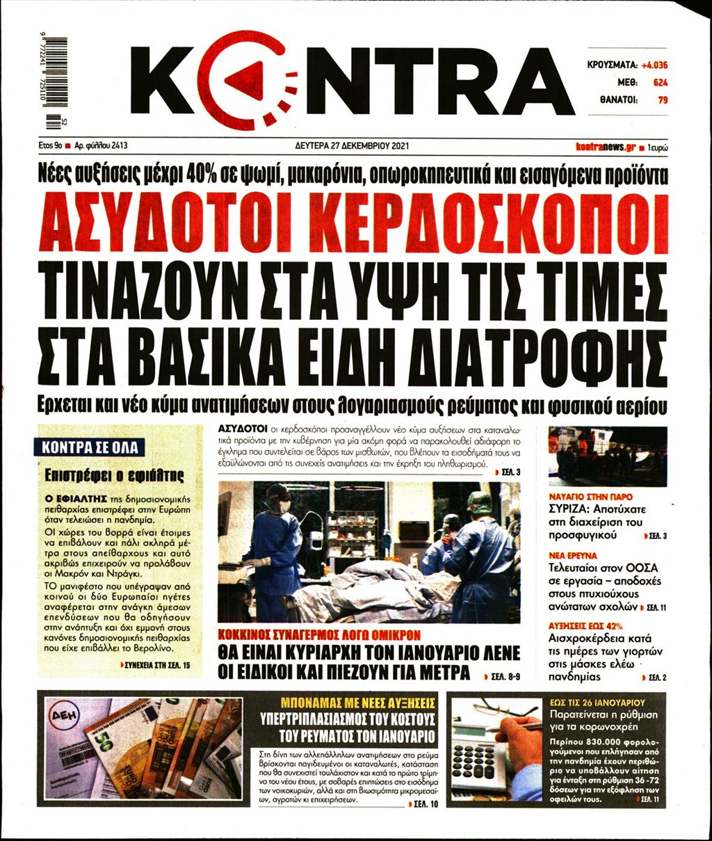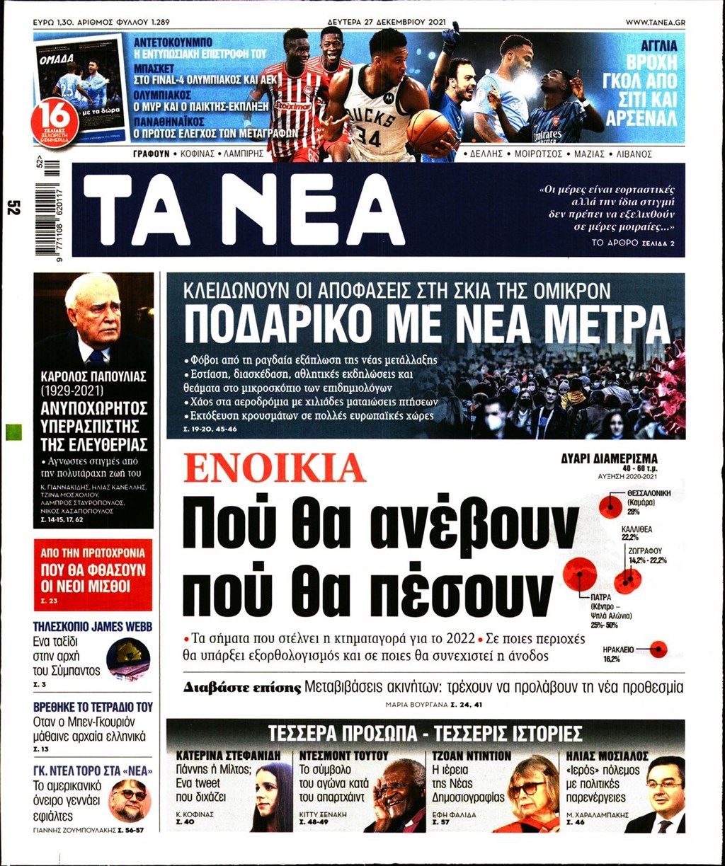 Τα πρωτοσέλιδα των εφημερίδων 27 Δεκεμβρίου