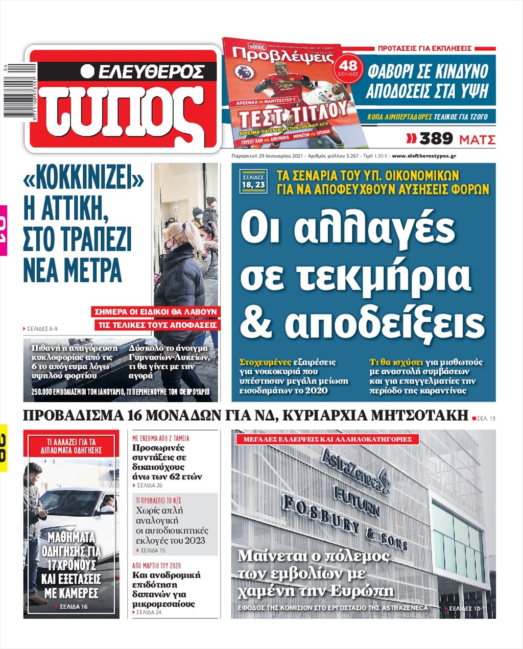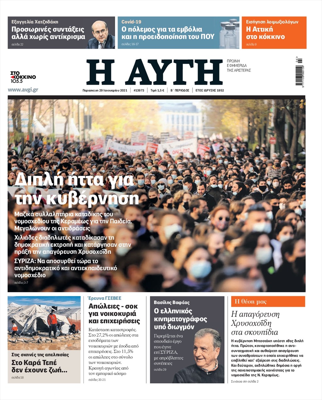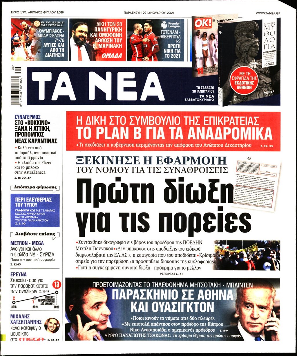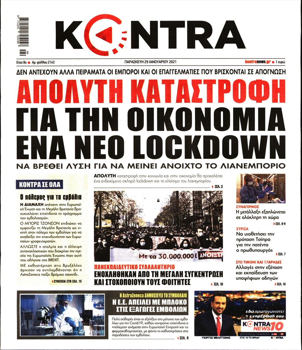 Τα πρωτοσέλιδα των εφημερίδων 29 Ιανουαρίου