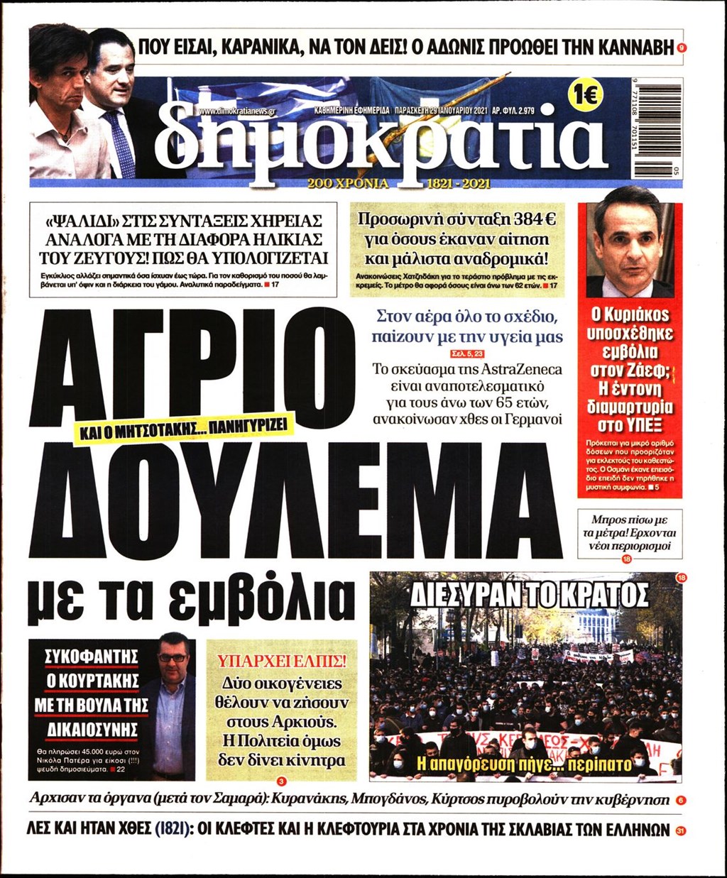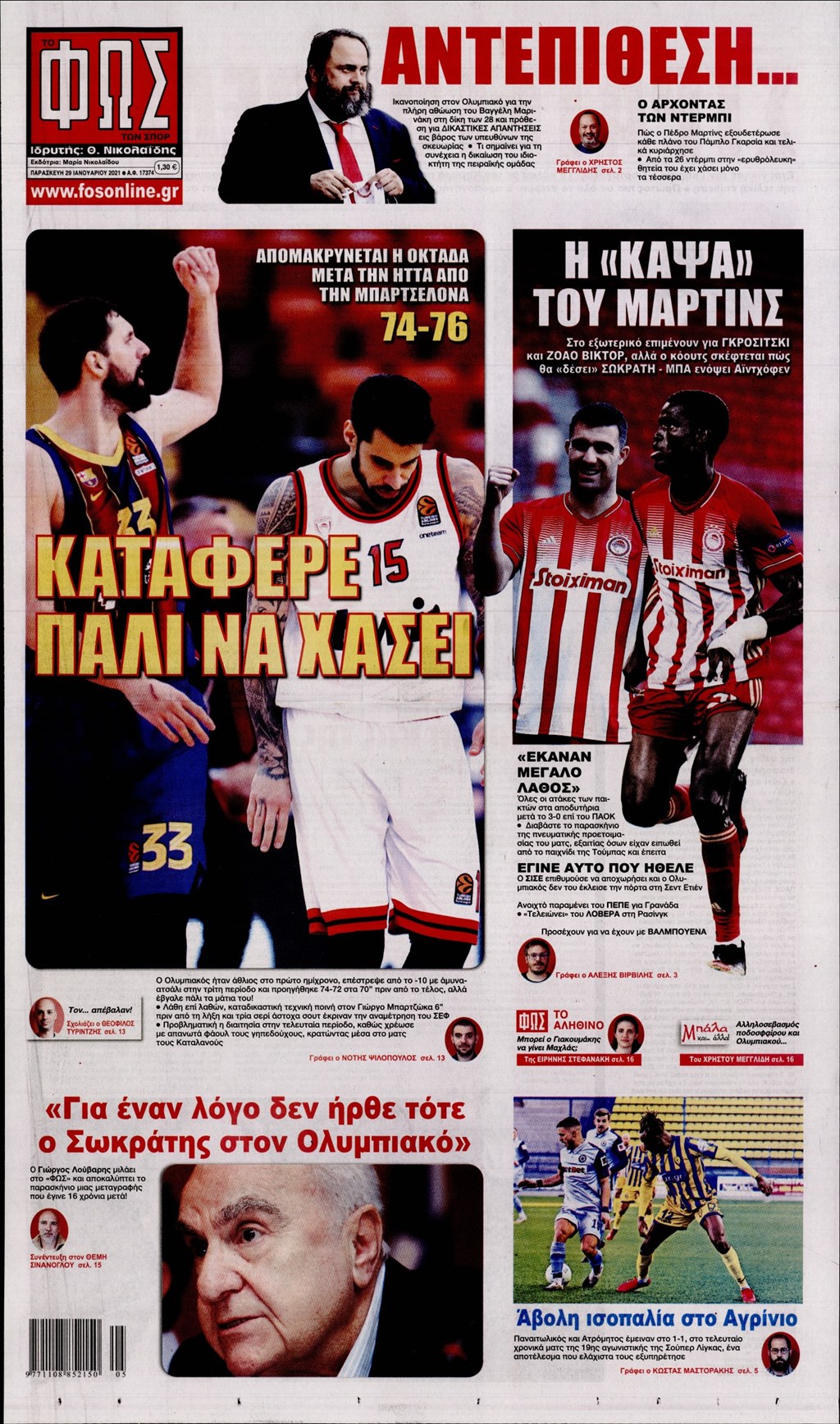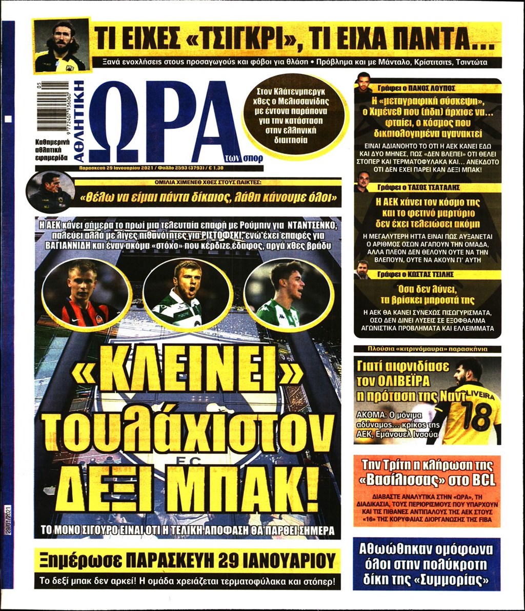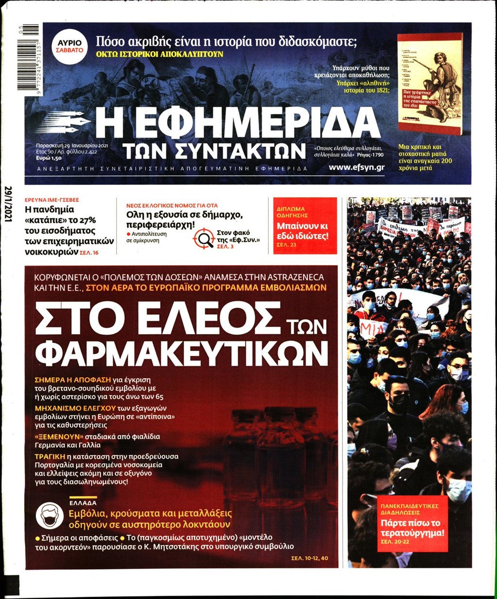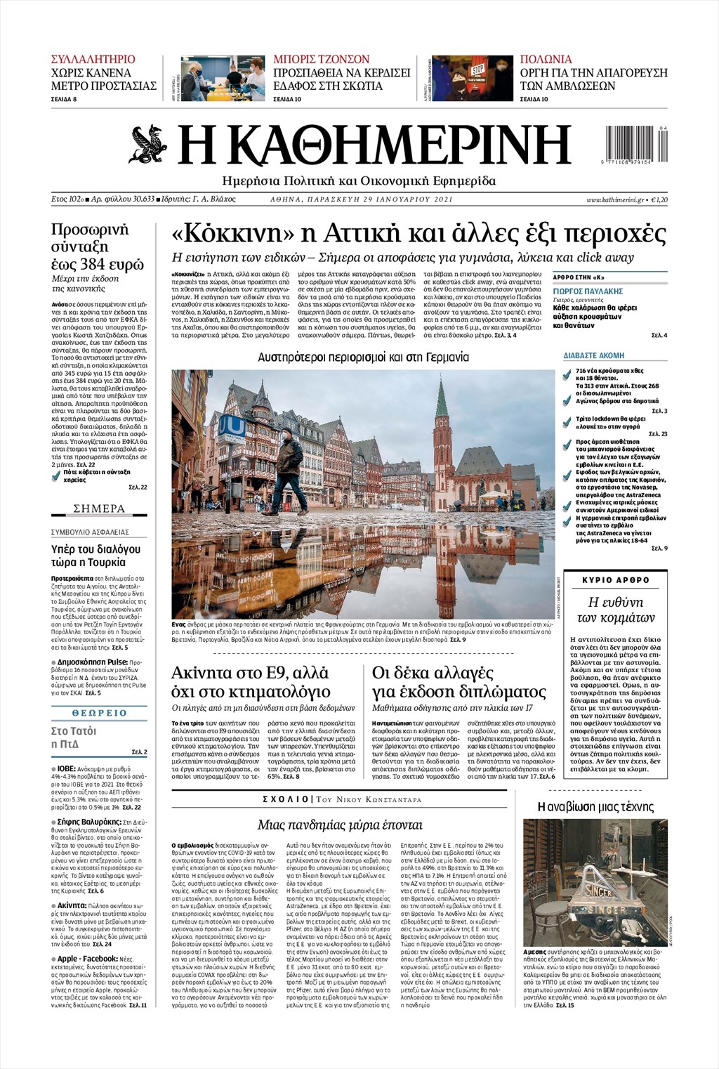 Τα πρωτοσέλιδα των εφημερίδων 29 Ιανουαρίου