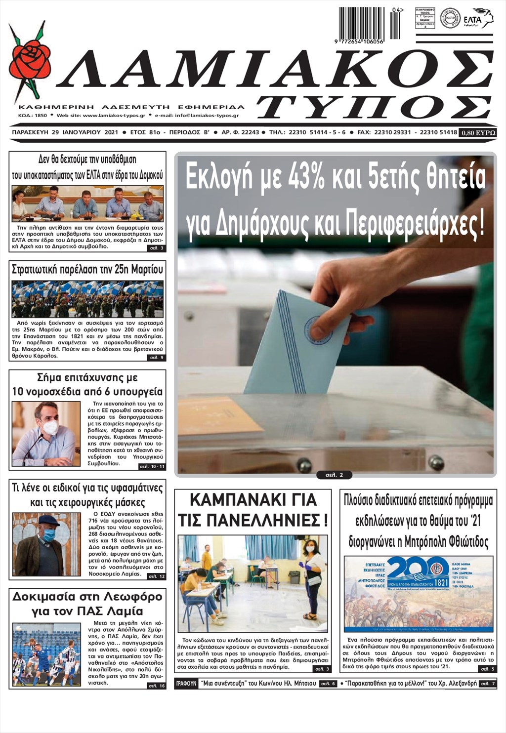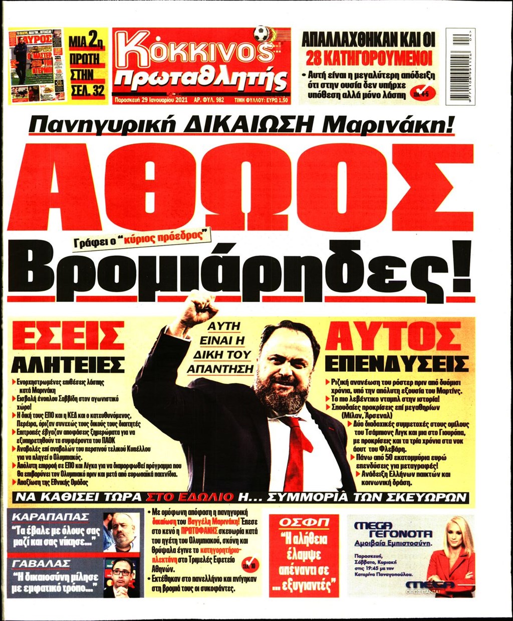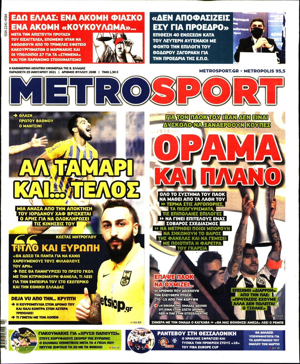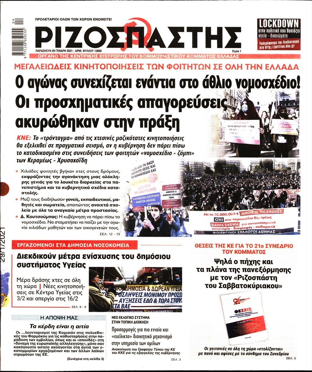 Τα πρωτοσέλιδα των εφημερίδων 29 Ιανουαρίου