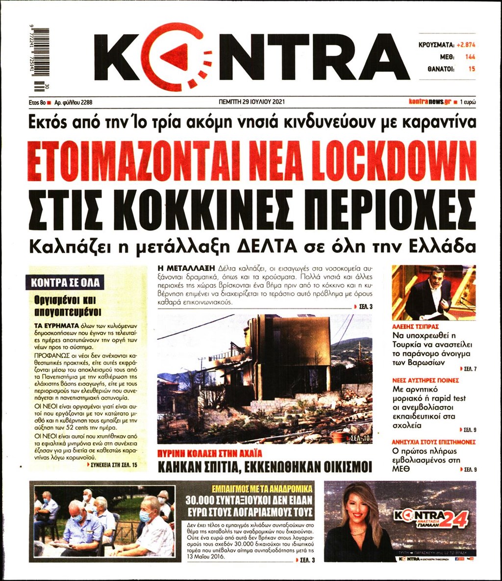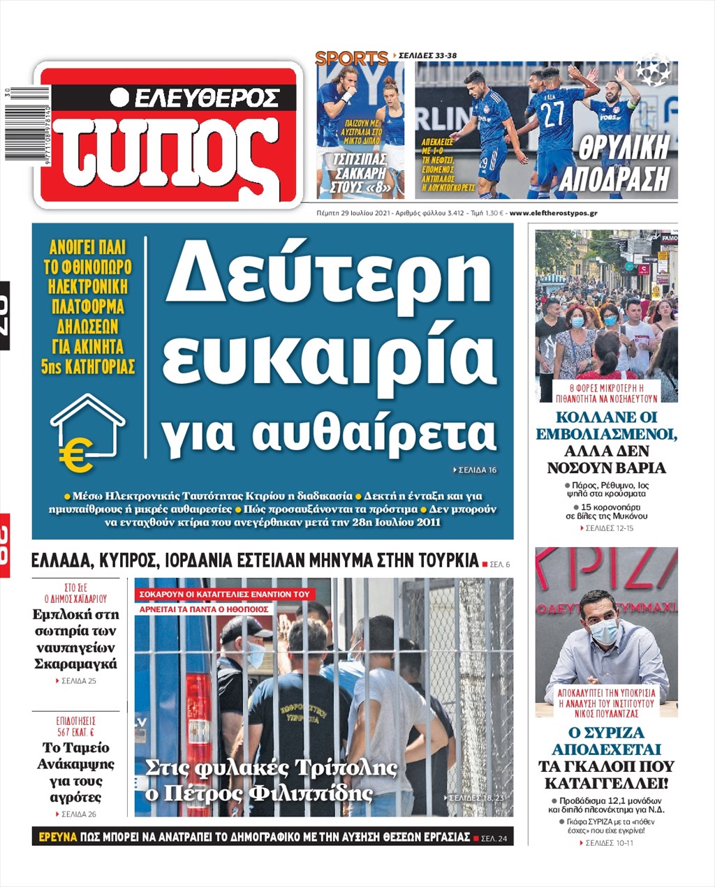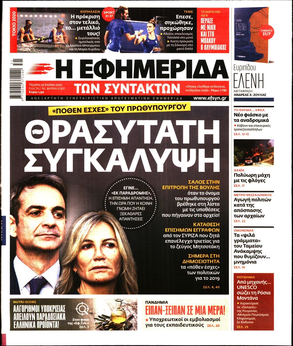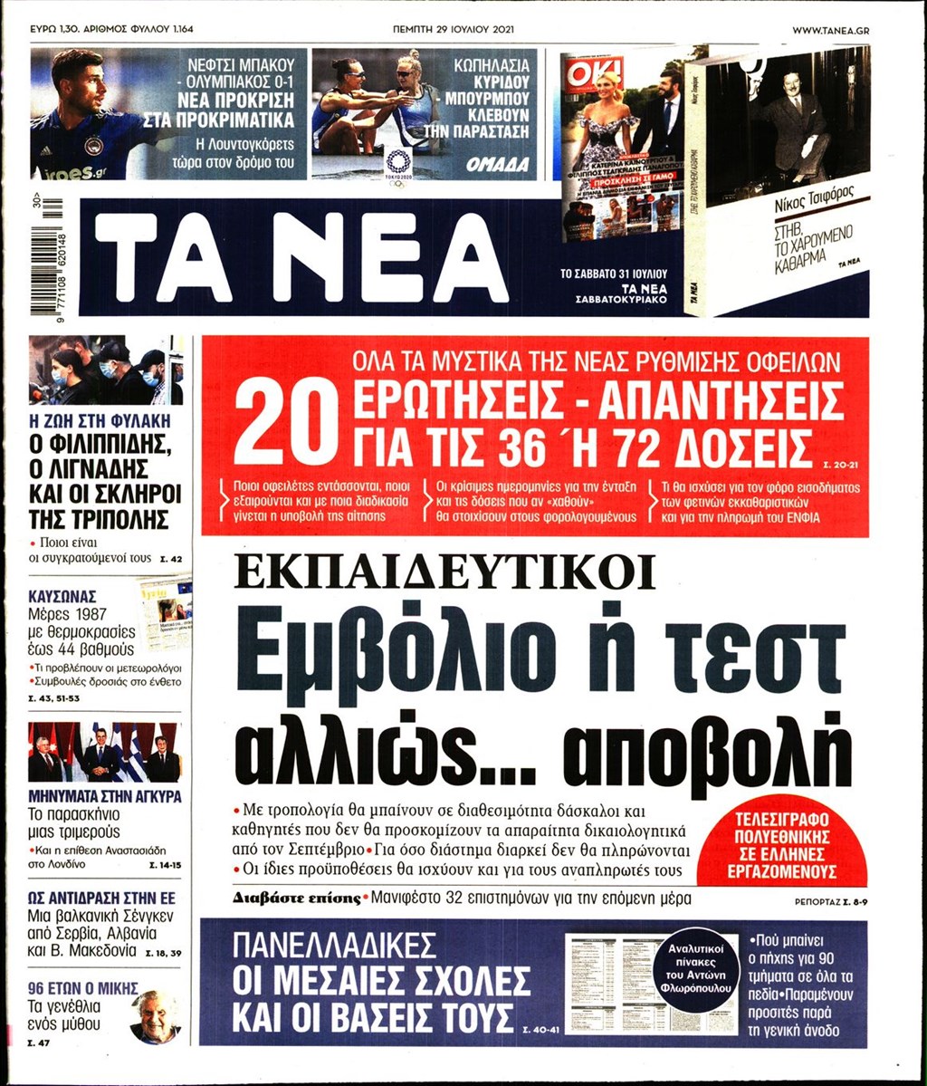 Τα πρωτοσέλιδα των εφημερίδων 29 Ιουλίου
