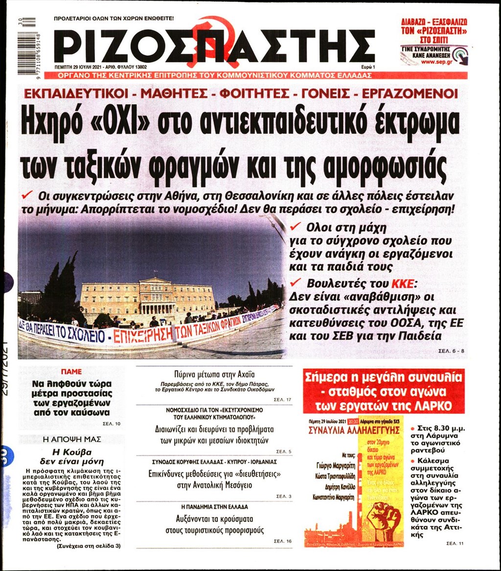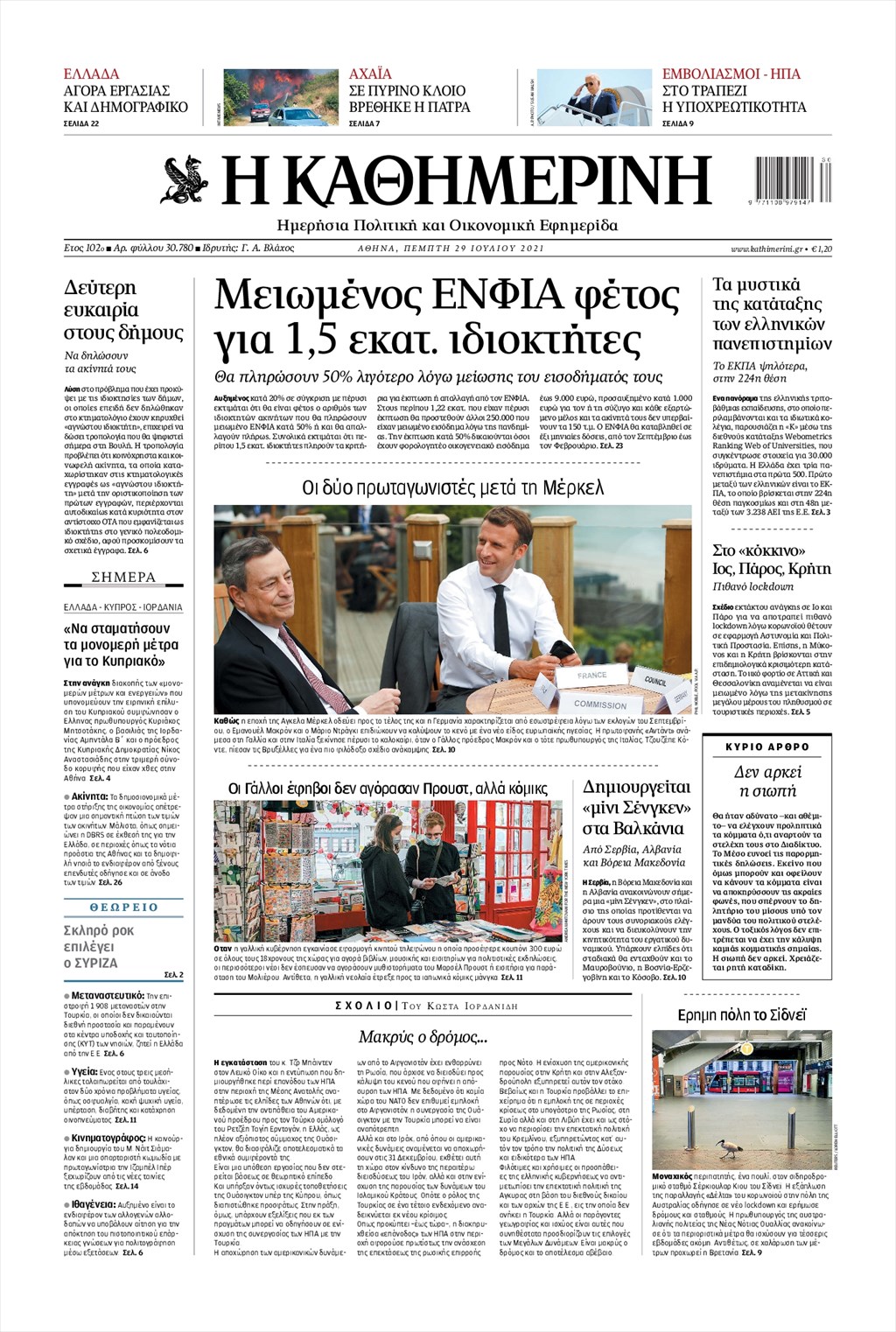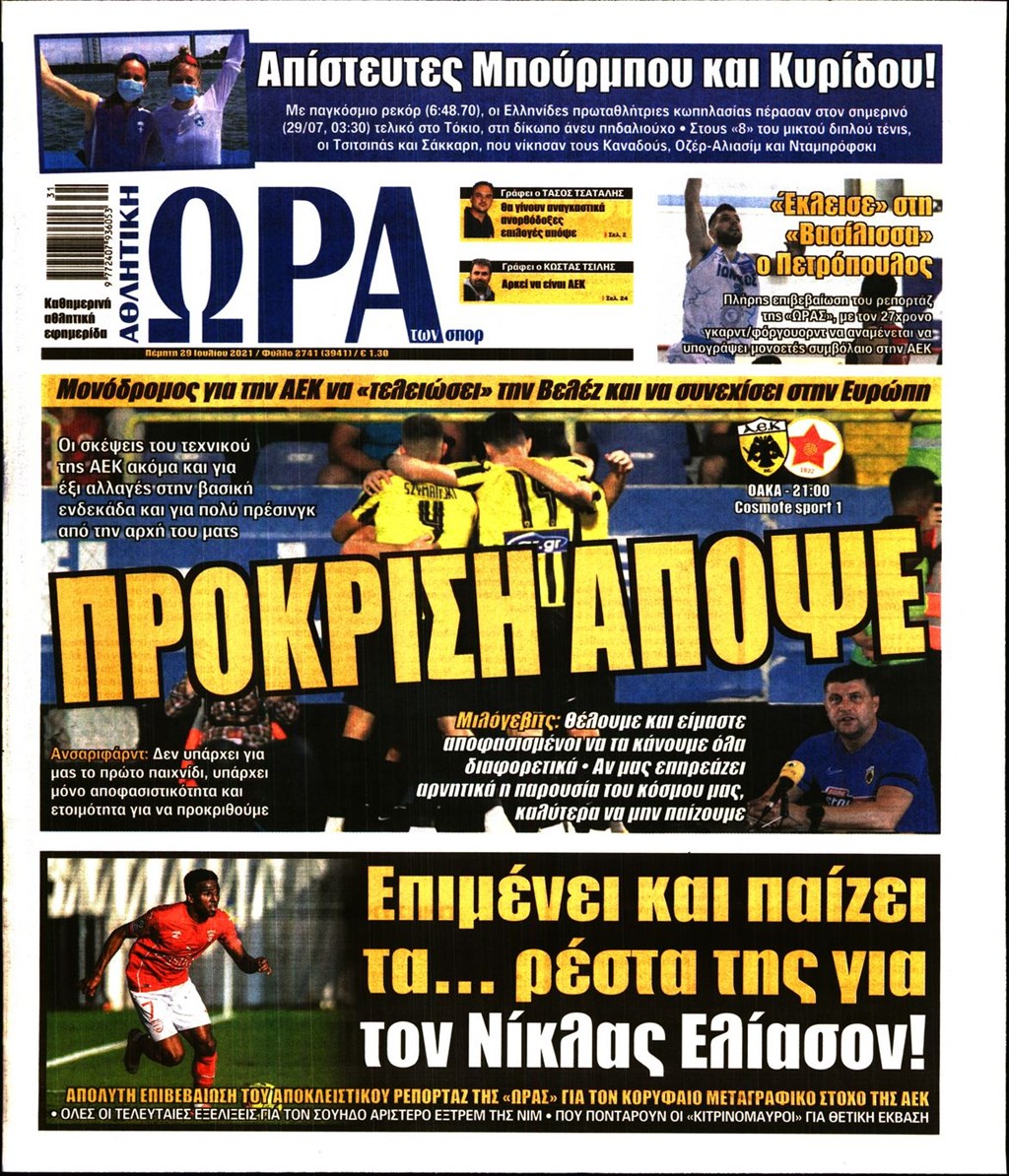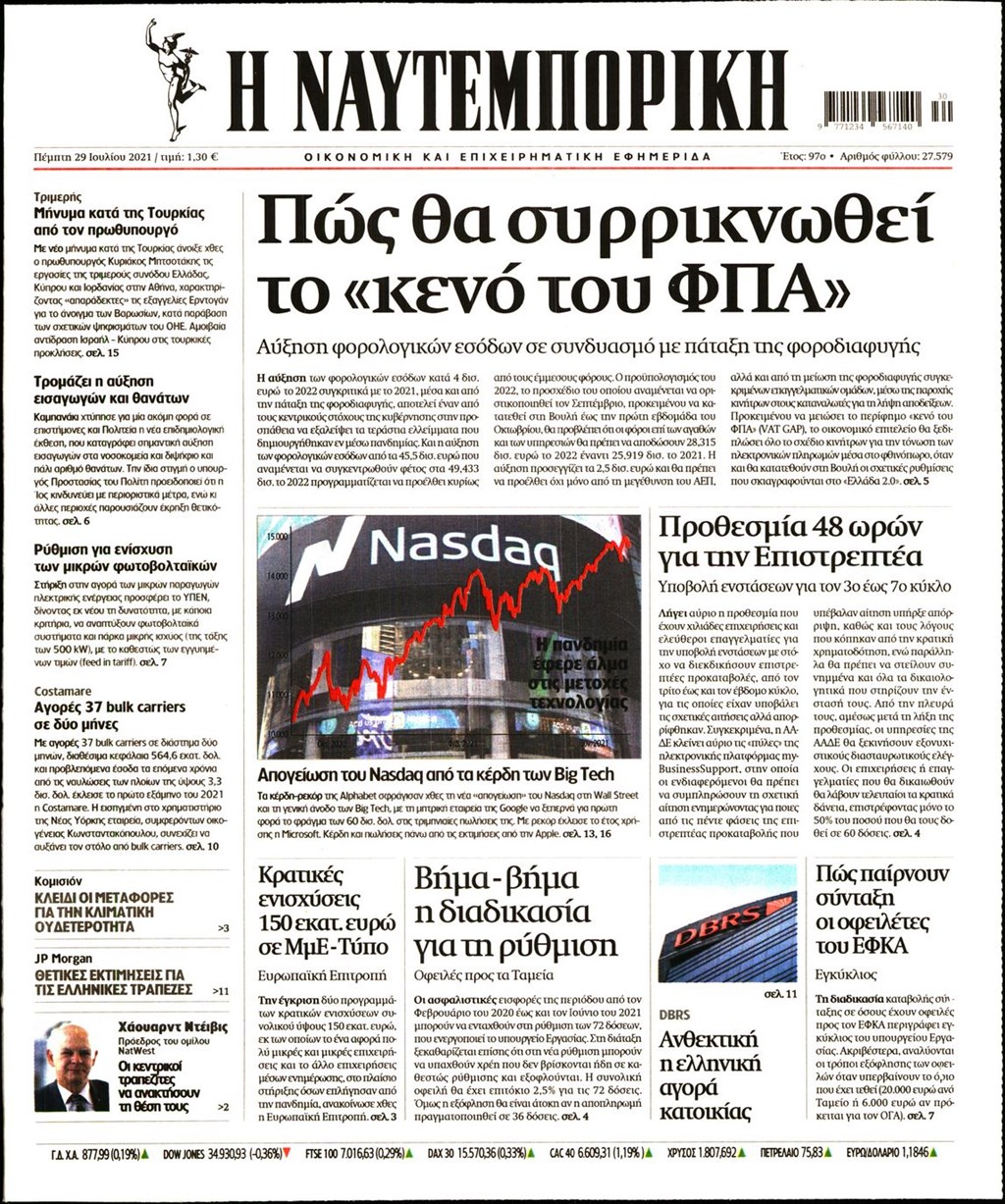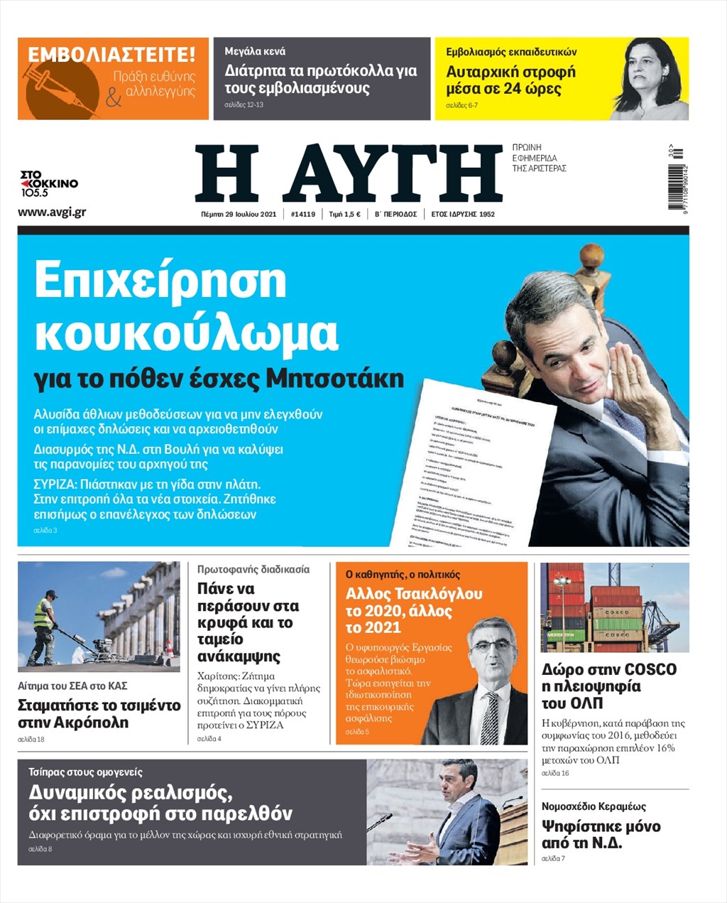 Τα πρωτοσέλιδα των εφημερίδων 29 Ιουλίου
