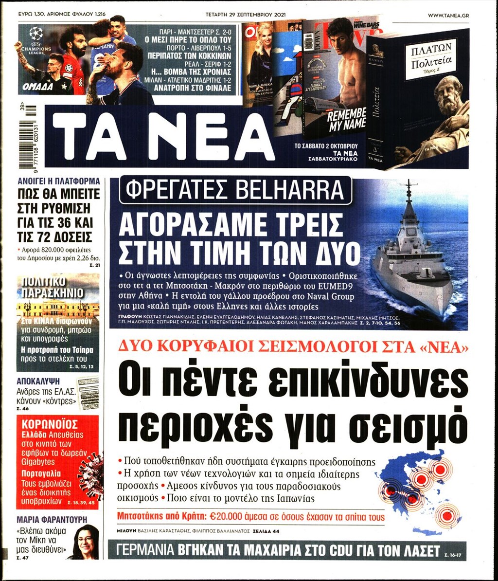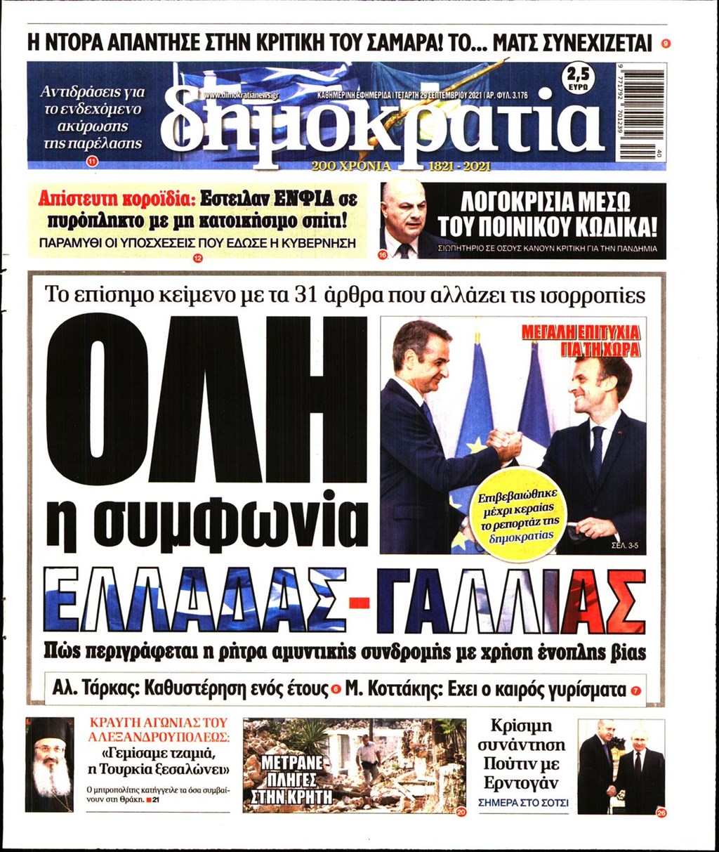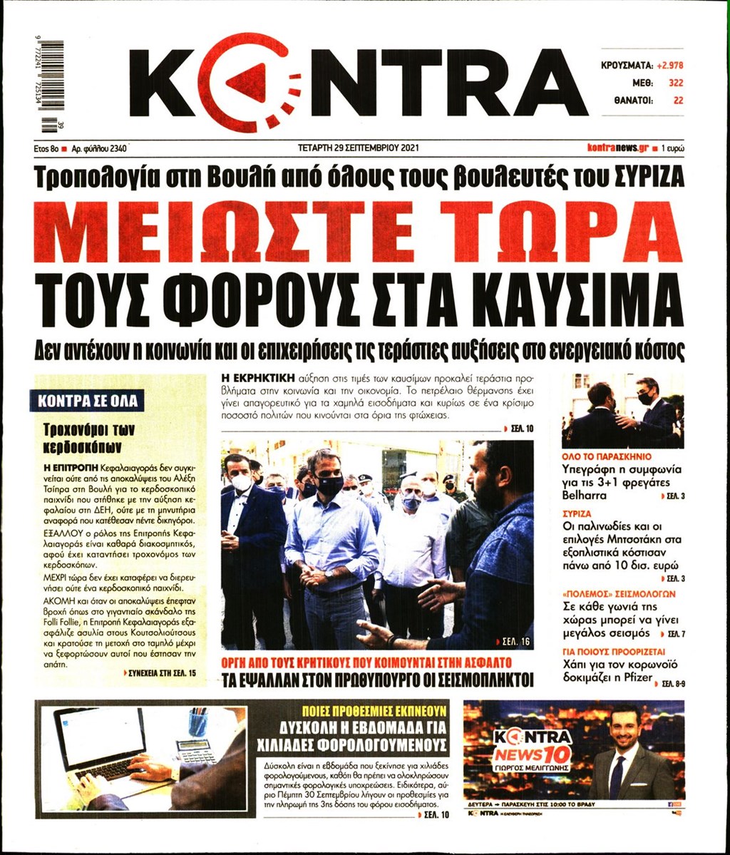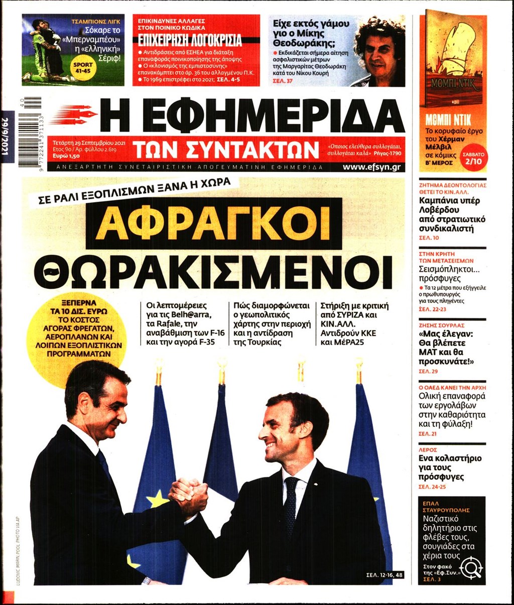 Τα πρωτοσέλιδα των εφημερίδων 29 Σεπτεμβρίου