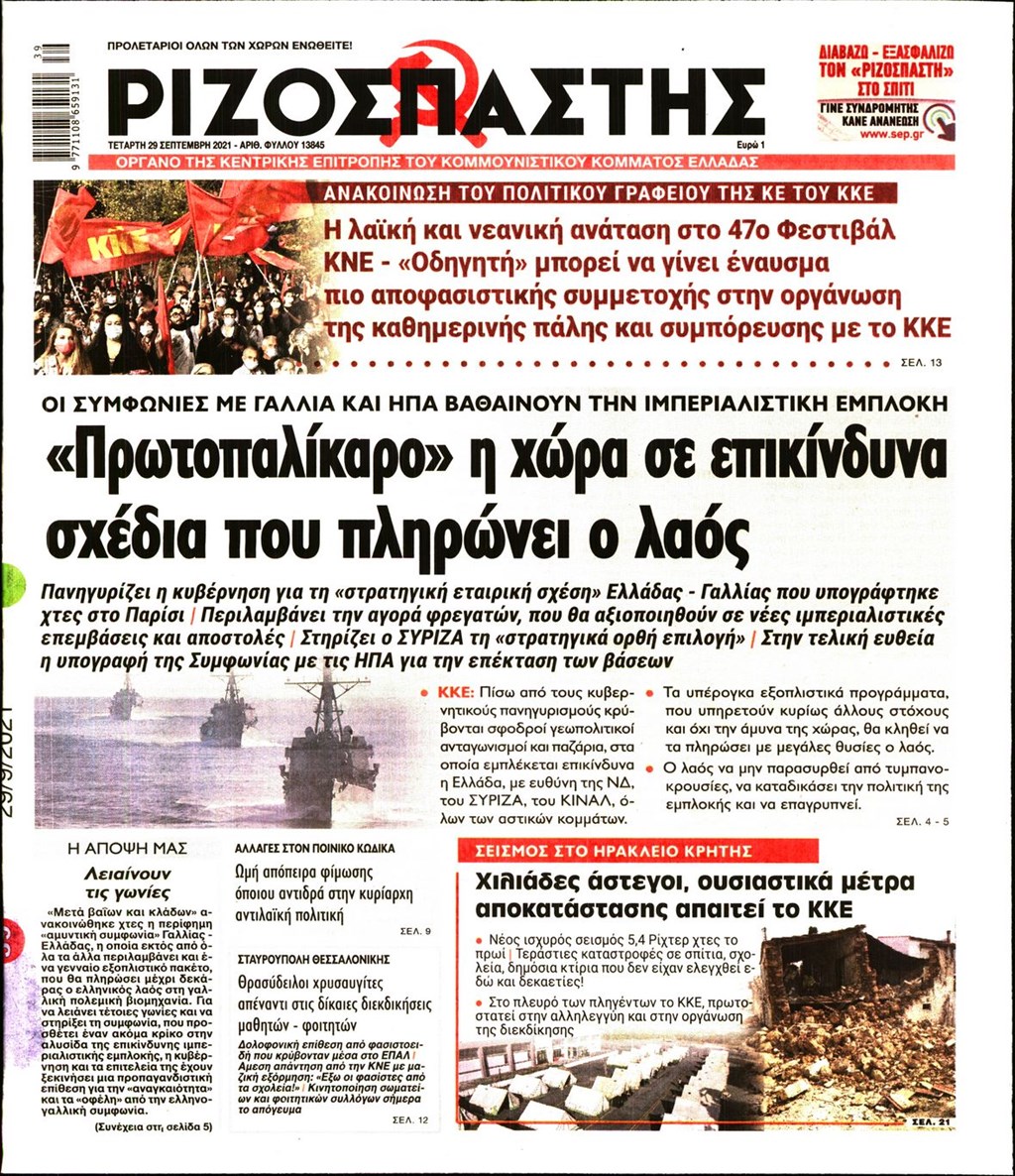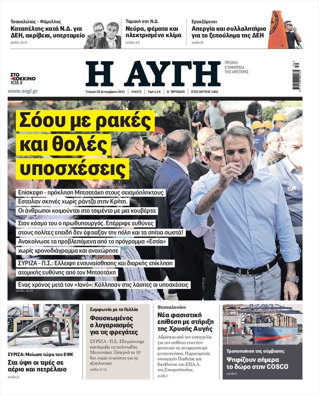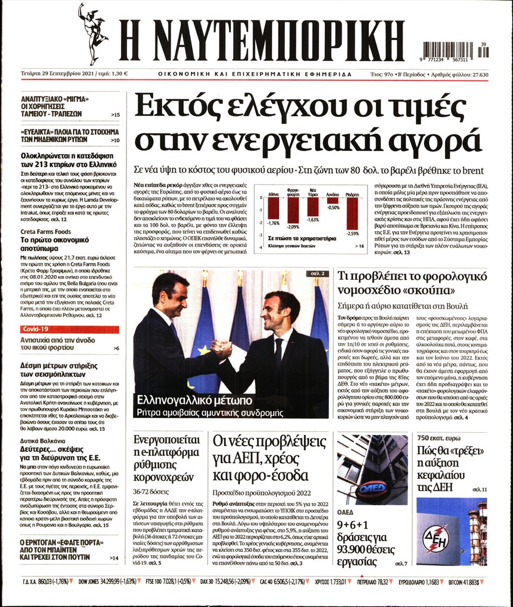 Τα πρωτοσέλιδα των εφημερίδων 29 Σεπτεμβρίου