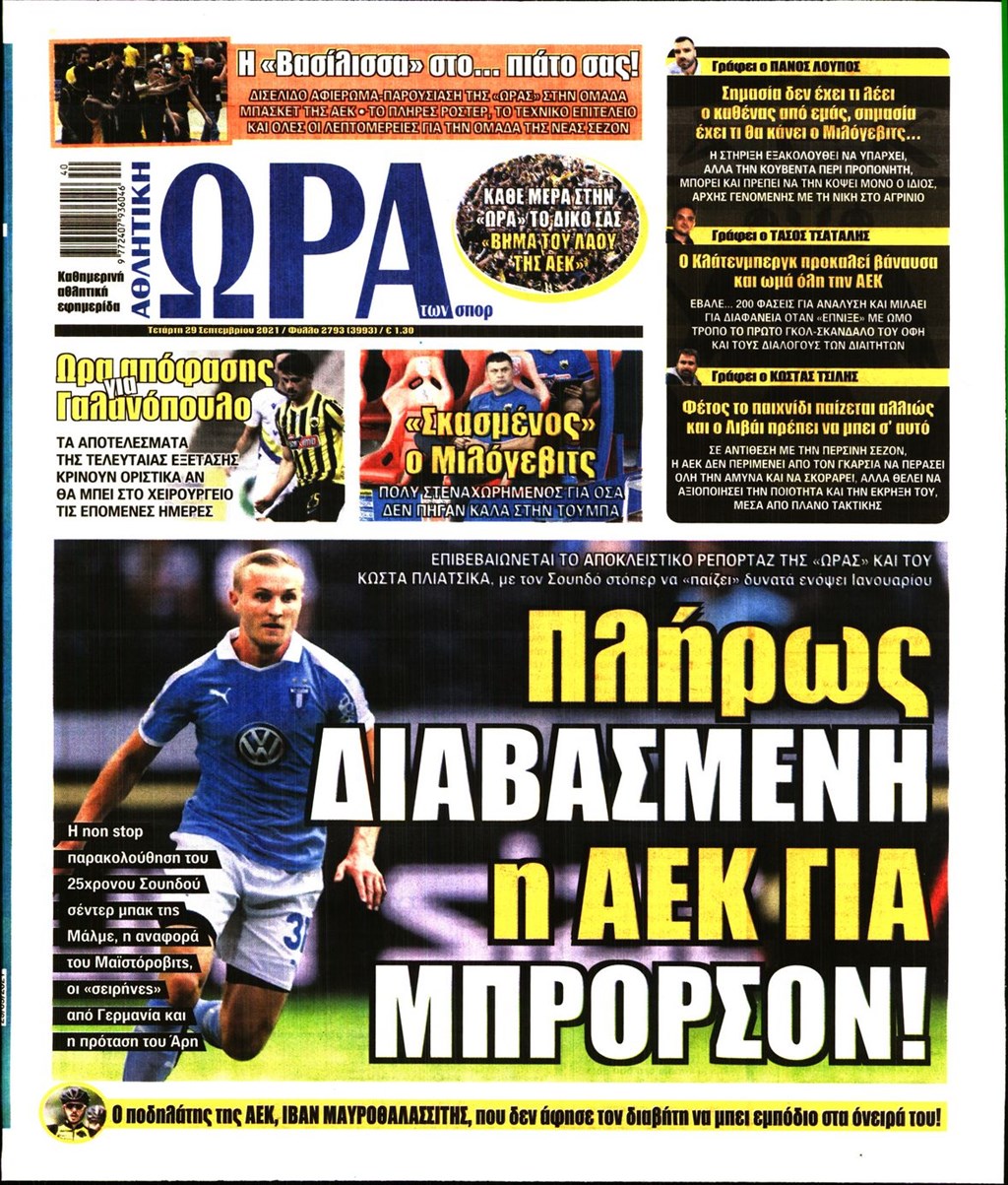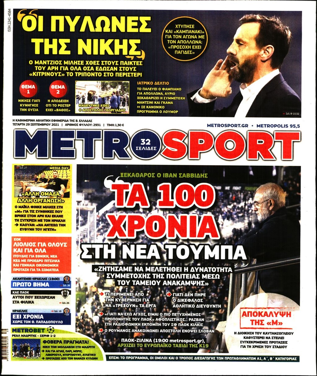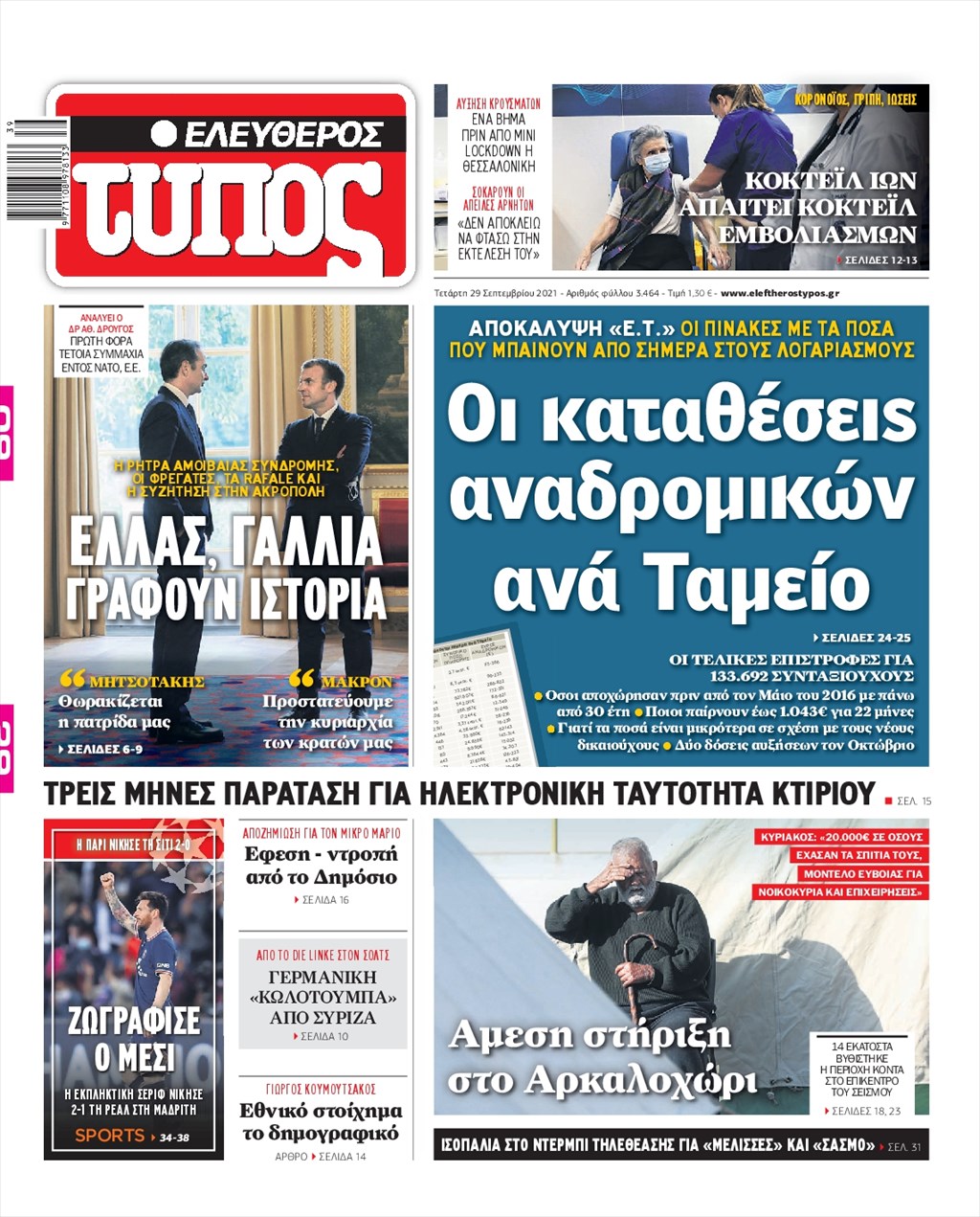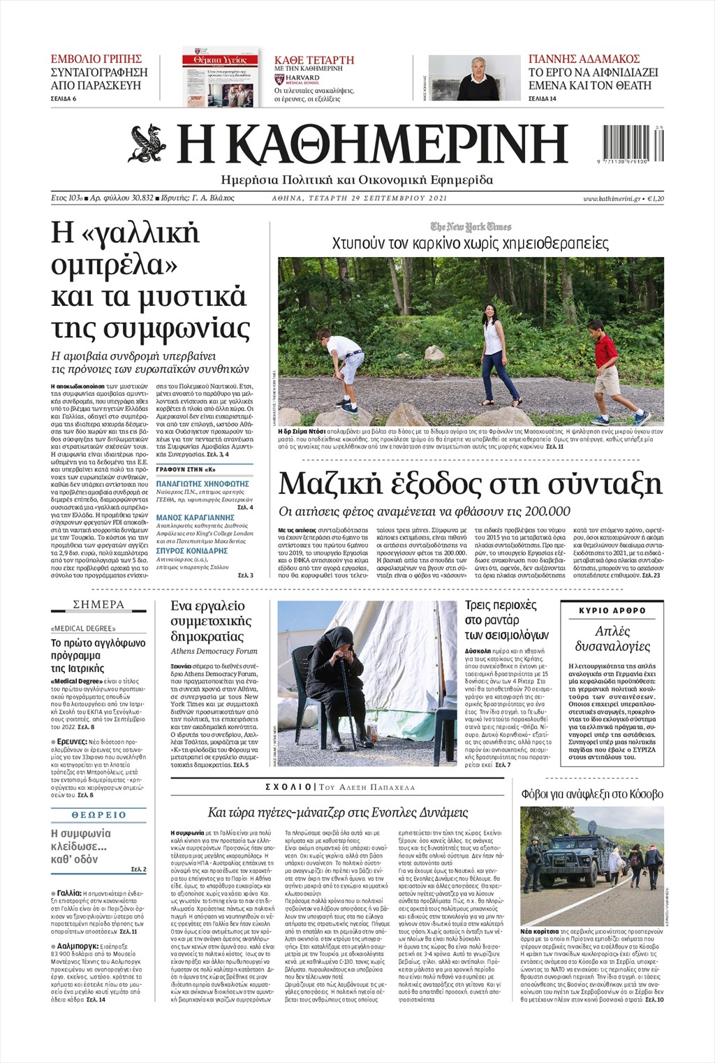 Τα πρωτοσέλιδα των εφημερίδων 29 Σεπτεμβρίου