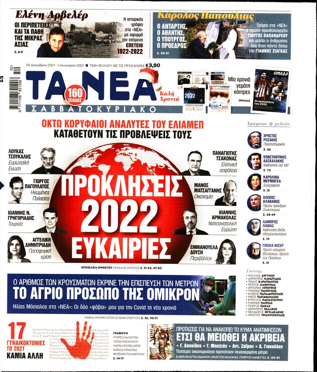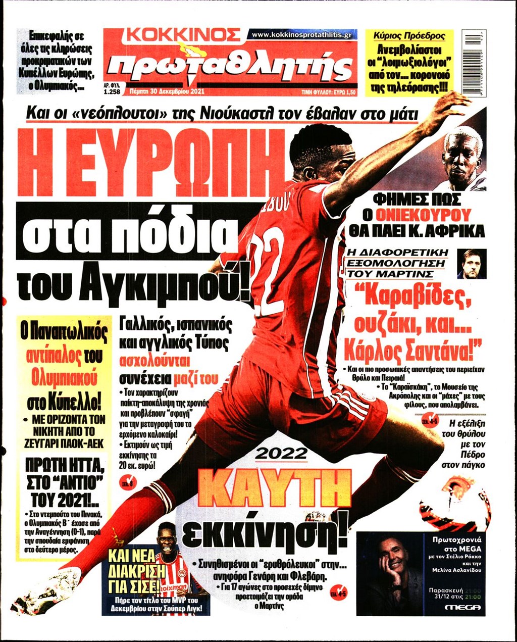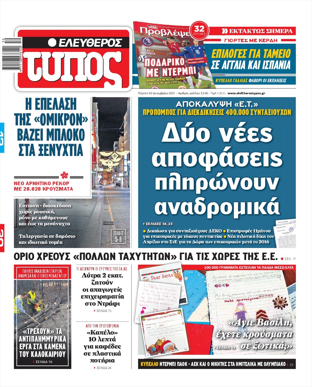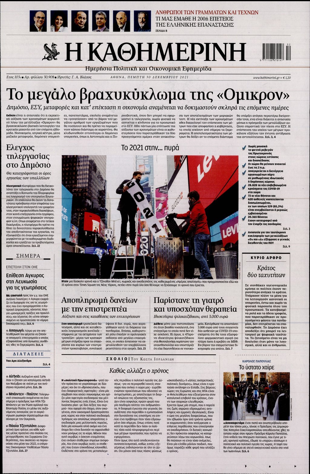 Τα πρωτοσέλιδα των εφημερίδων 30 Δεκεμβρίου