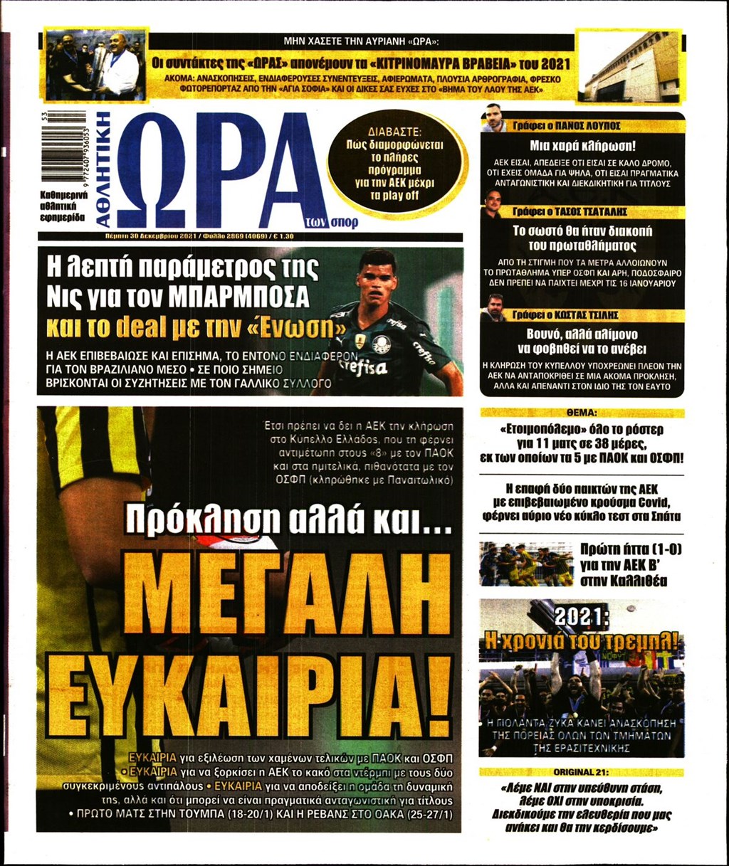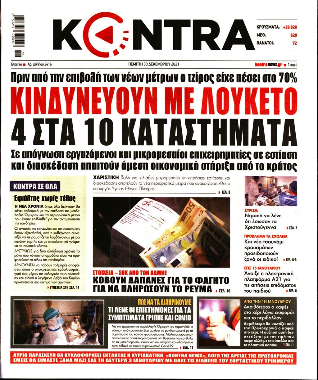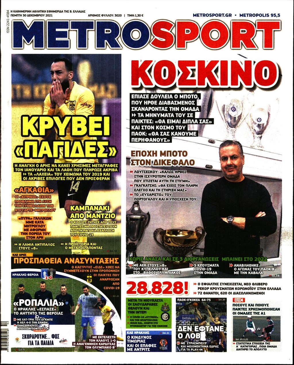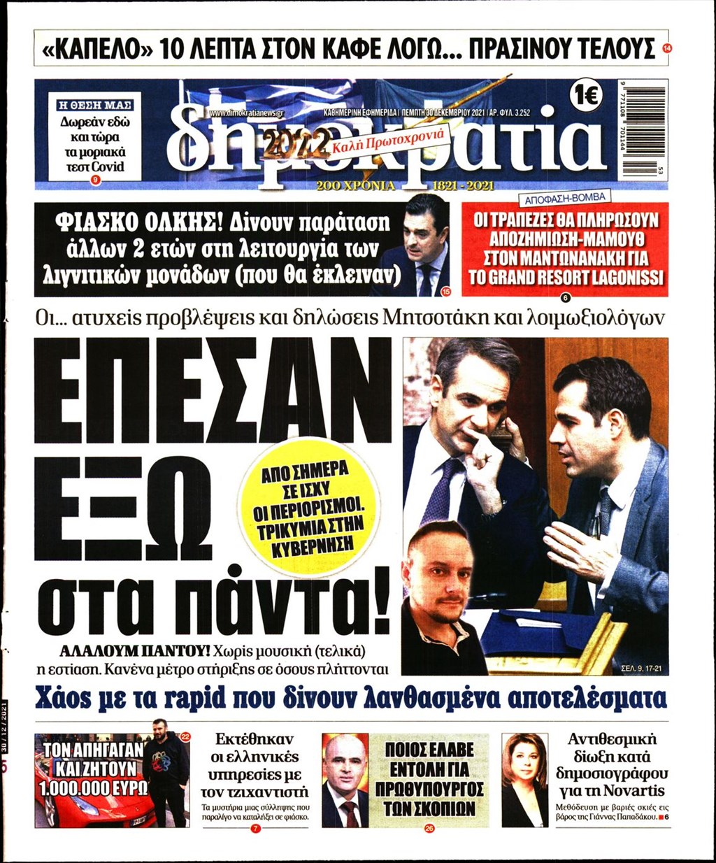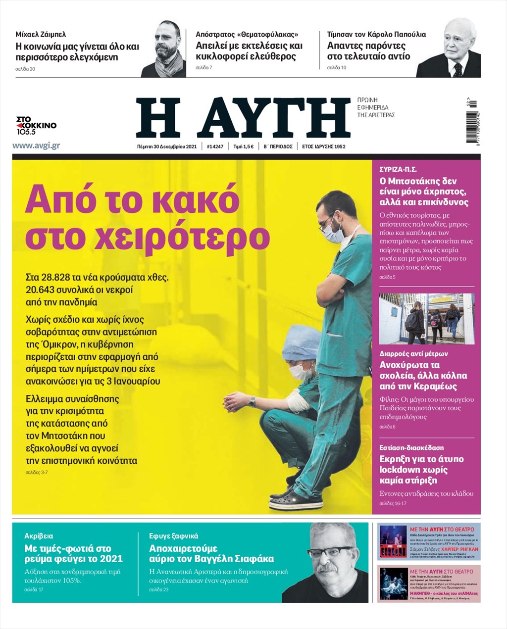 Τα πρωτοσέλιδα των εφημερίδων 30 Δεκεμβρίου