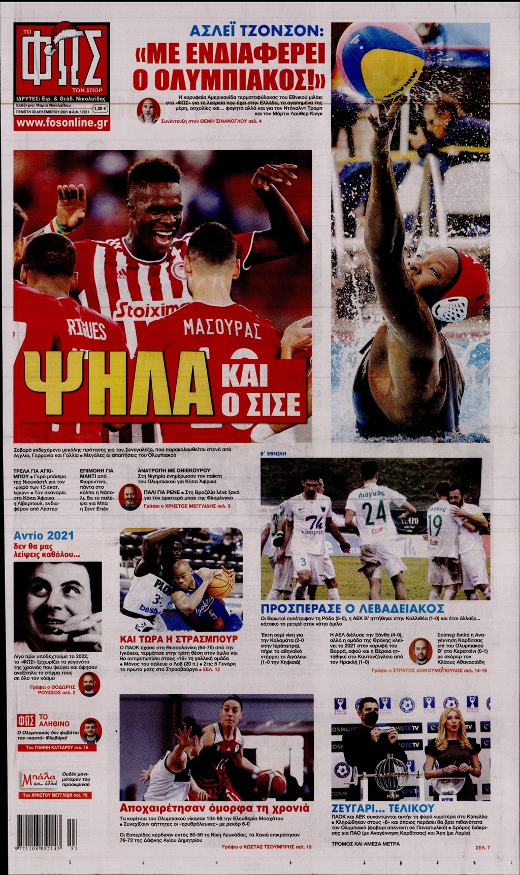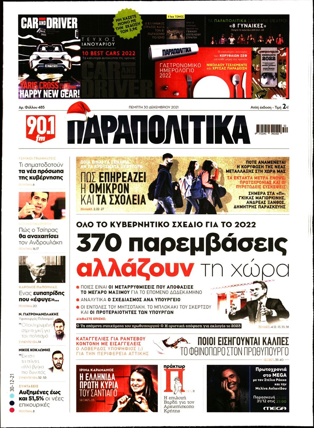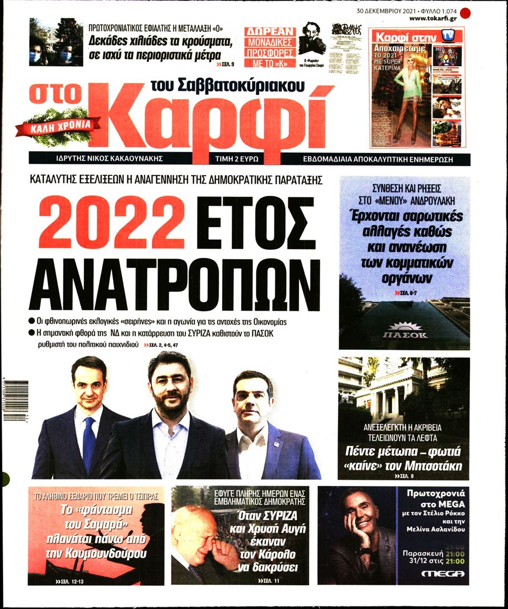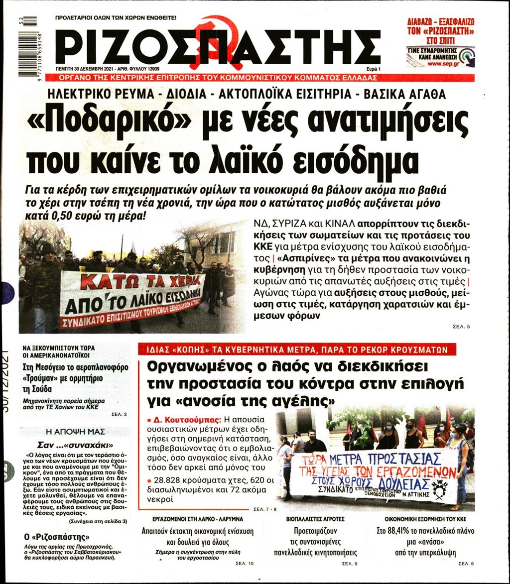 Τα πρωτοσέλιδα των εφημερίδων 30 Δεκεμβρίου