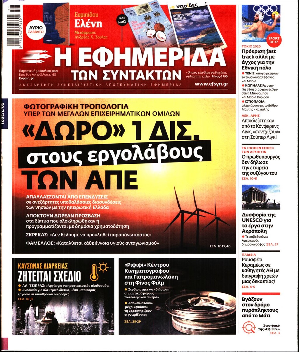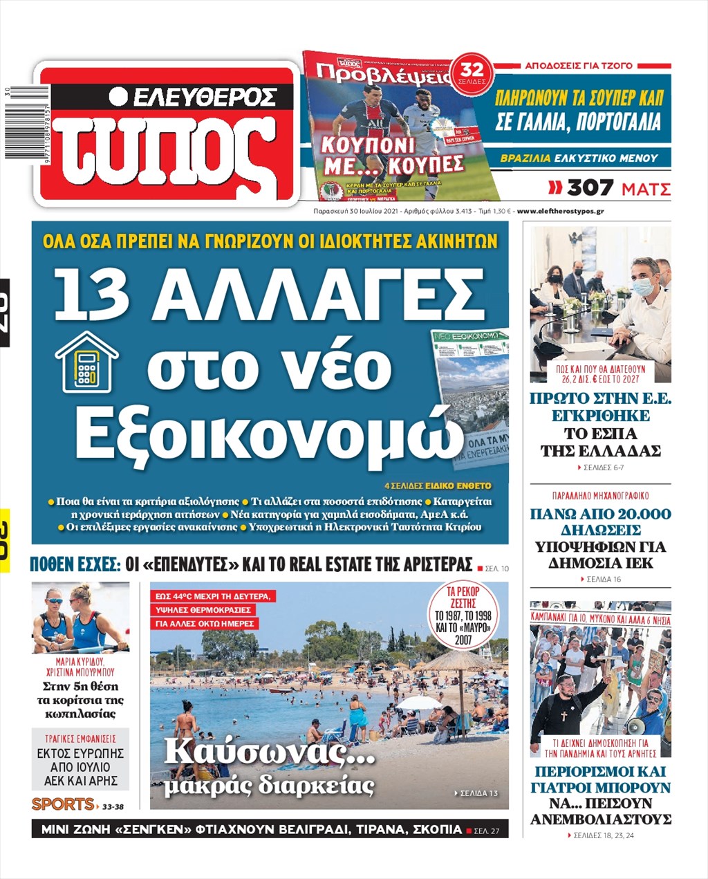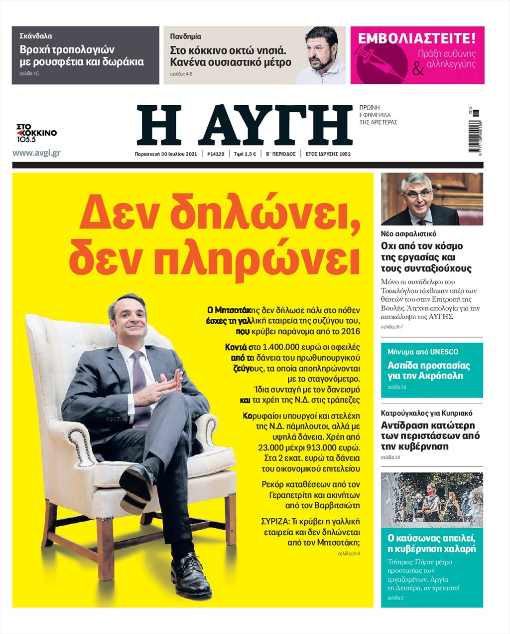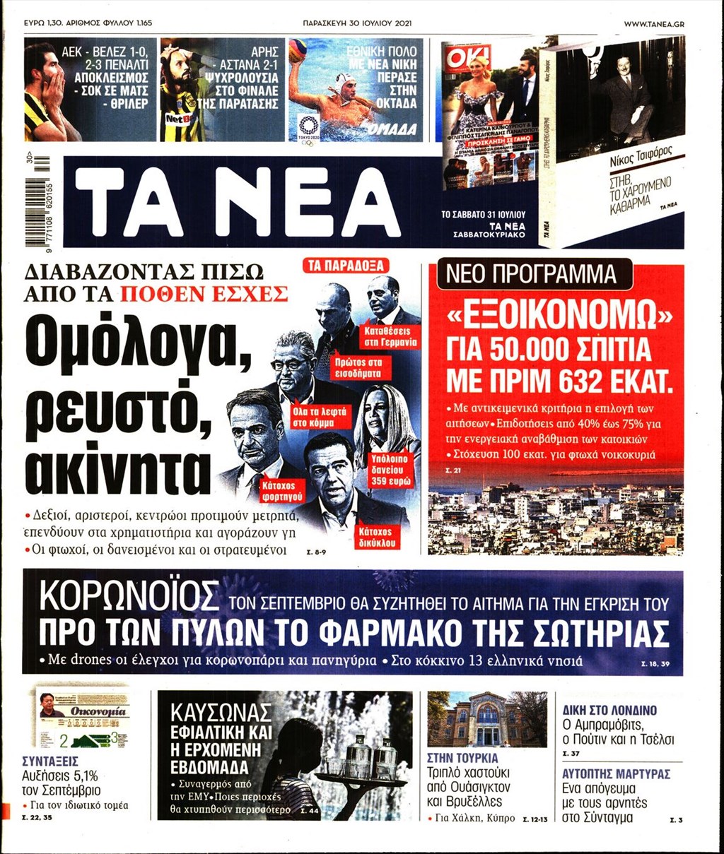 Τα πρωτοσέλιδα των εφημερίδων 30 Ιουλίου