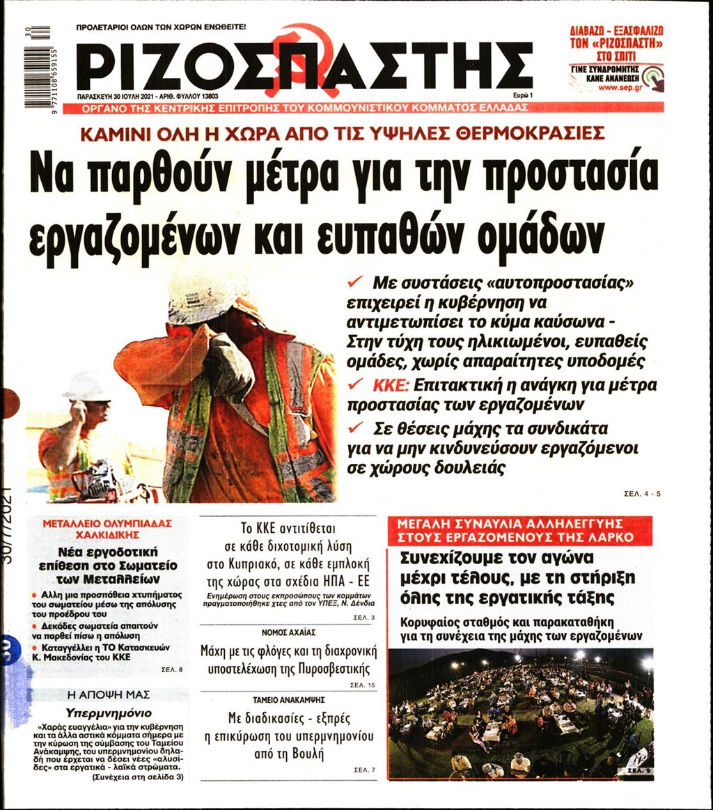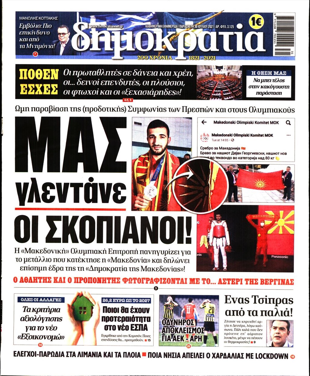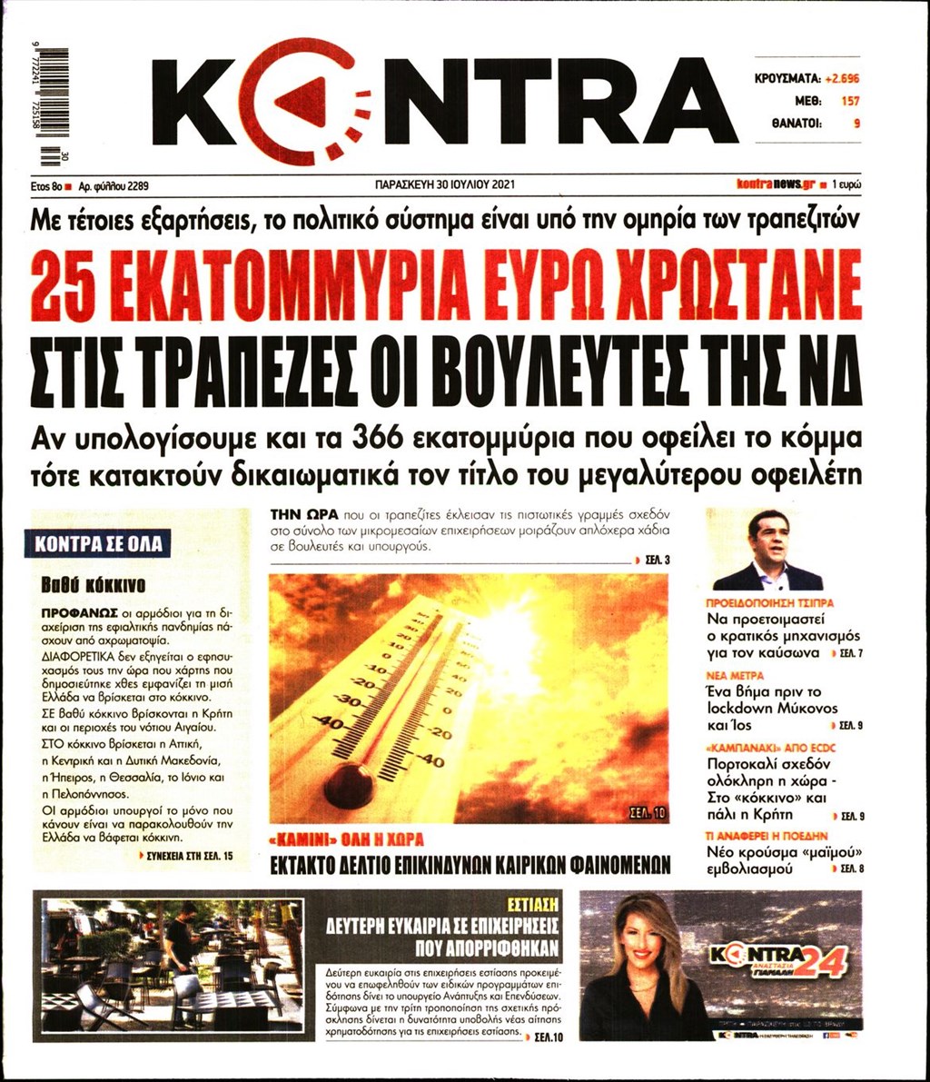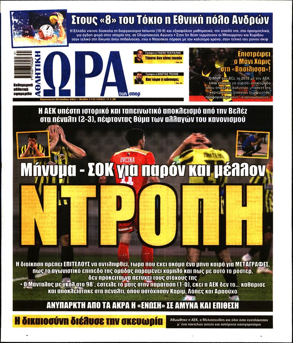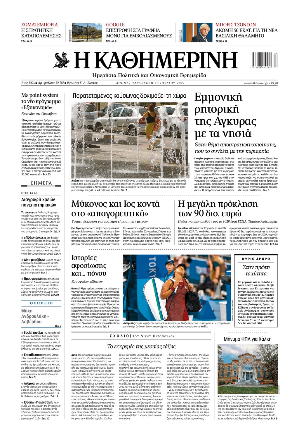 Τα πρωτοσέλιδα των εφημερίδων 30 Ιουλίου