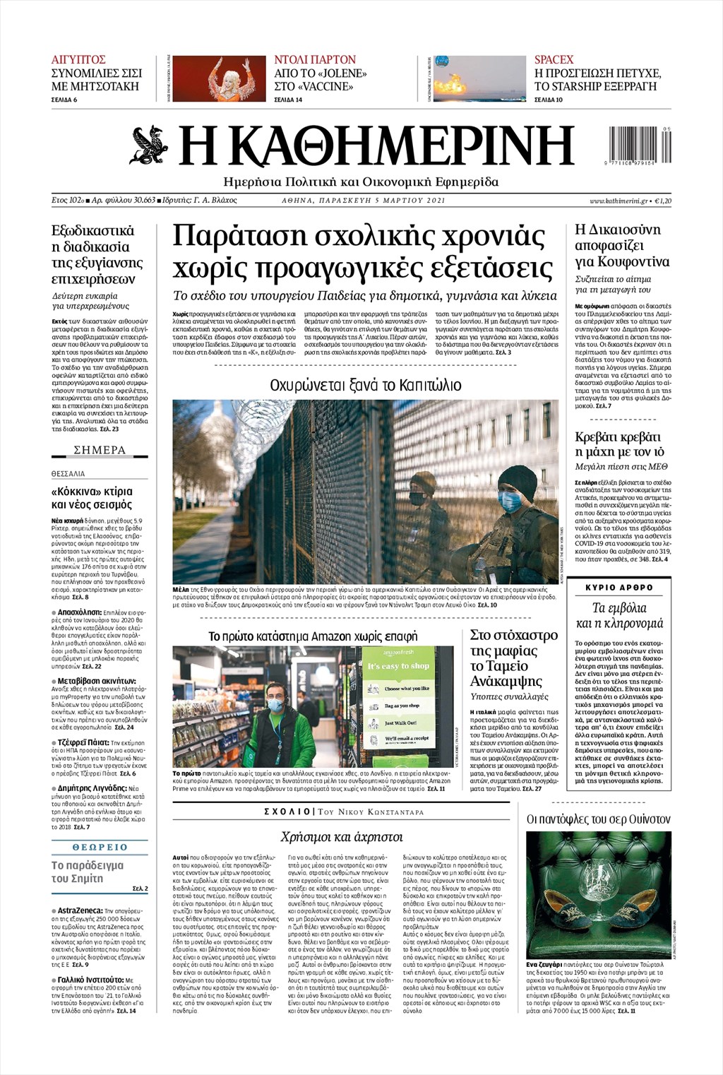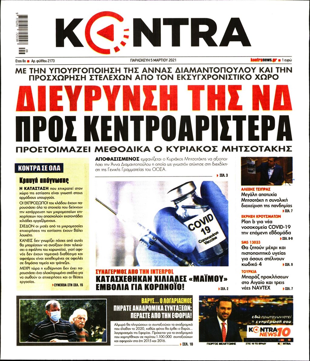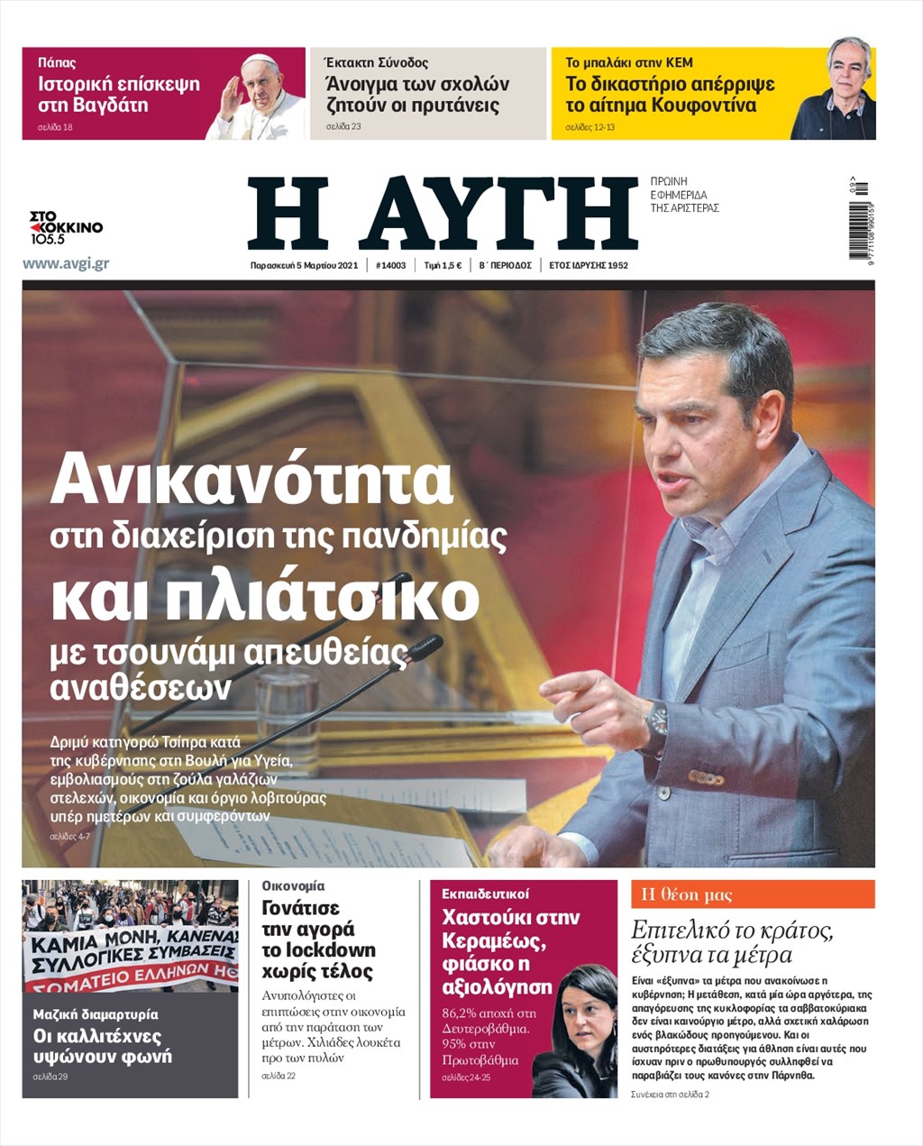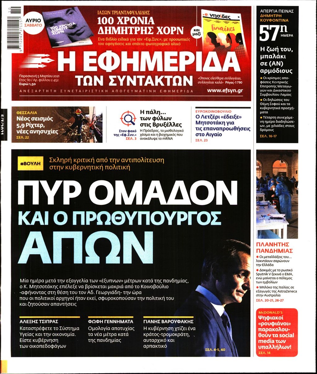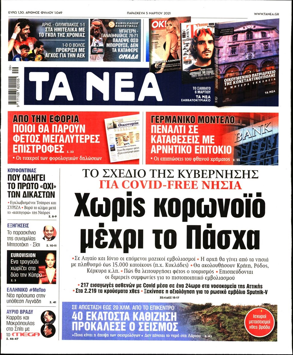 Τα πρωτοσέλιδα των εφημερίδων 5 Μαρτίου