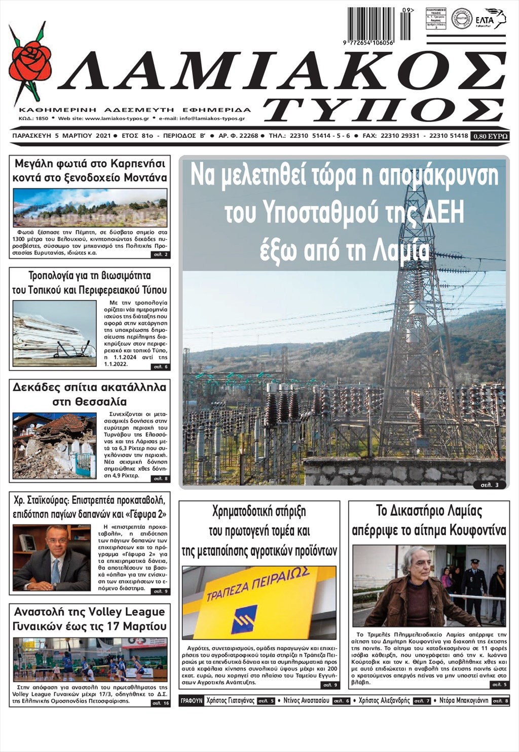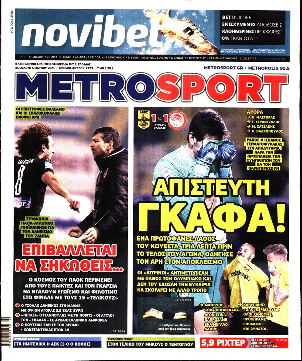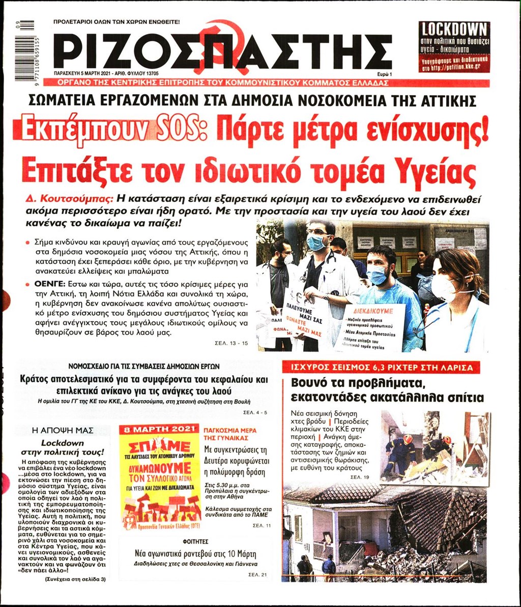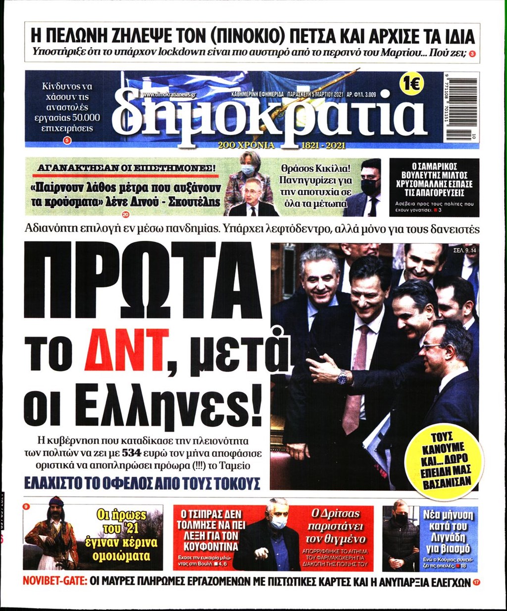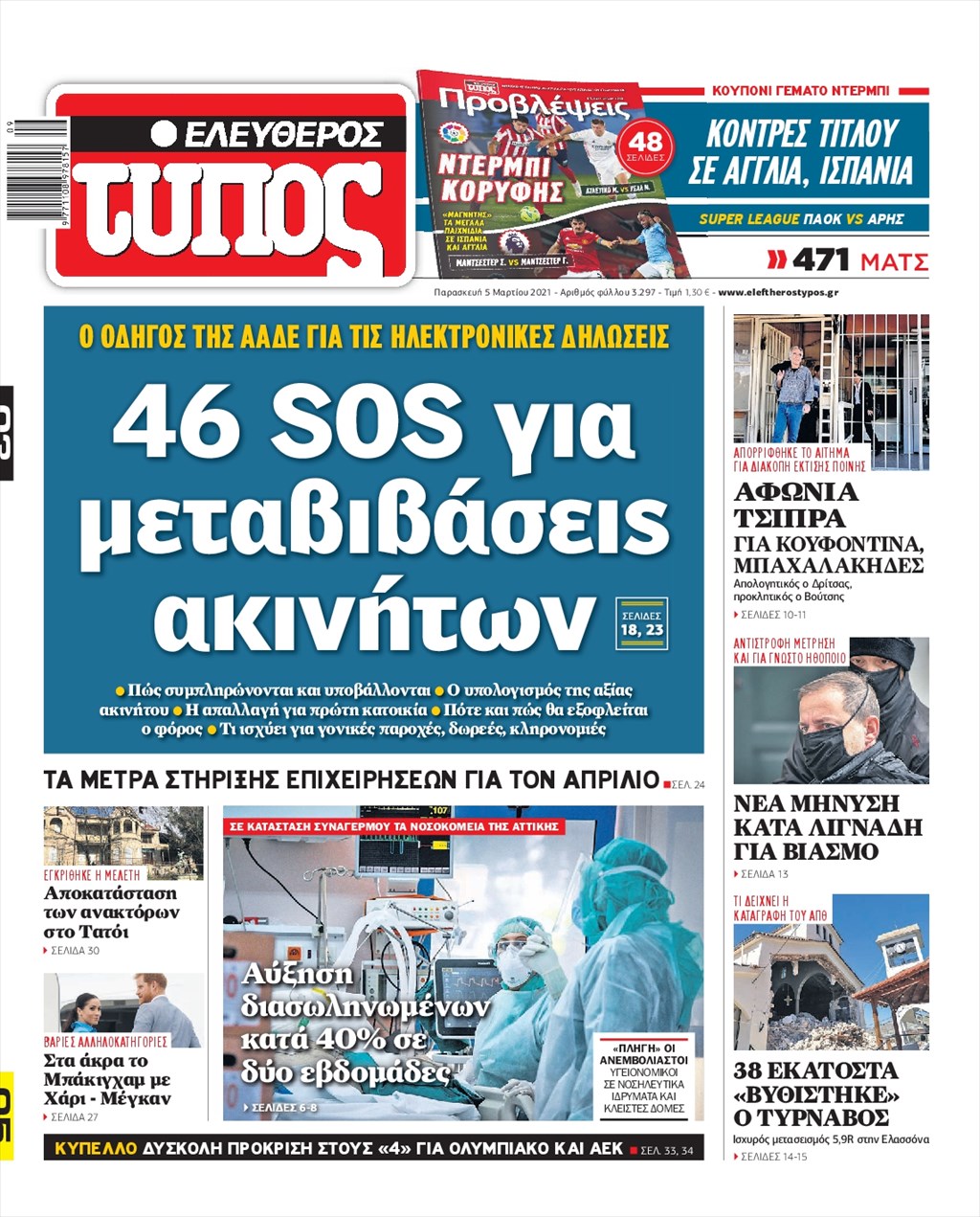 Τα πρωτοσέλιδα των εφημερίδων 5 Μαρτίου