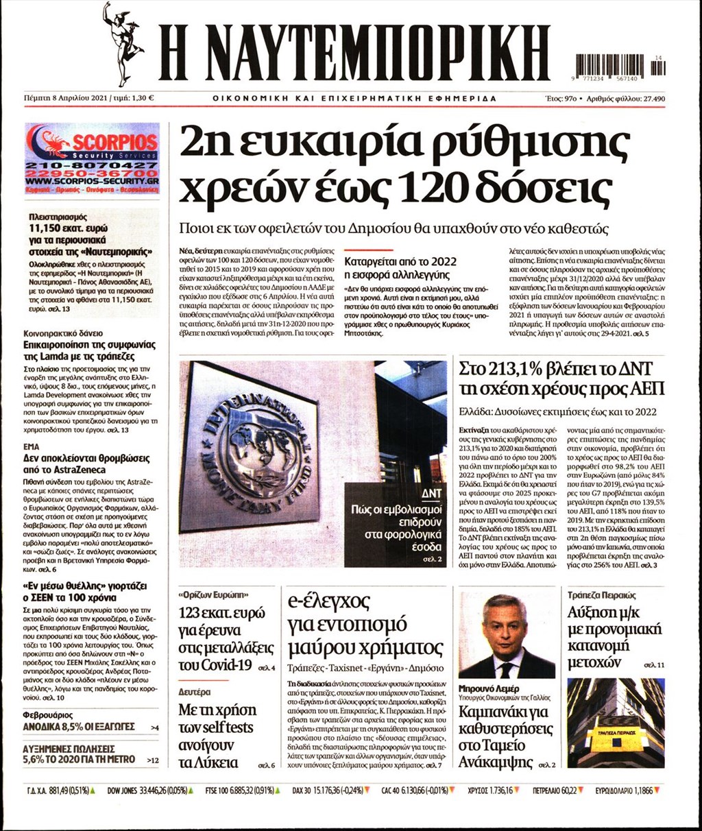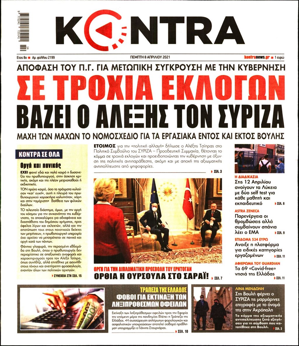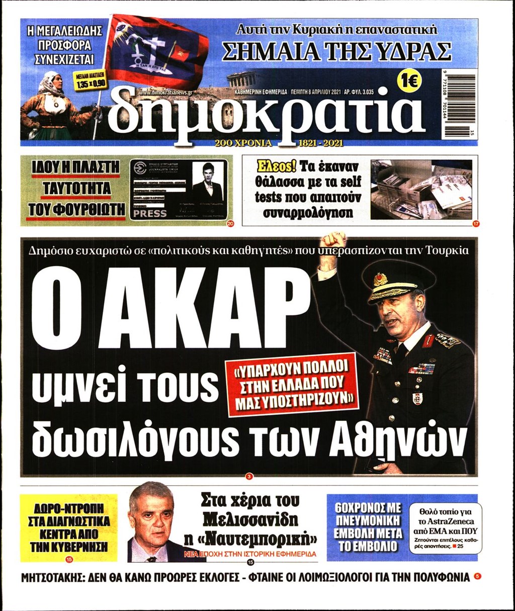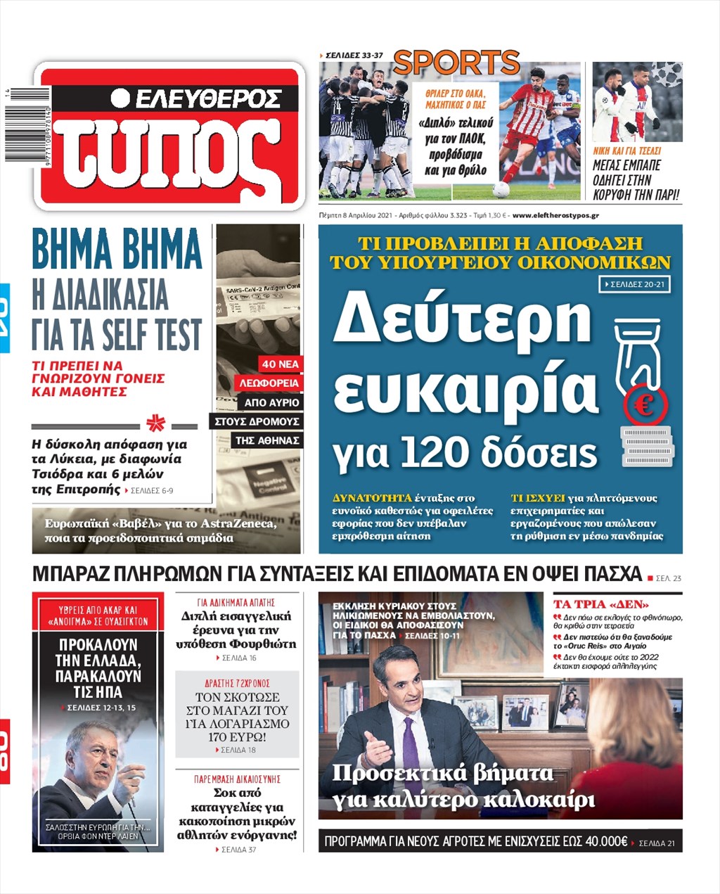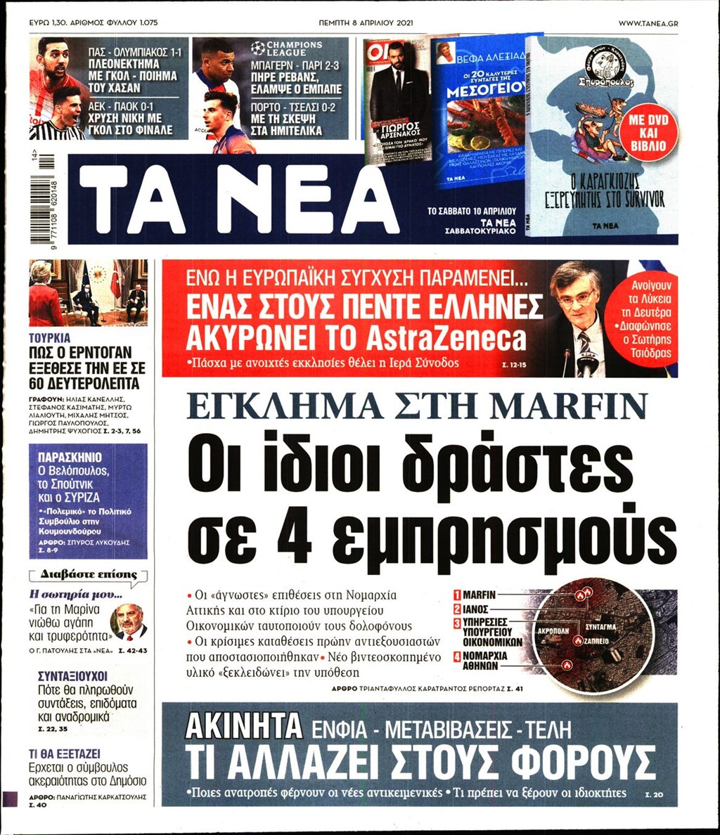 Τα πρωτοσέλιδα των εφημερίδων 8 Απριλίου