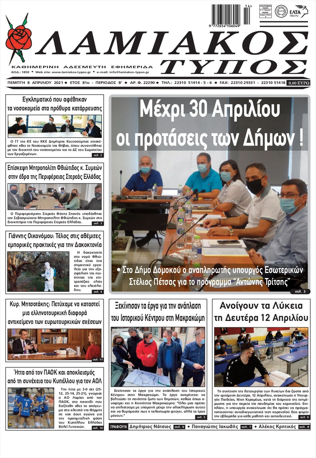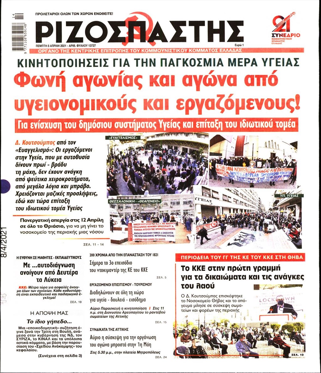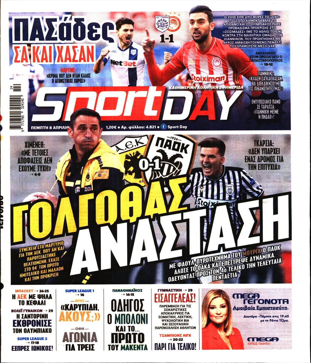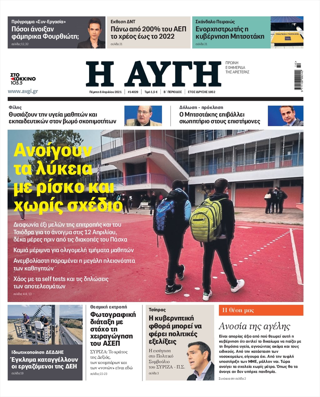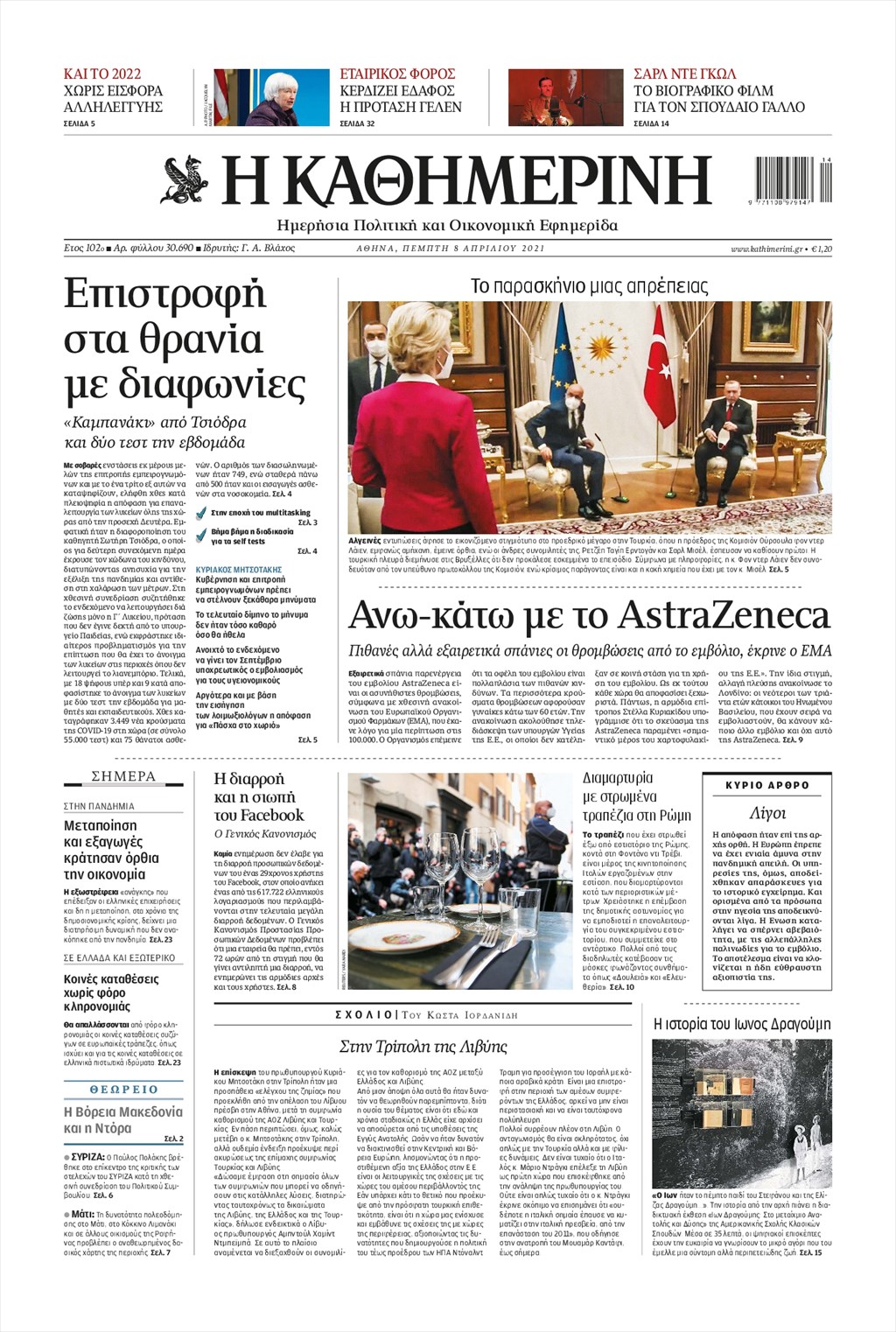 Τα πρωτοσέλιδα των εφημερίδων 8 Απριλίου