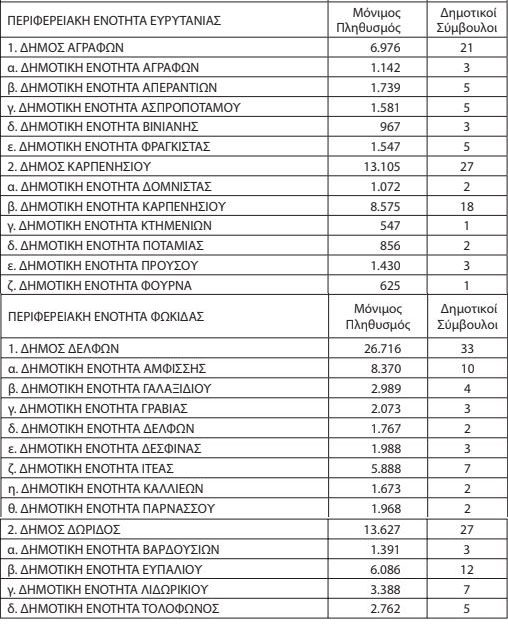 Και για όλους τους Δήμους της Στερεάς Ελλάδας: