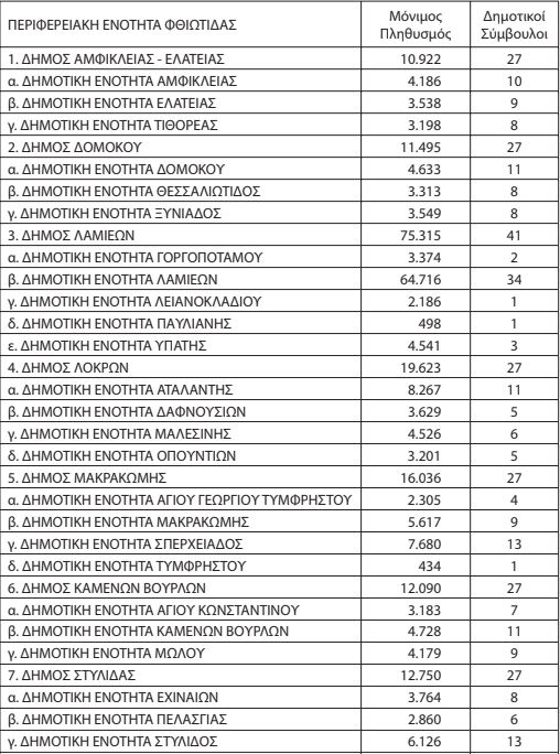 Αναλυτικά ο πίνακας για Περιφέρεια Στερεάς και τους Δήμους της Φθιώτιδας: