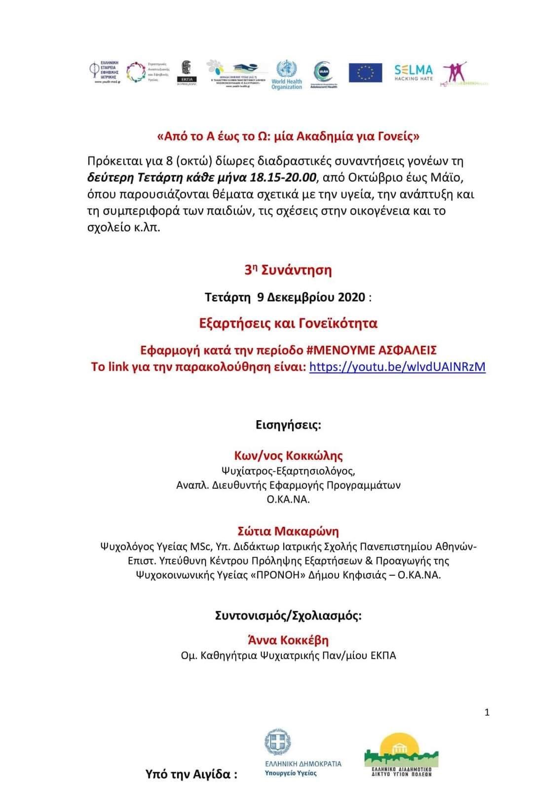 Αφορά μια πρωτοβουλία του Δήμου Καρύστου μέσα από το Πρόγραμμα ‘Από το Α έως το Ω. Μια Ακαδημία για Γονείς” που πραγματοποιείται υπό την αιγίδα του ΕΔΔΥΠΠΥ.