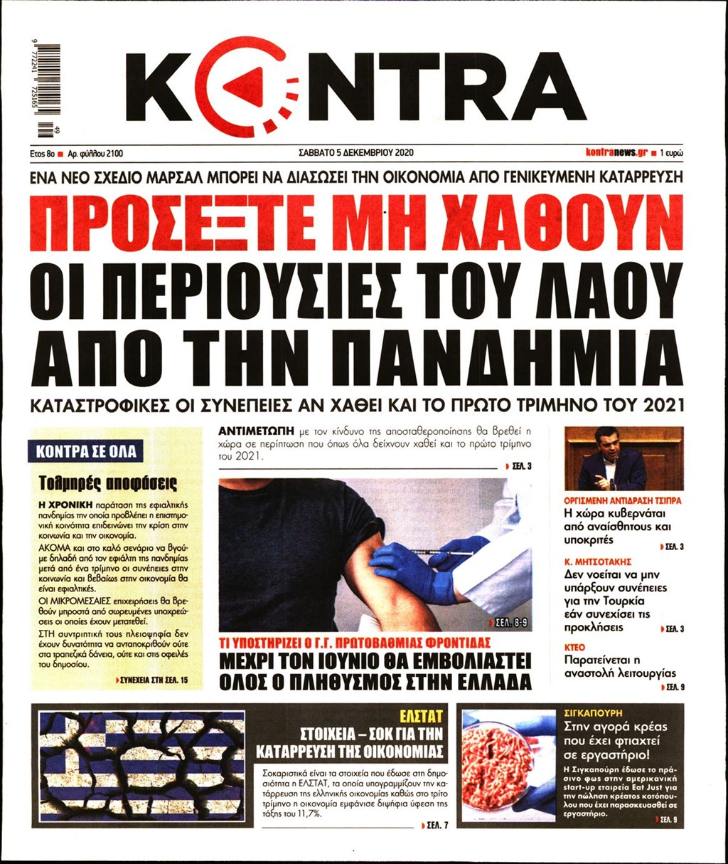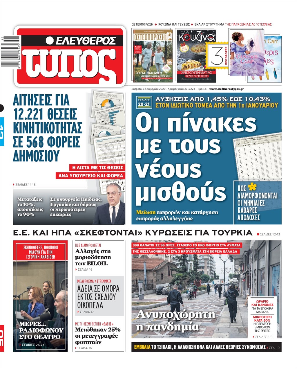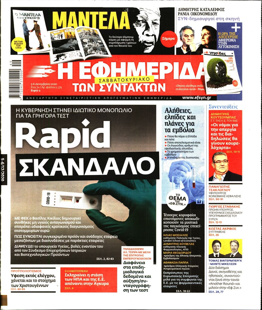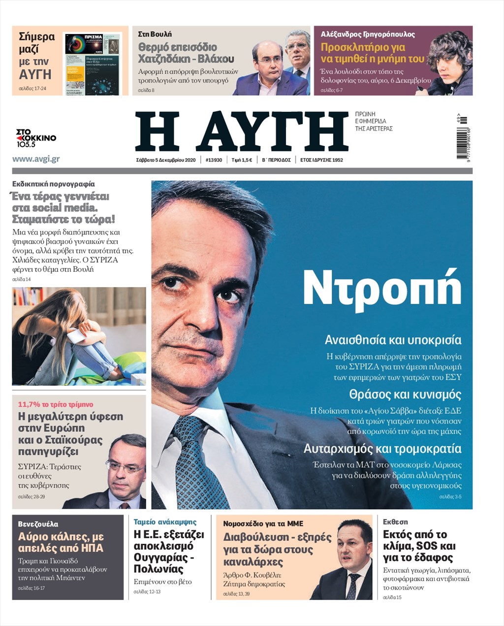 Διαβάστε τα πρωτοσέλιδα των εφημερίδων 5 Δεκεμβρίου