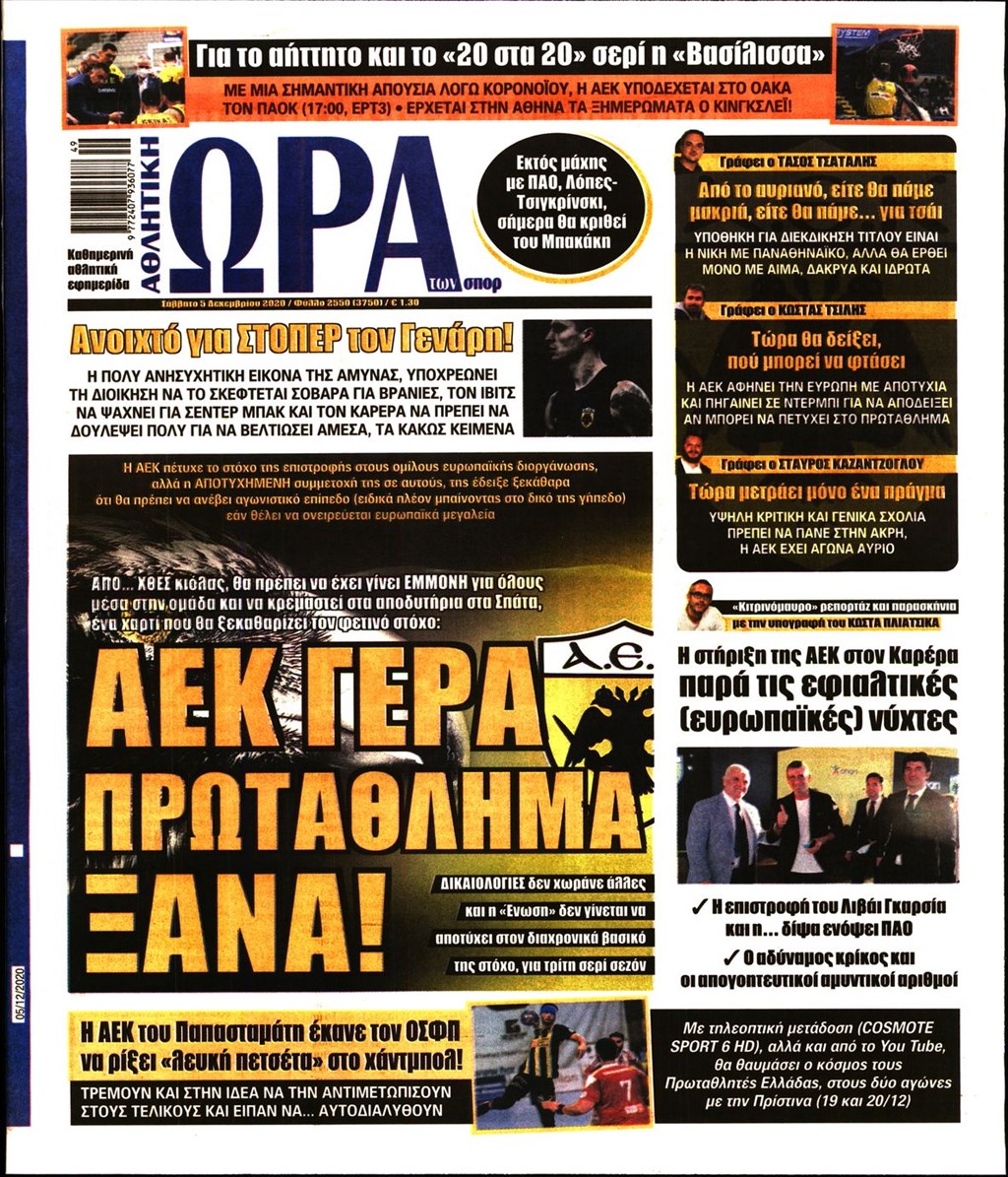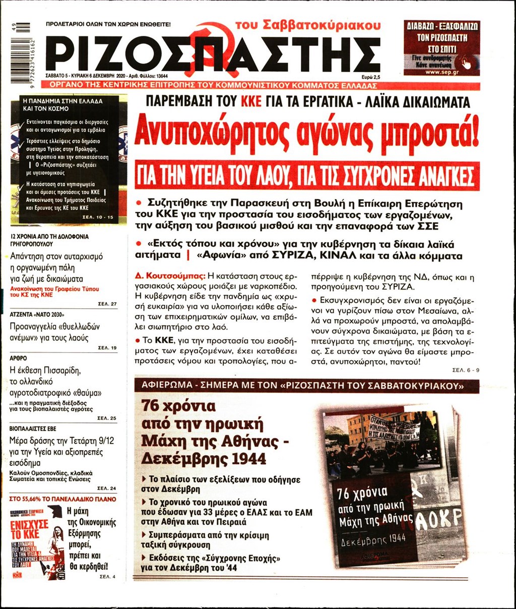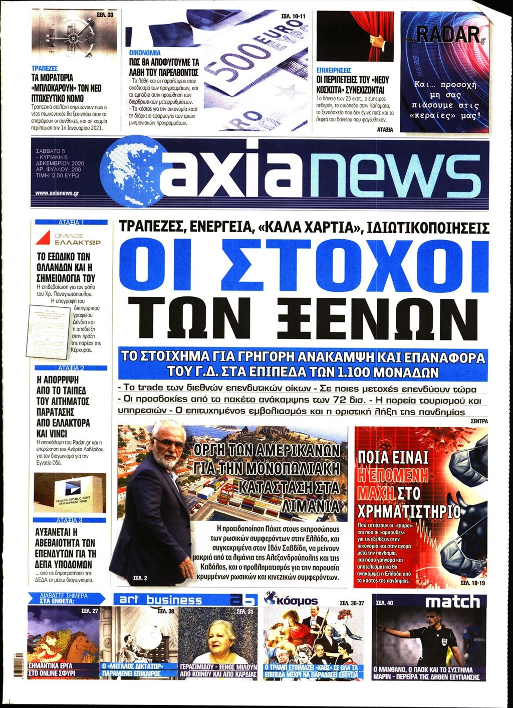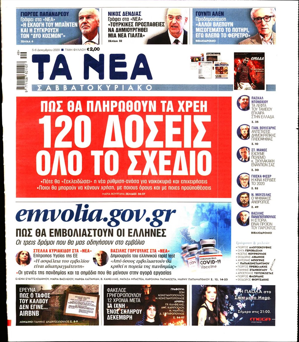 Διαβάστε τα πρωτοσέλιδα των εφημερίδων 5 Δεκεμβρίου