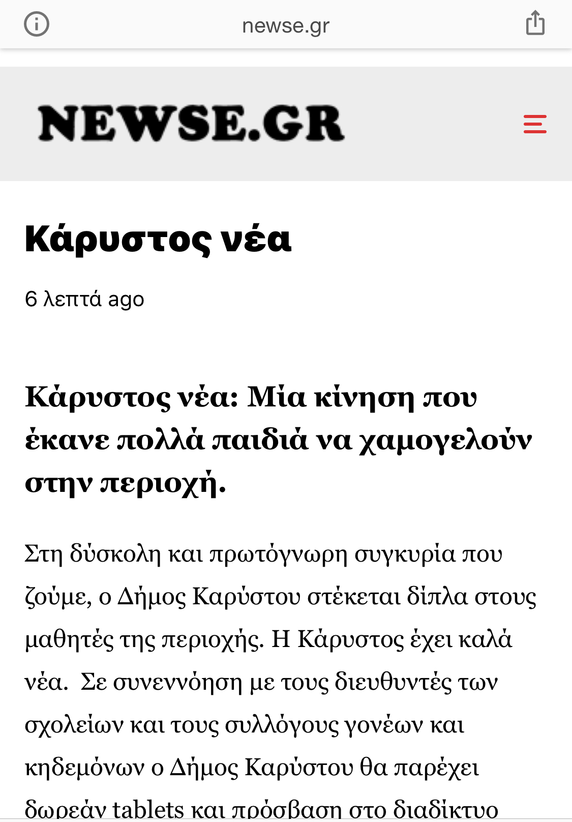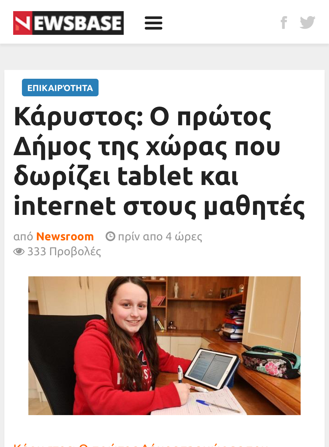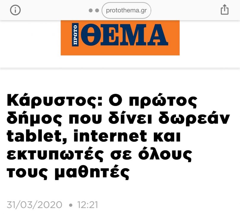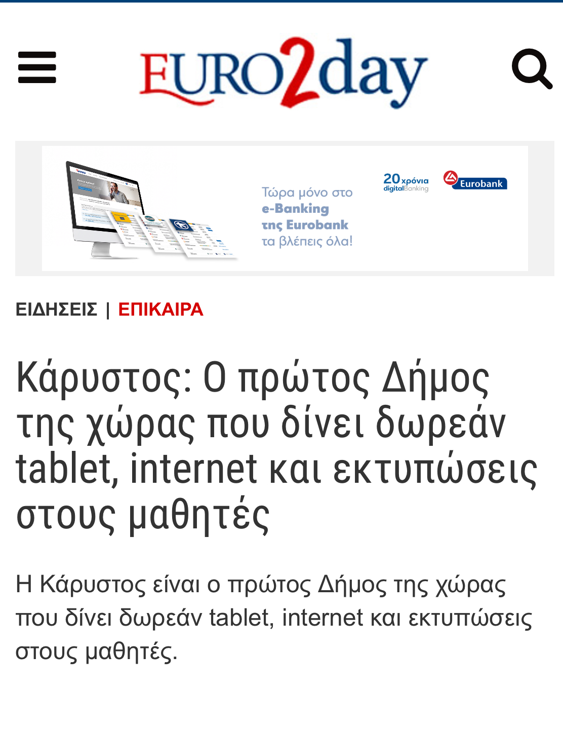 Πανελλαδικά Μέσα Ενημέρωσης: Αποθεώνουν την Κάρυστο και τον Δήμαρχο μας- Ο πρώτος δήμος που δίνει δωρεάν tablet, internet και εκτυπωτές σε όλους τους μαθητές