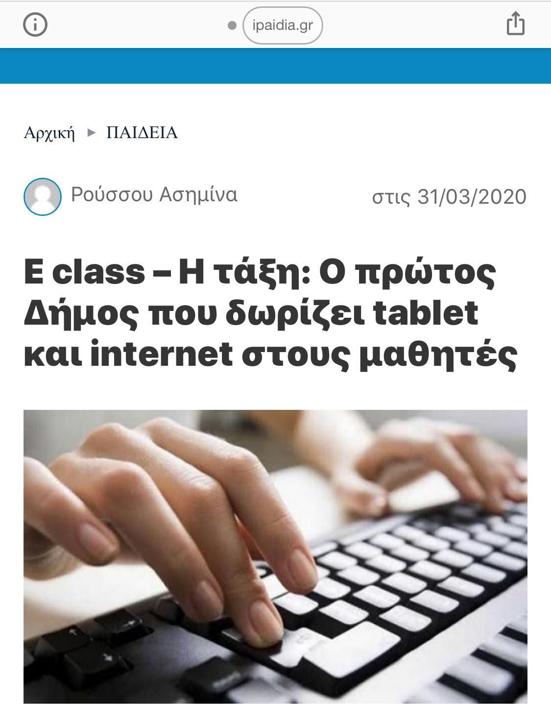 Σε εκτενές ρεπορτάζ το ειδησεογραφικό site protothema αποθεώνει την προσπάθεια του δημάρχου μας να δοθούν tablet και πρόσβαση στο διαδίκτυο στους μαθητές του Δήμου μας που το έχουν ανάγκη.