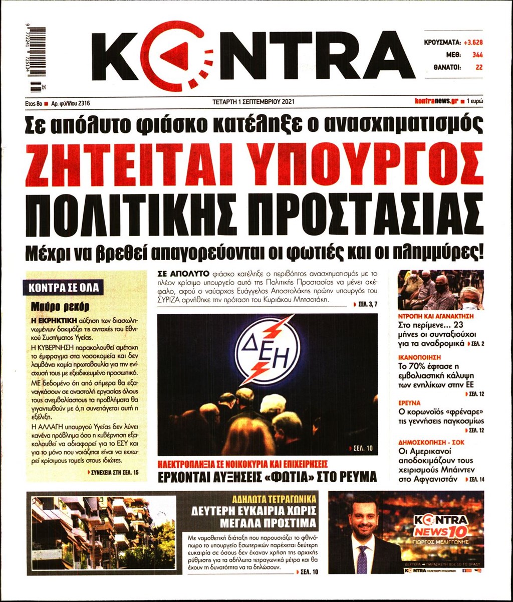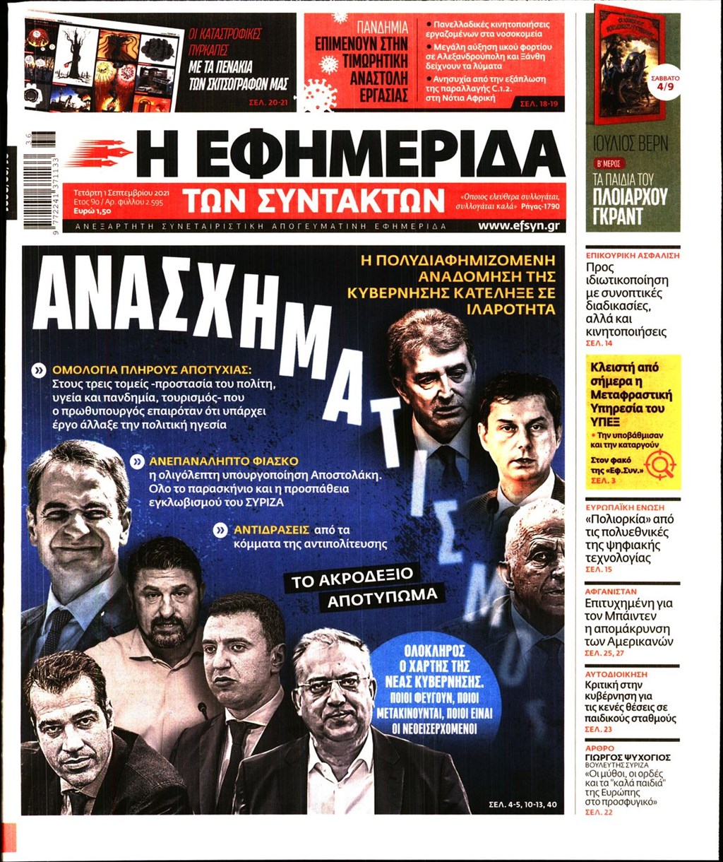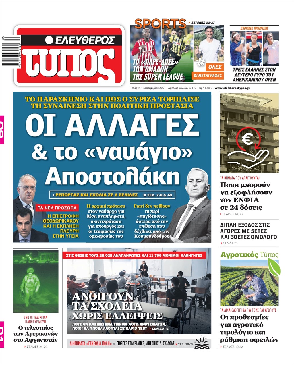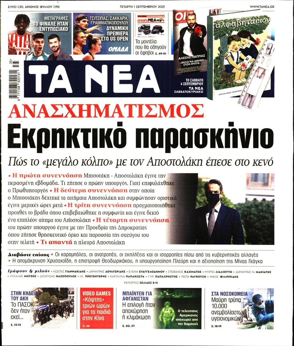 Τα πρωτοσέλιδα των εφημερίδων 1 Σεπτεμβρίου