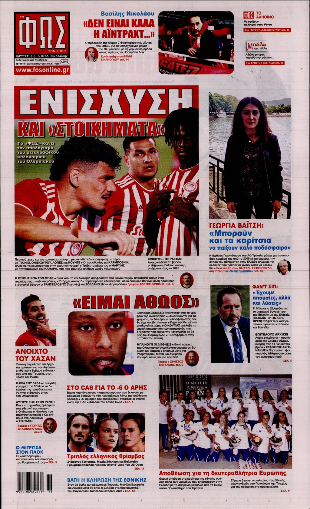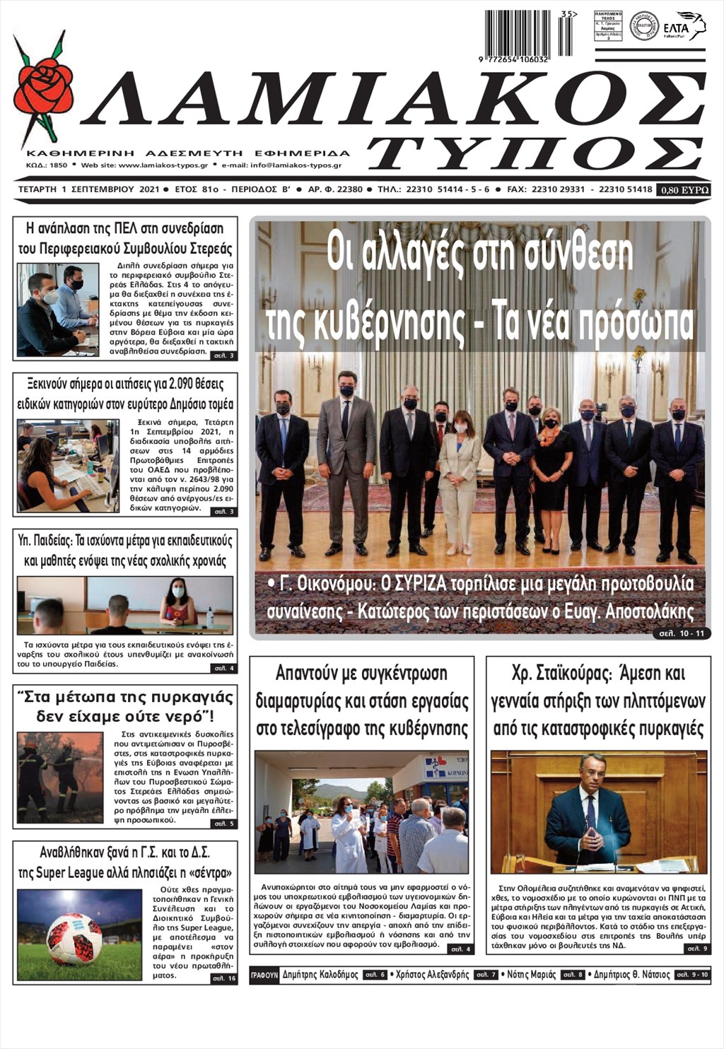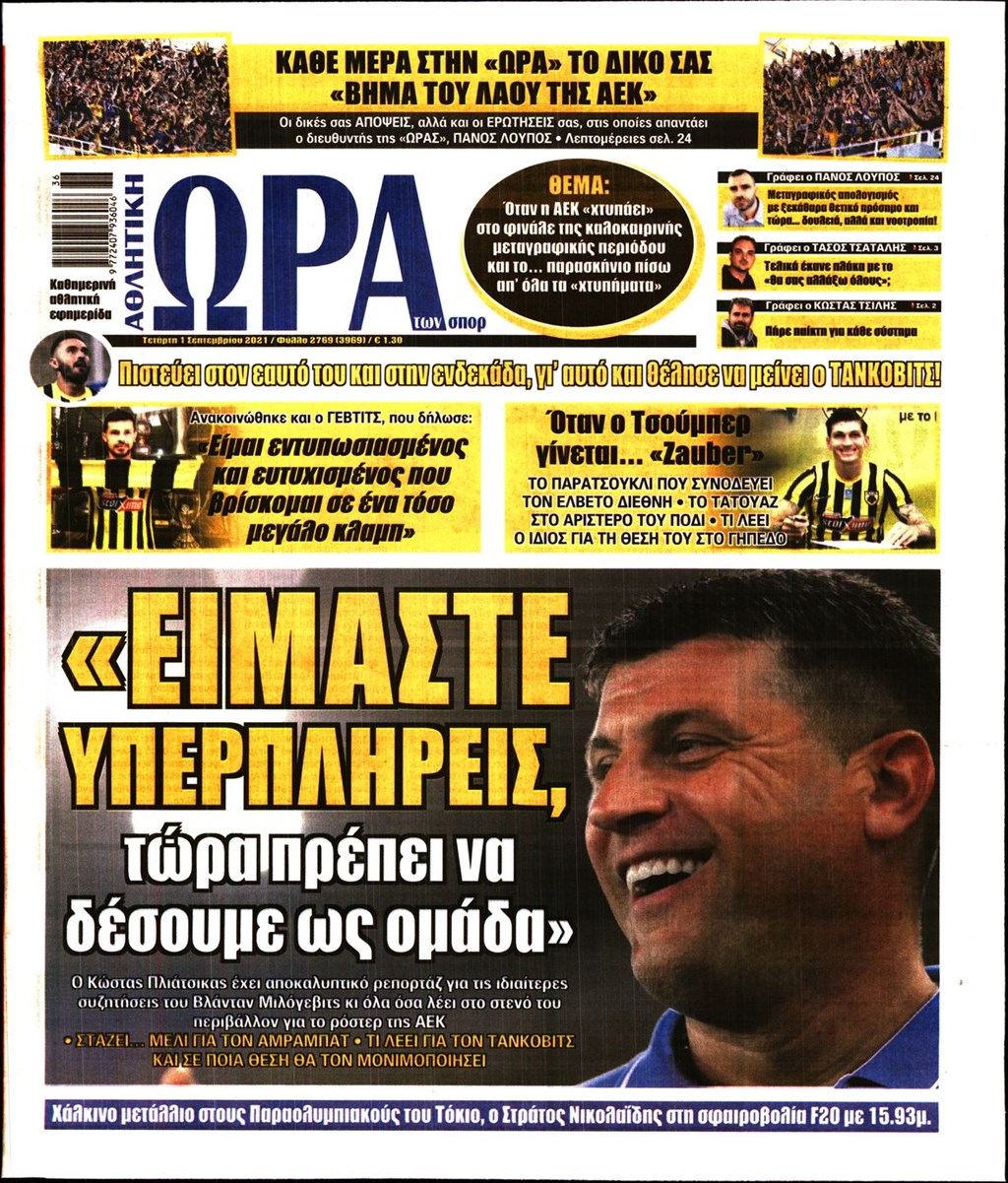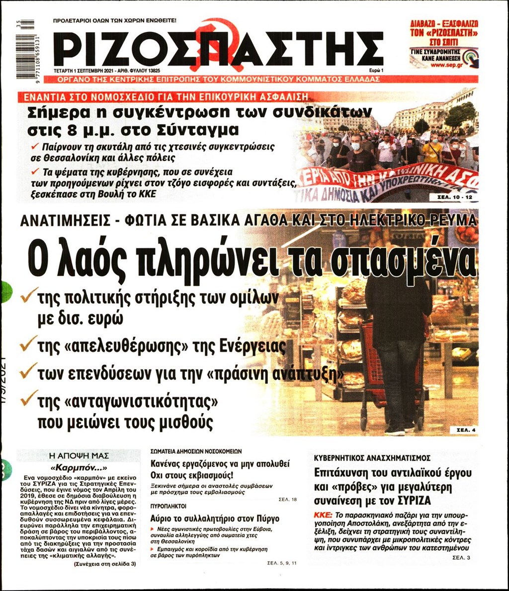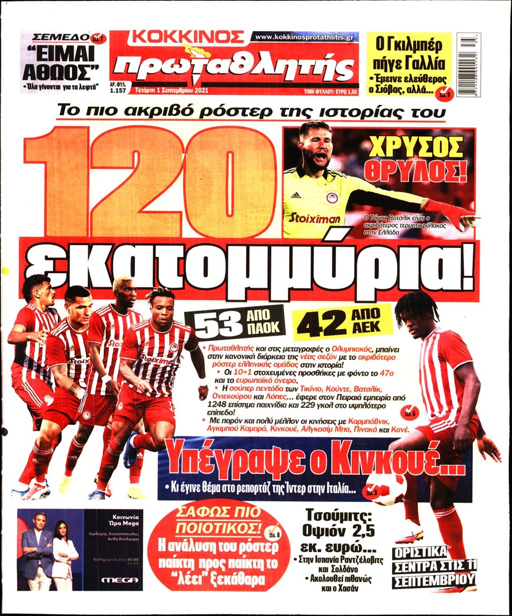 Τα πρωτοσέλιδα των εφημερίδων 1 Σεπτεμβρίου