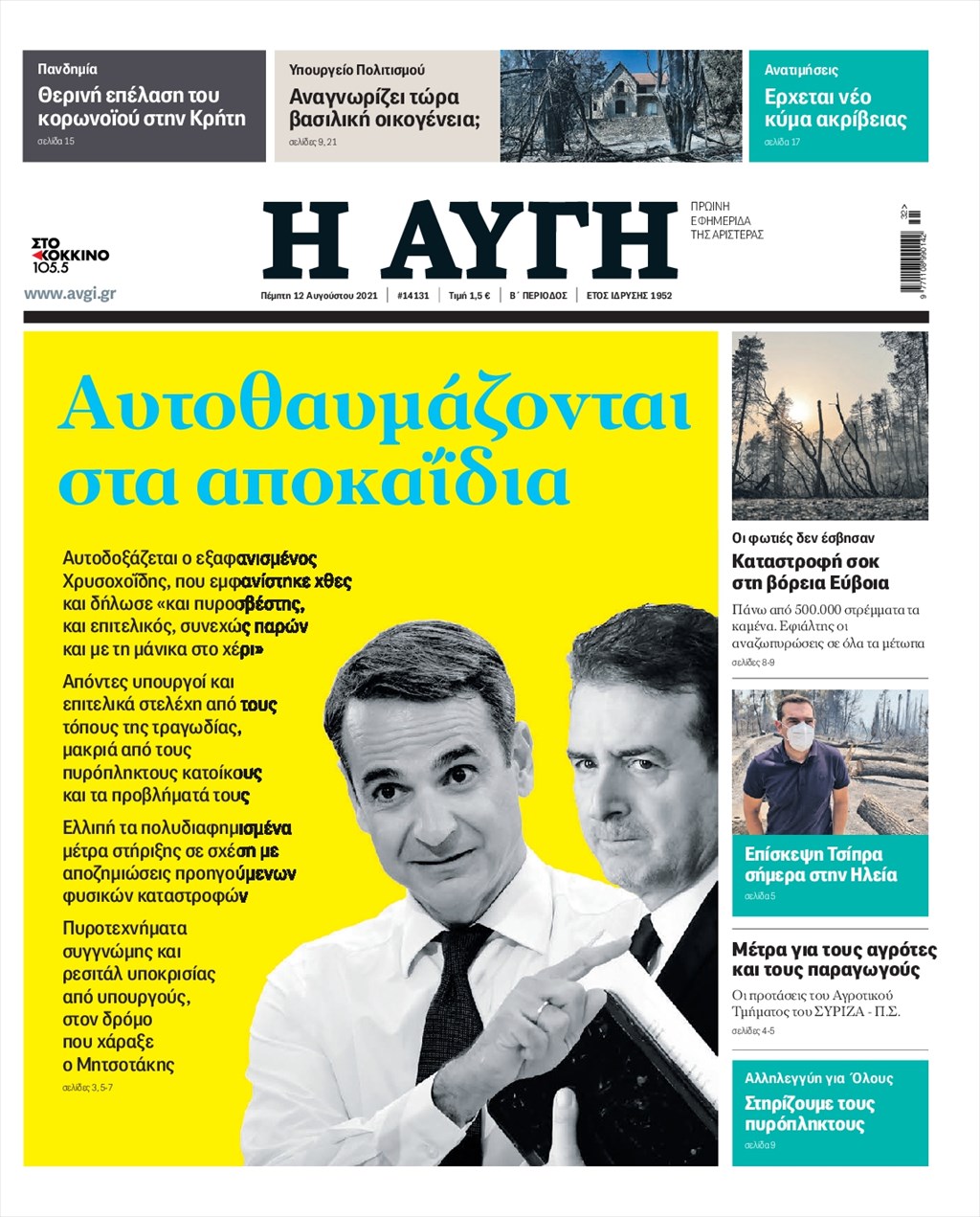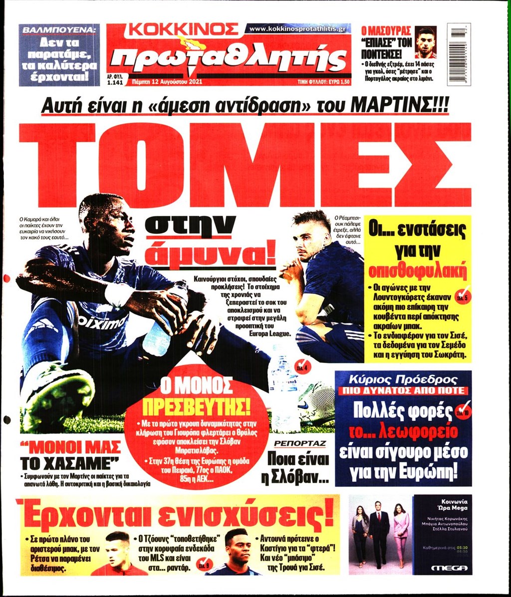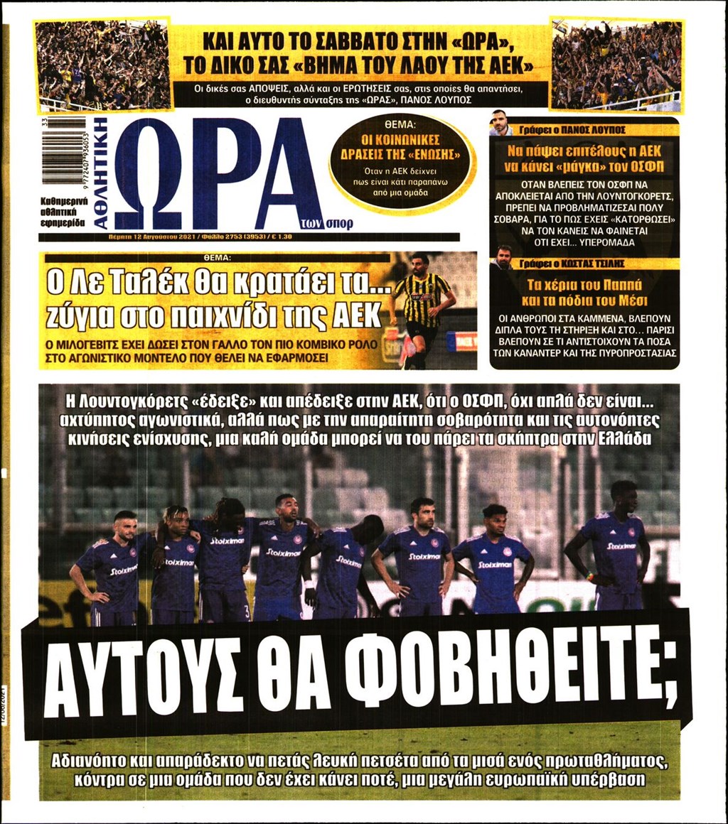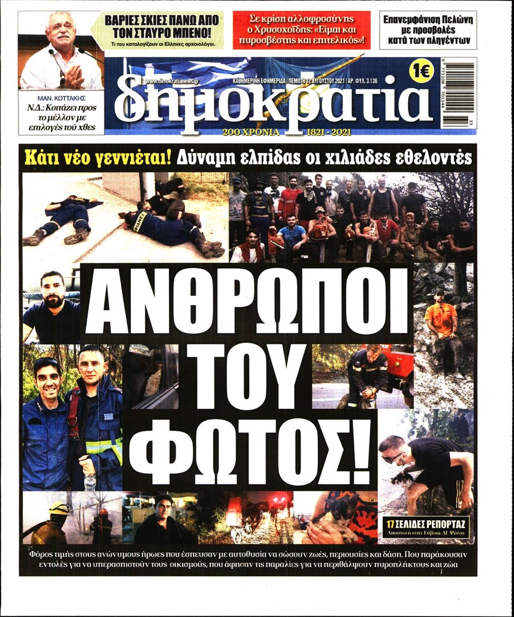 Τα πρωτοσέλιδα των εφημερίδων 12 Αυγούστου