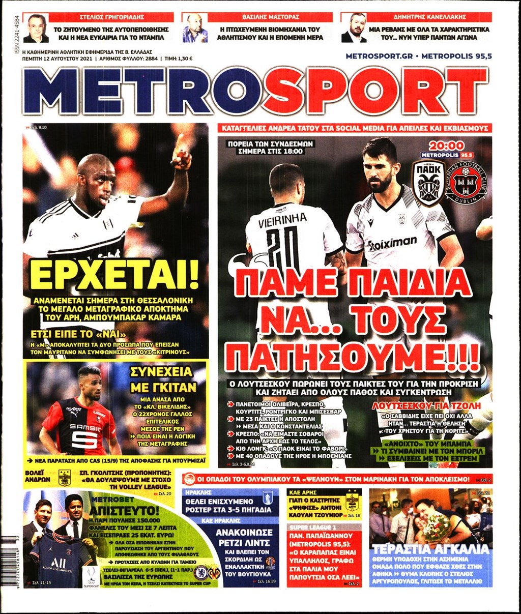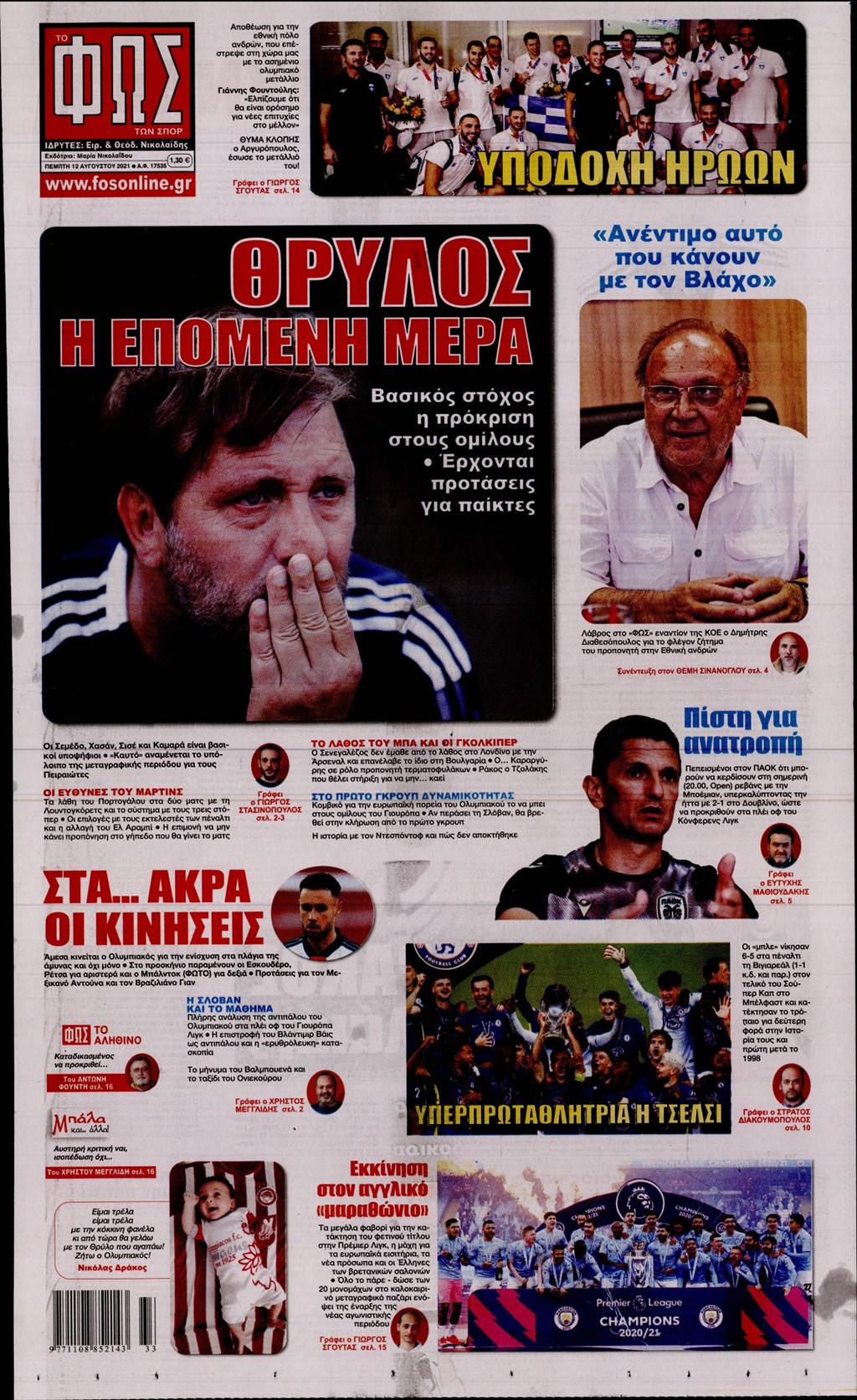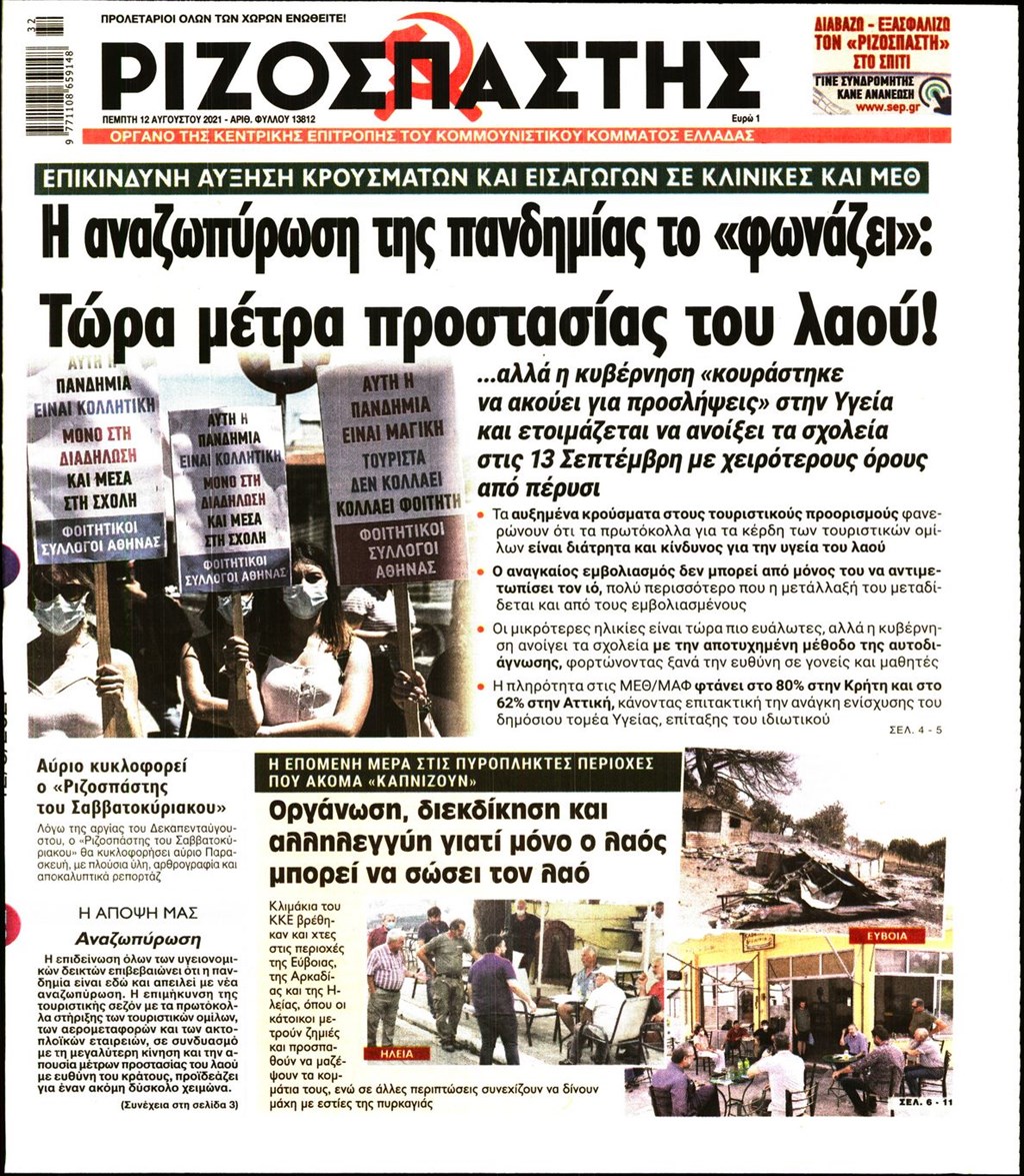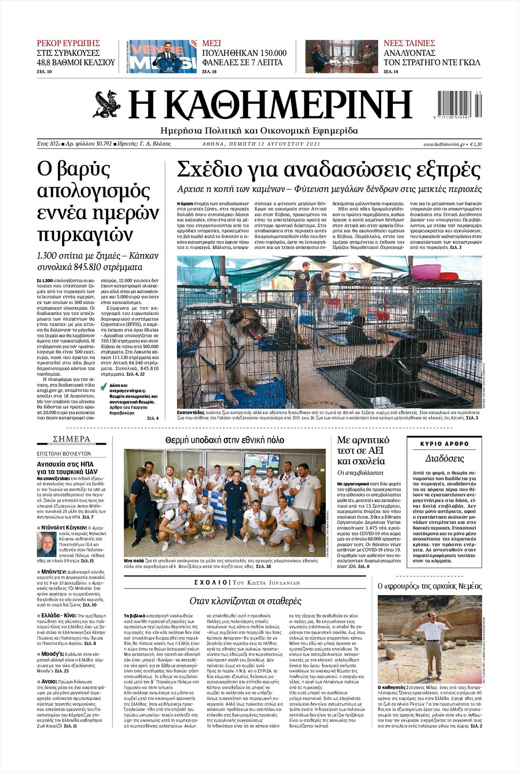 Τα πρωτοσέλιδα των εφημερίδων 12 Αυγούστου
