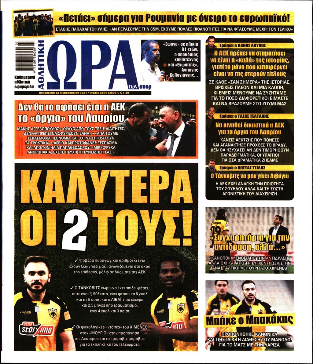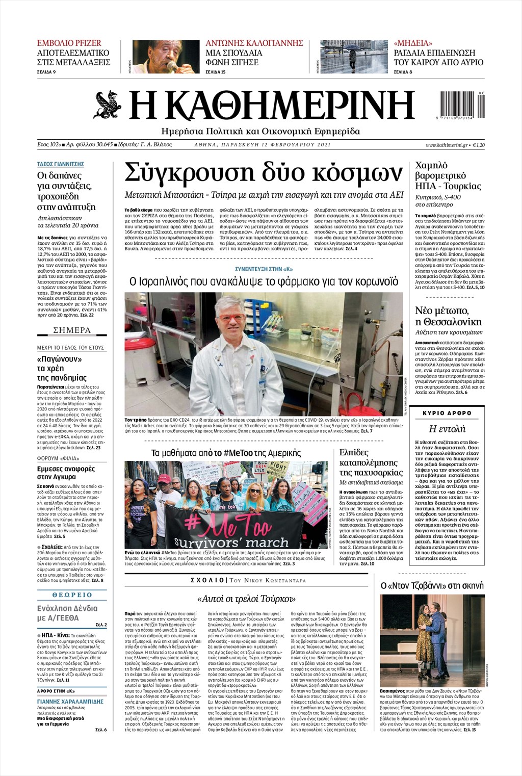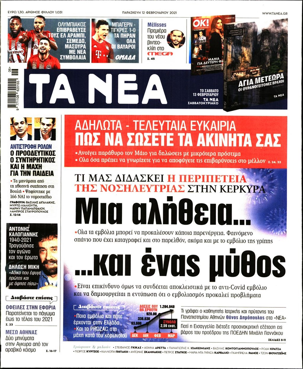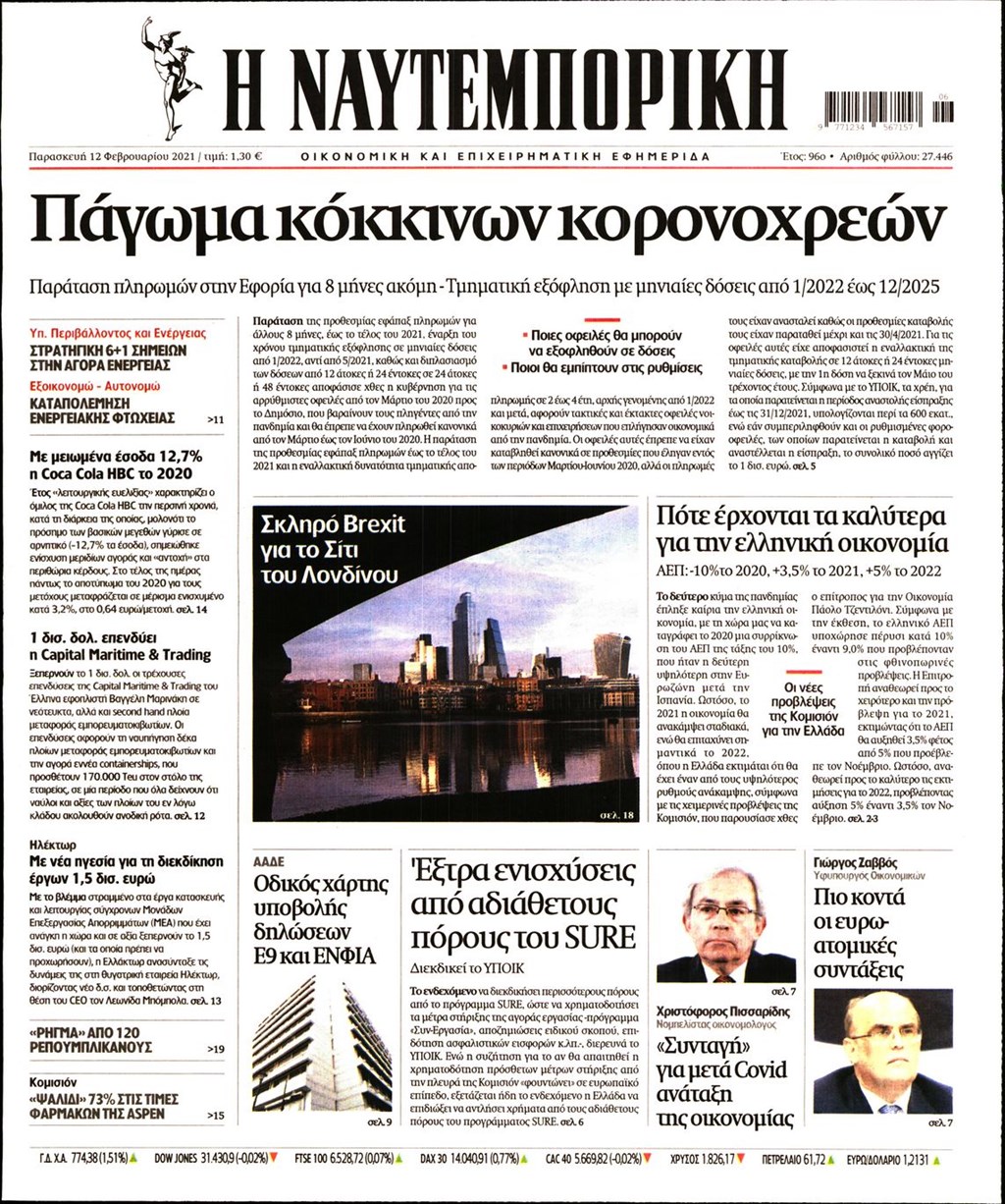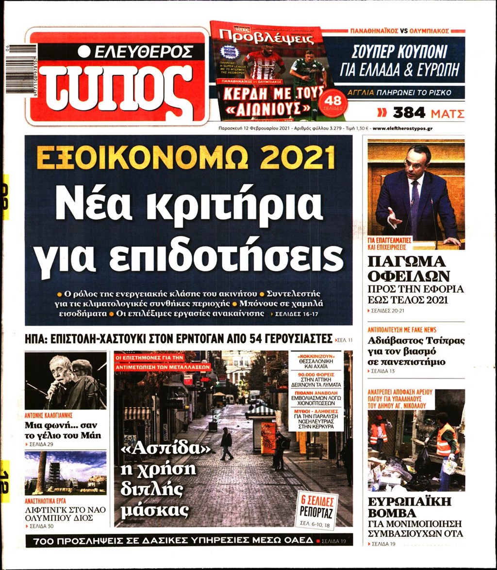 Τα πρωτοσέλιδα των εφημερίδων 12 Φεβρουαρίου