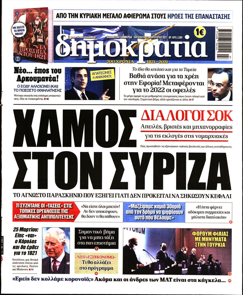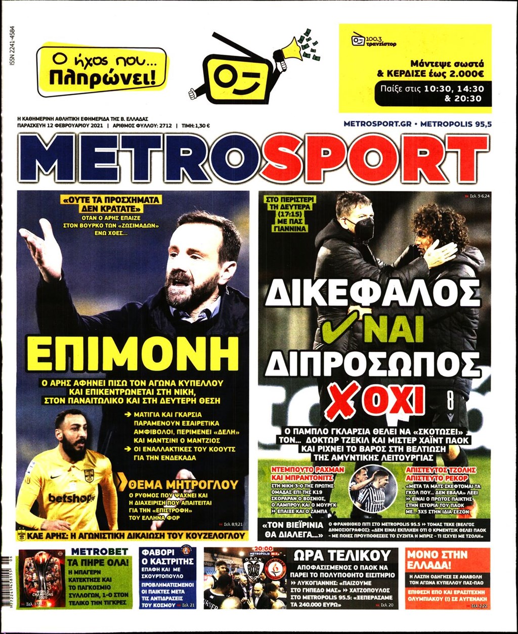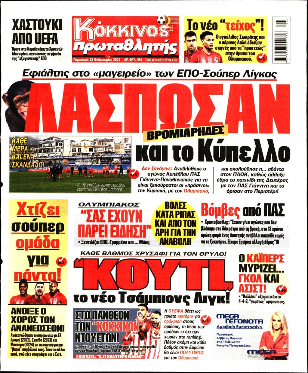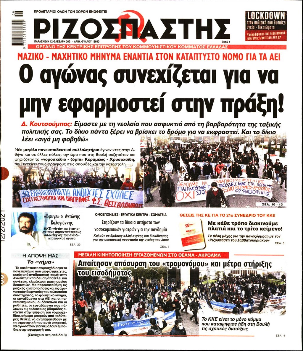 Τα πρωτοσέλιδα των εφημερίδων 12 Φεβρουαρίου