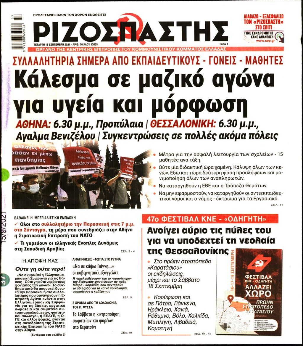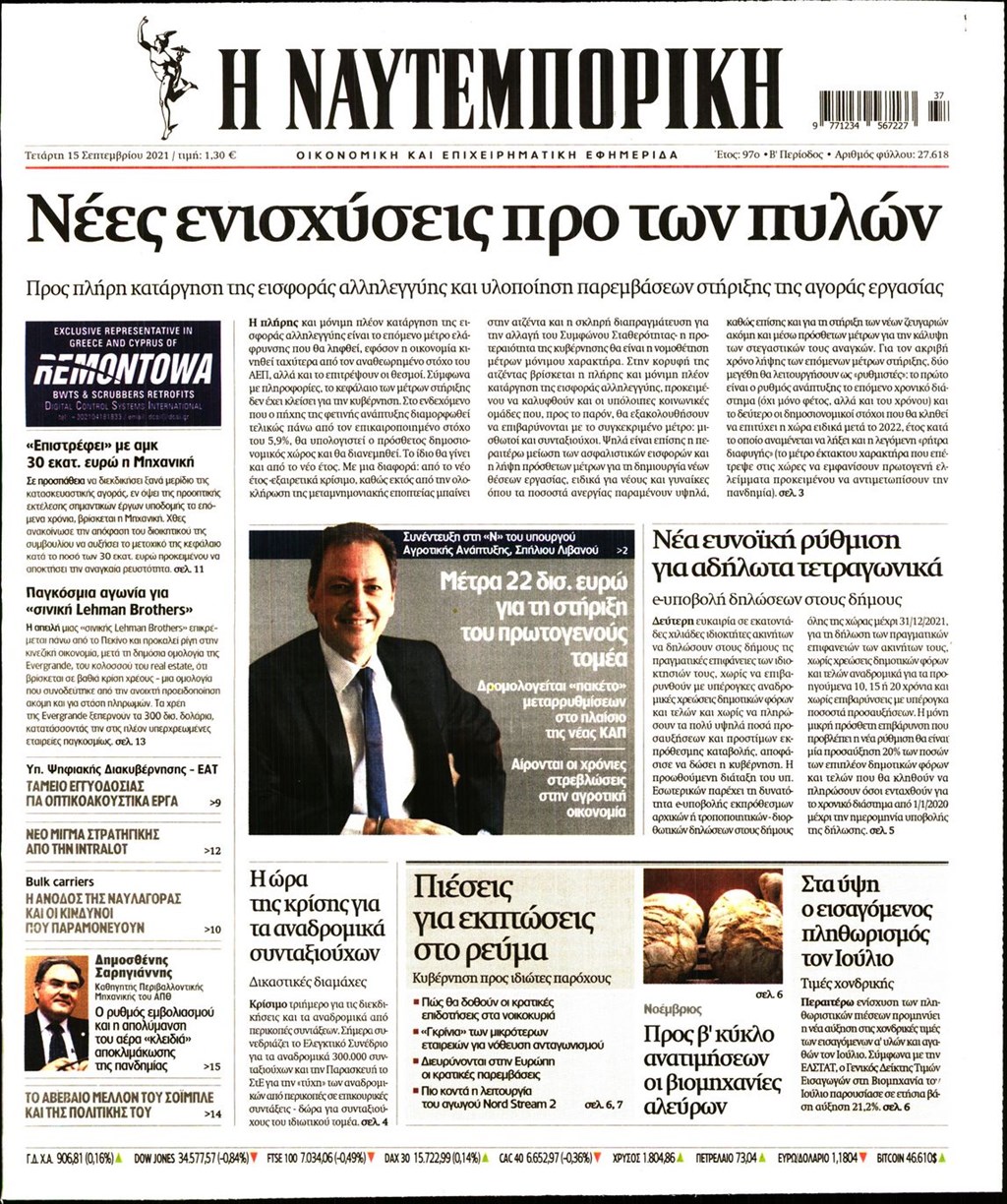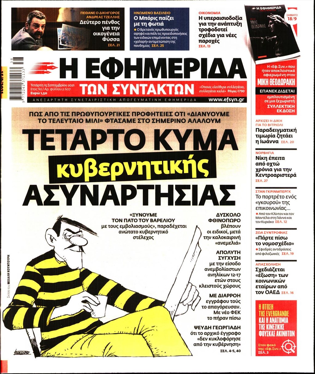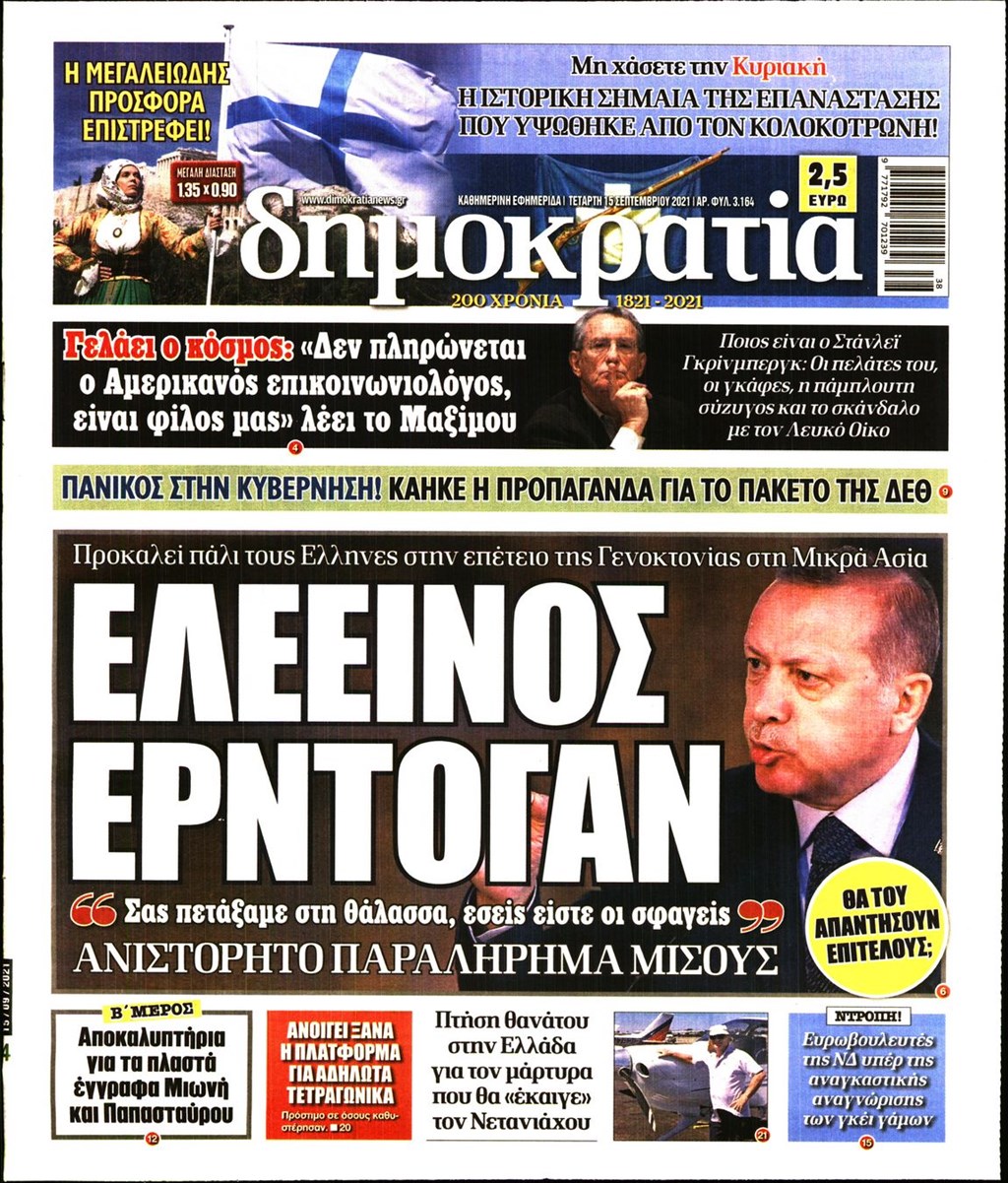 Τα πρωτοσέλιδα των εφημερίδων 15 Σεπτεμβρίου