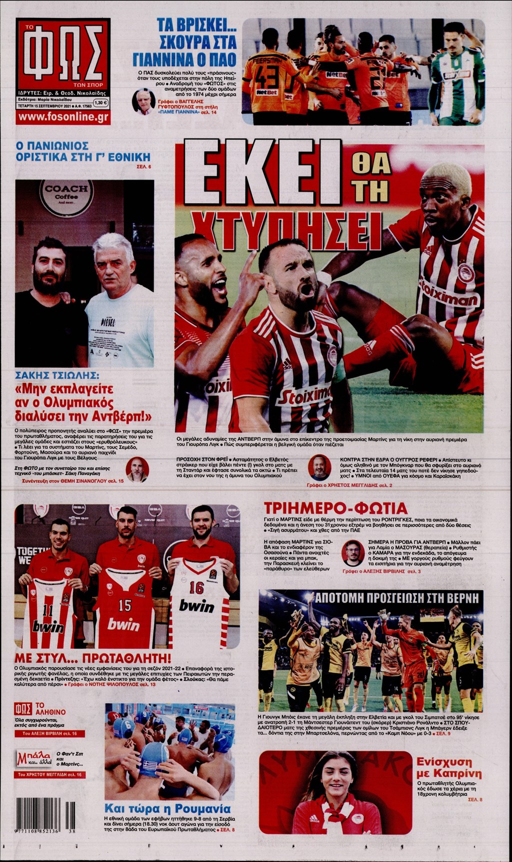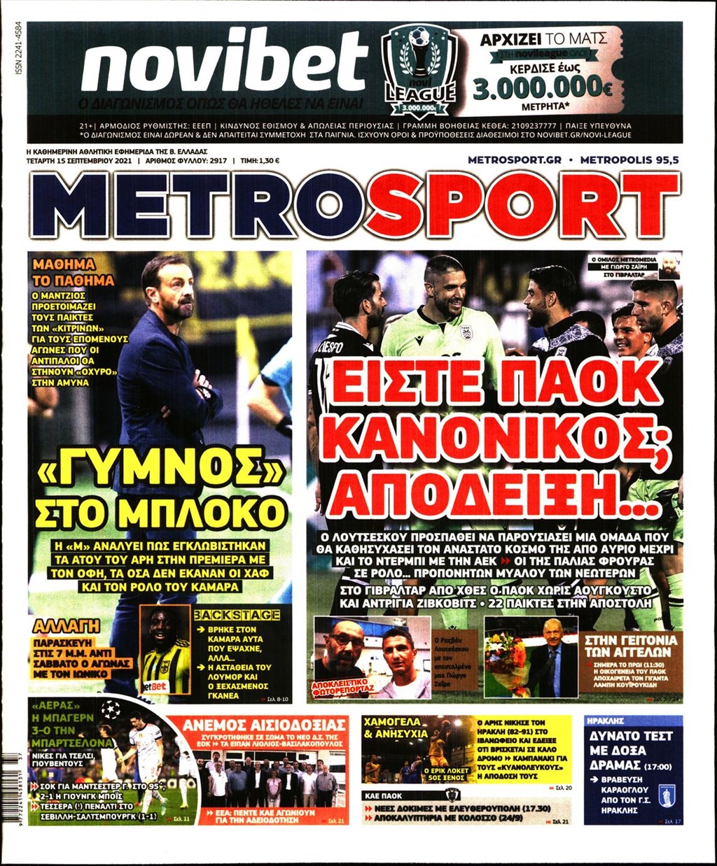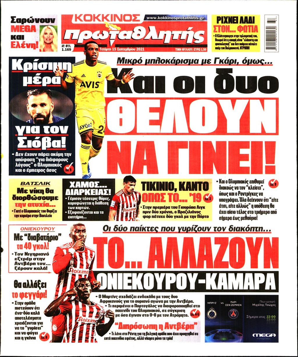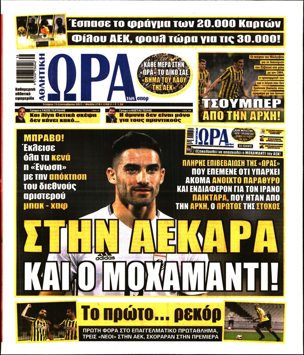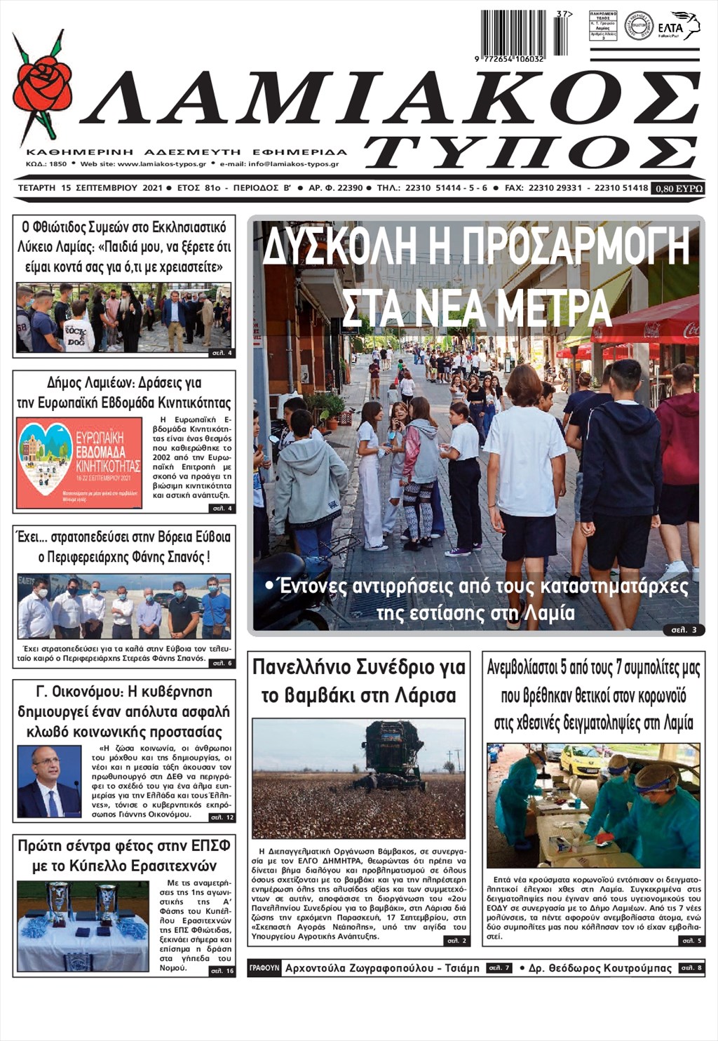 Τα πρωτοσέλιδα των εφημερίδων 15 Σεπτεμβρίου