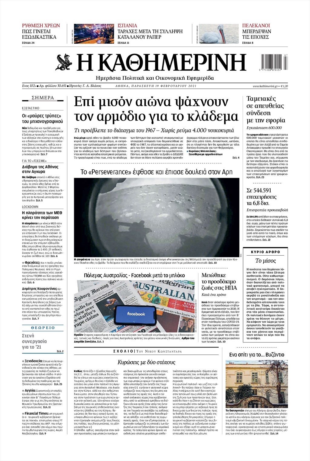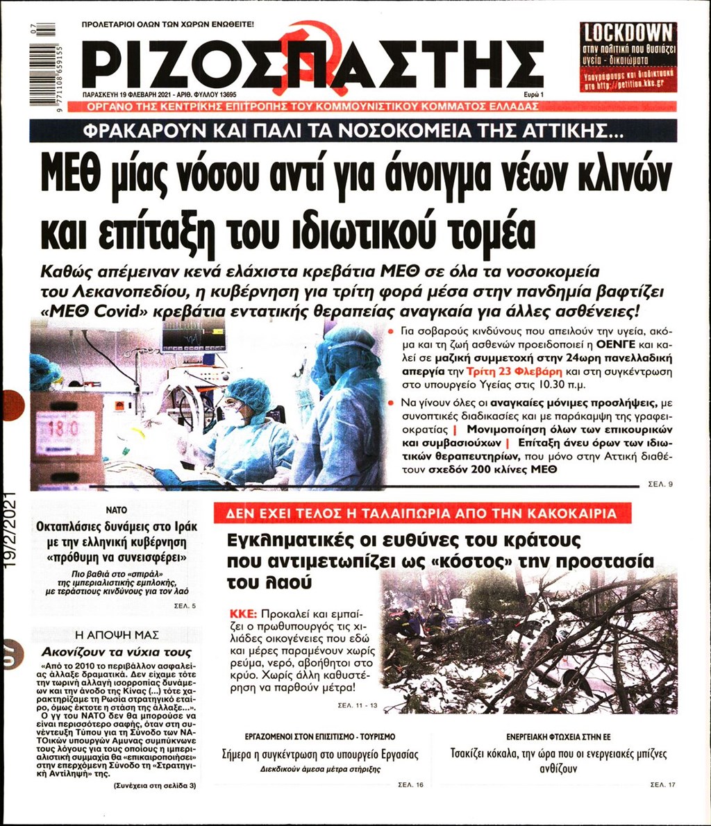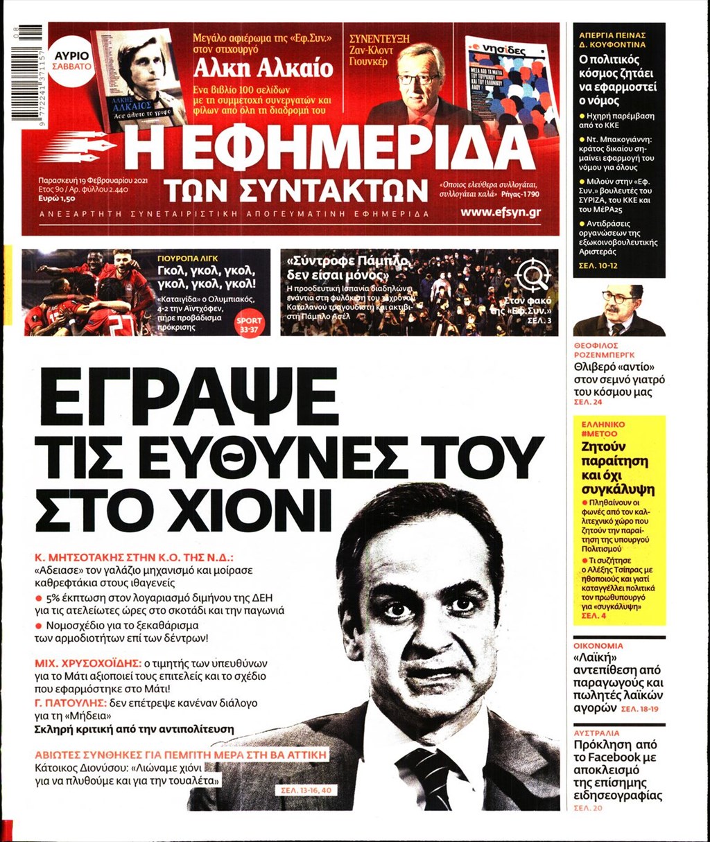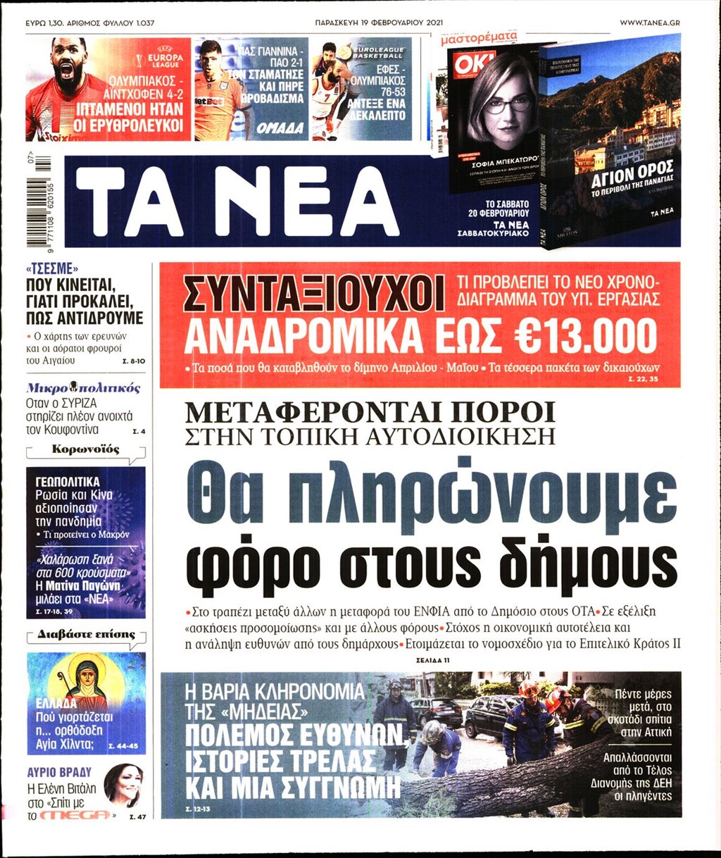 Τα πρωτοσέλιδα των εφημερίδων 19 Φεβρουαρίου