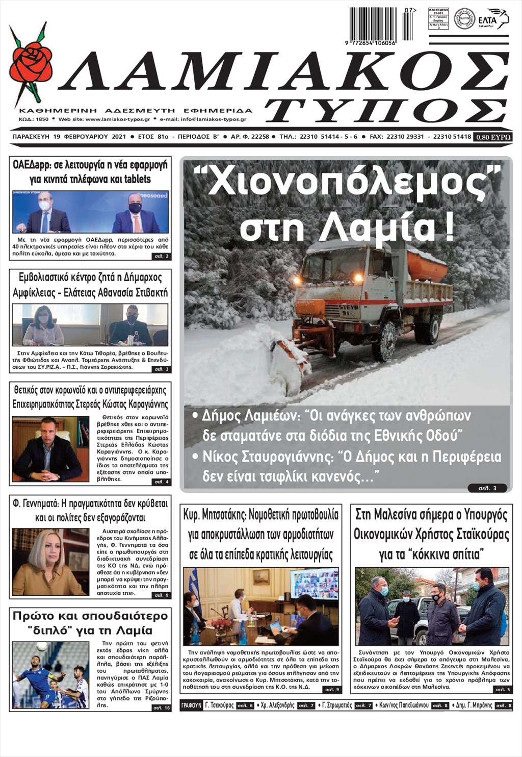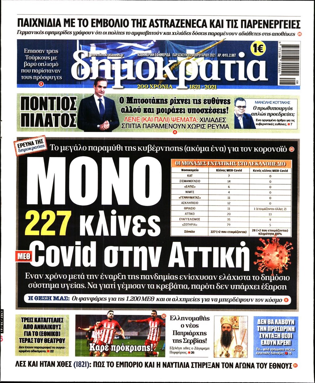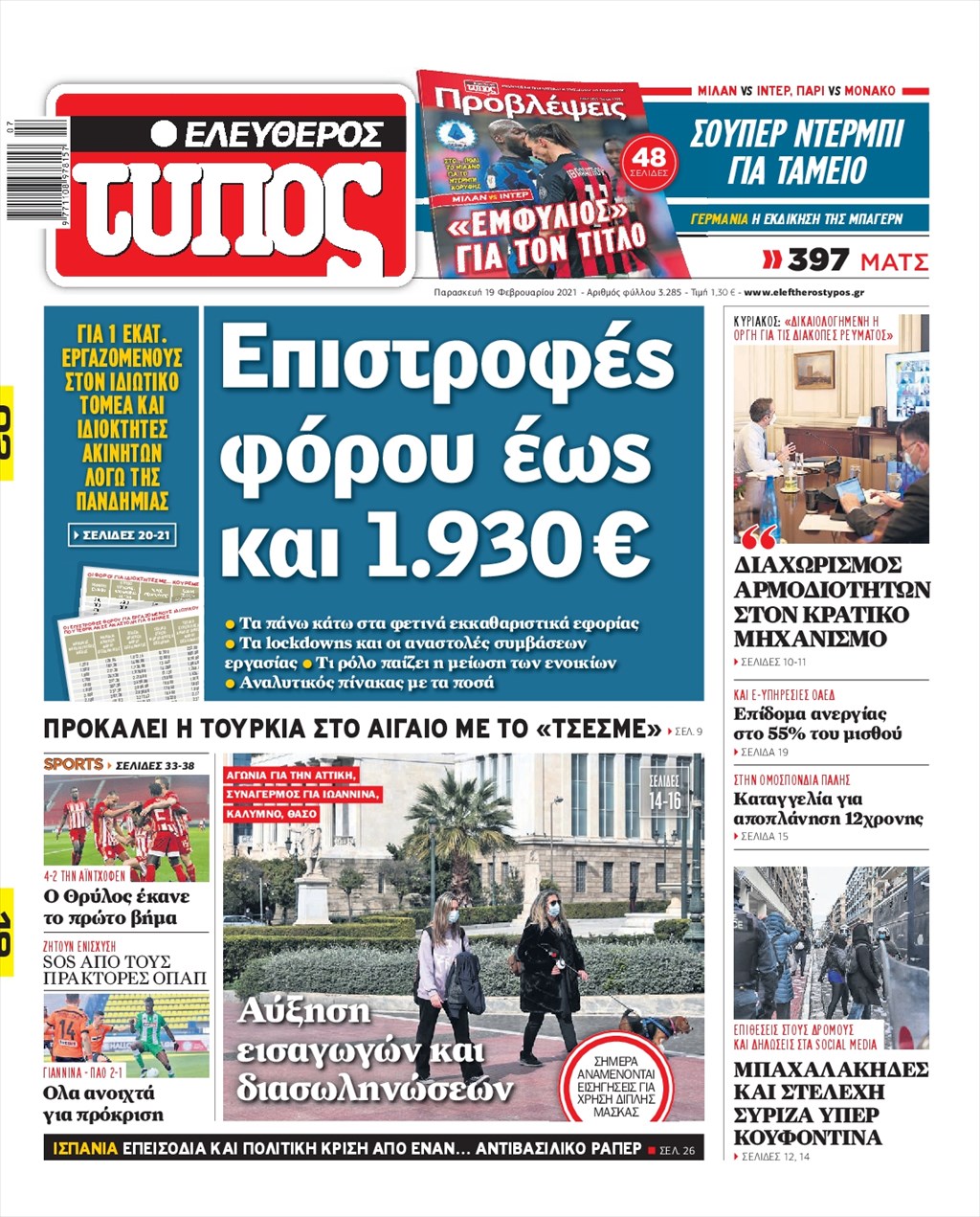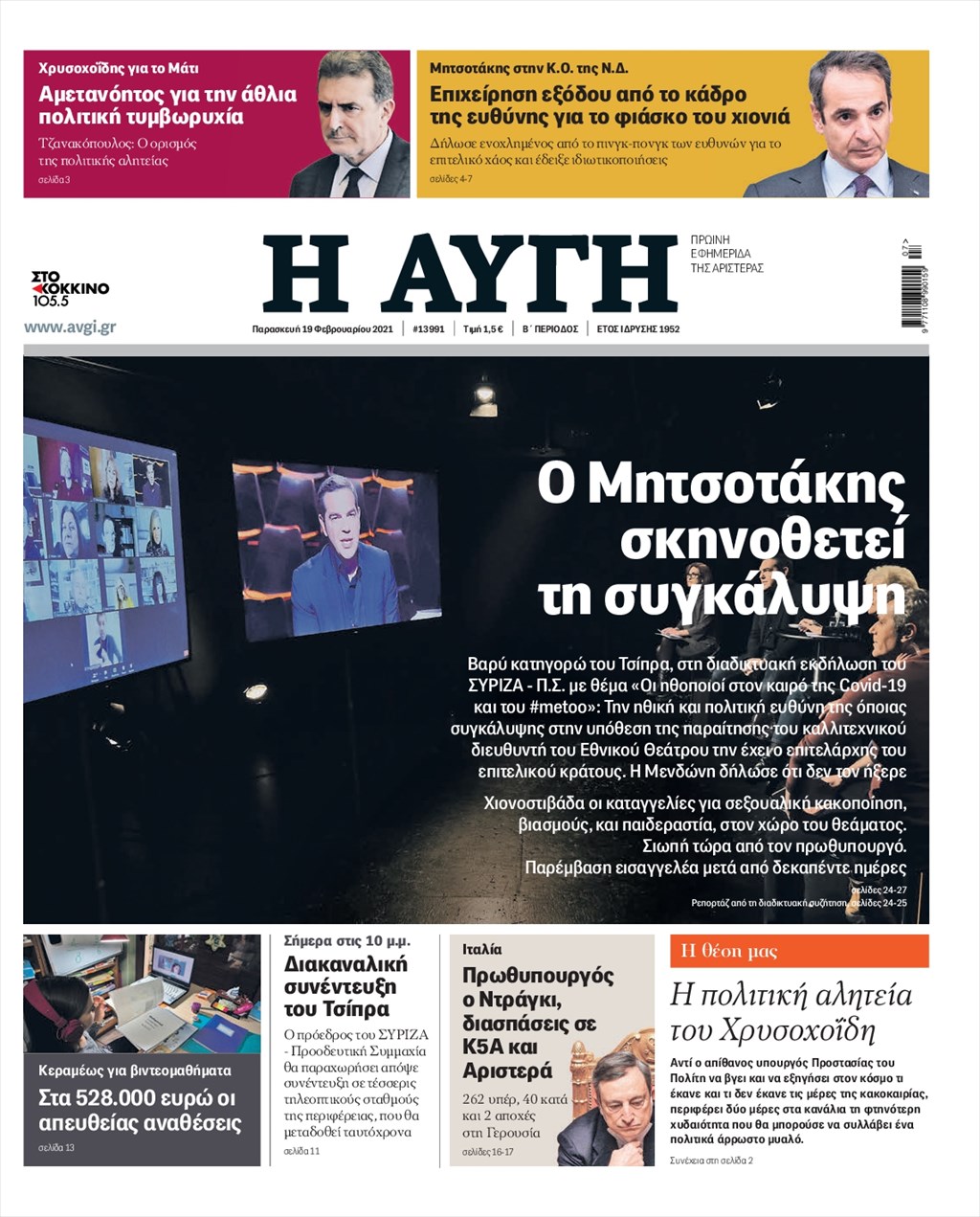 Τα πρωτοσέλιδα των εφημερίδων 19 Φεβρουαρίου