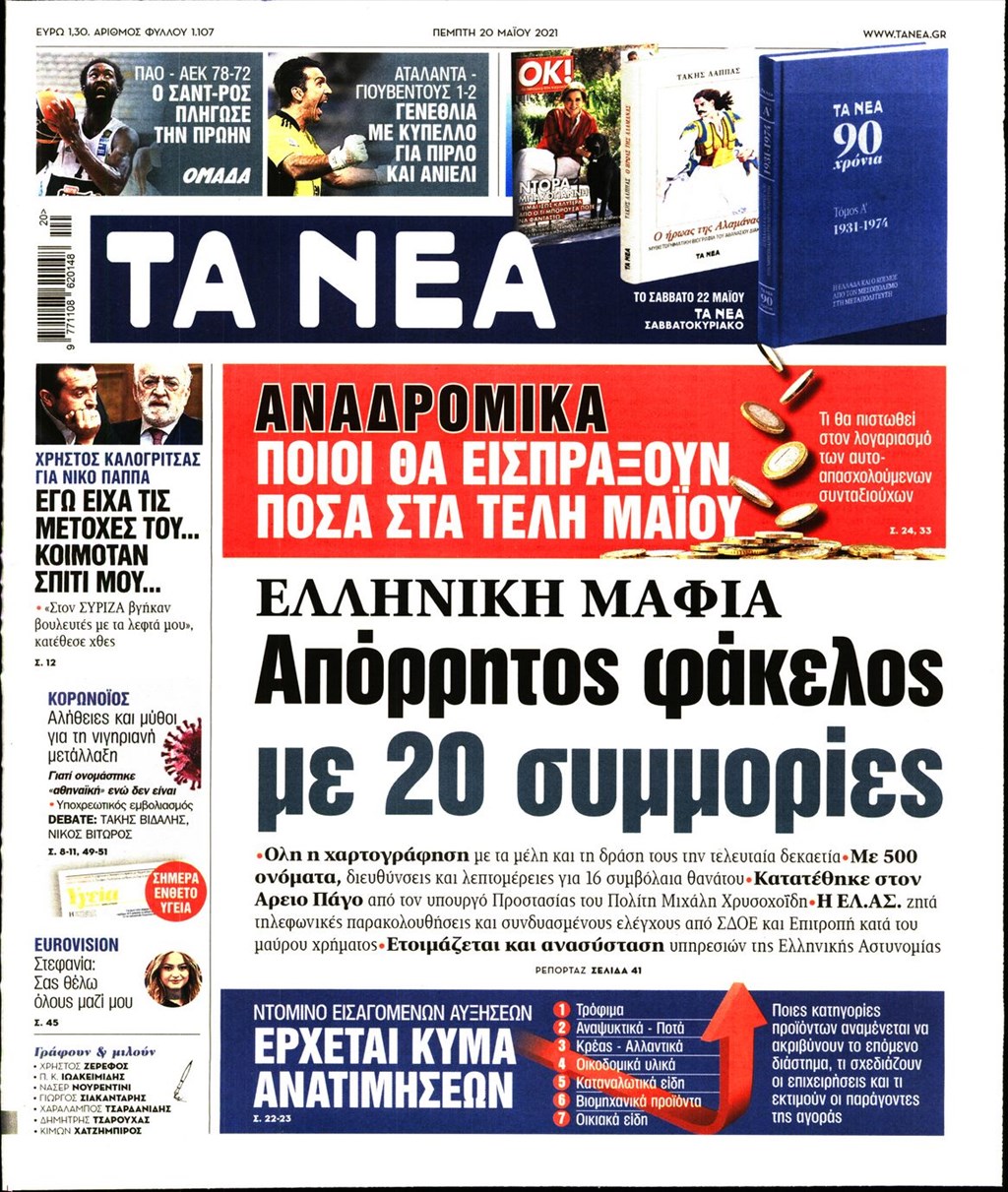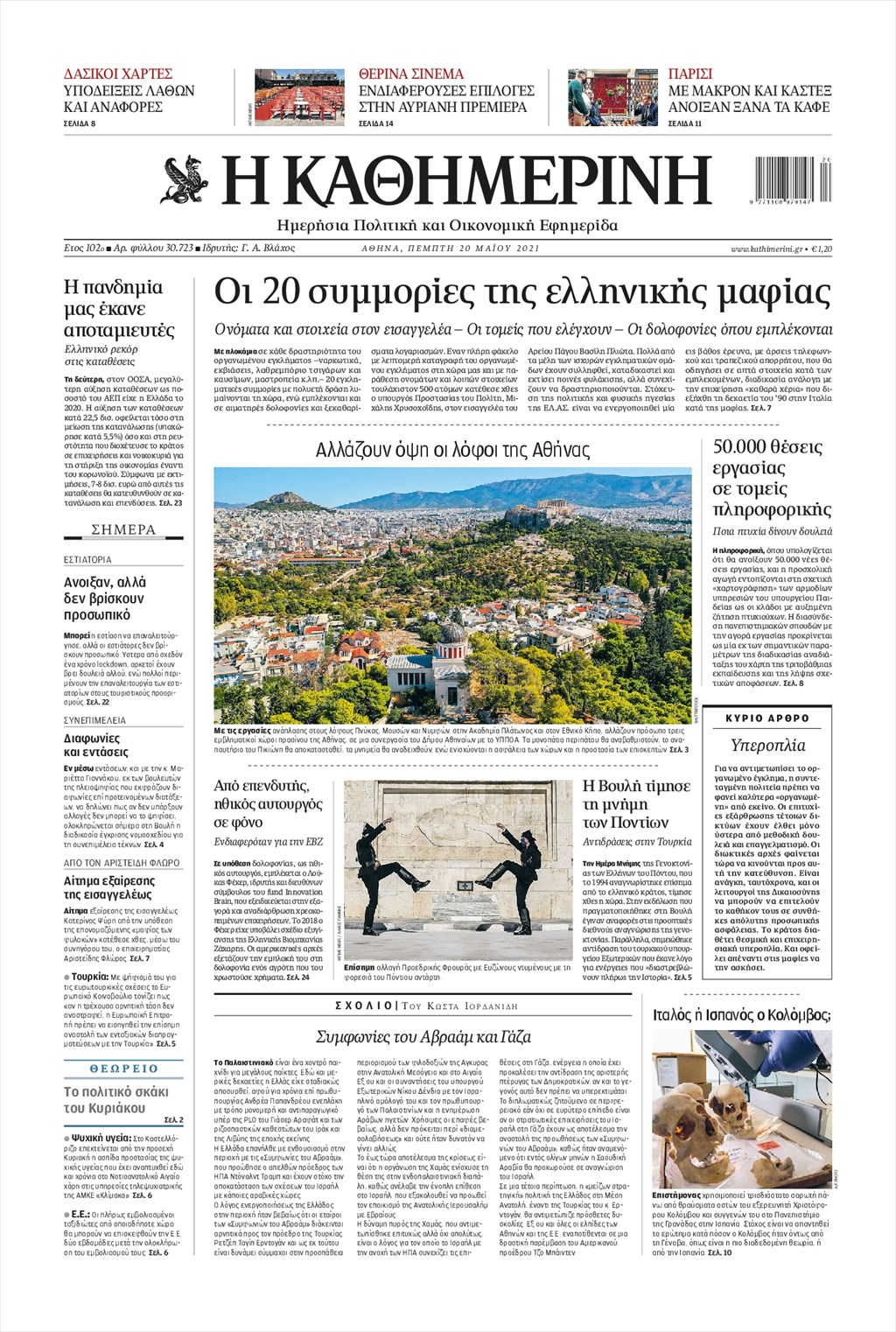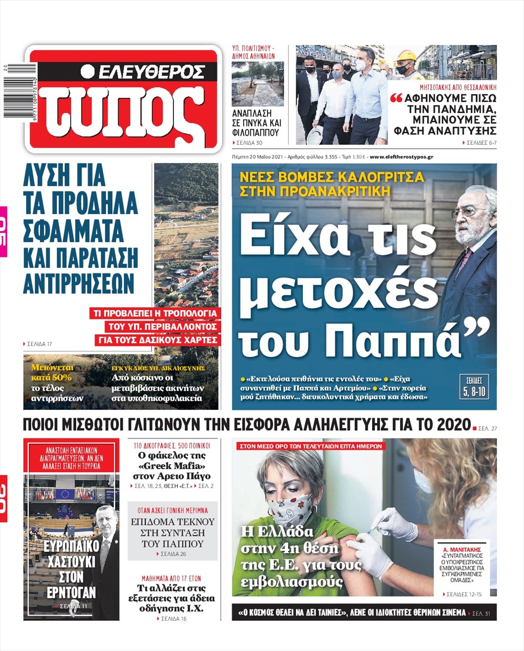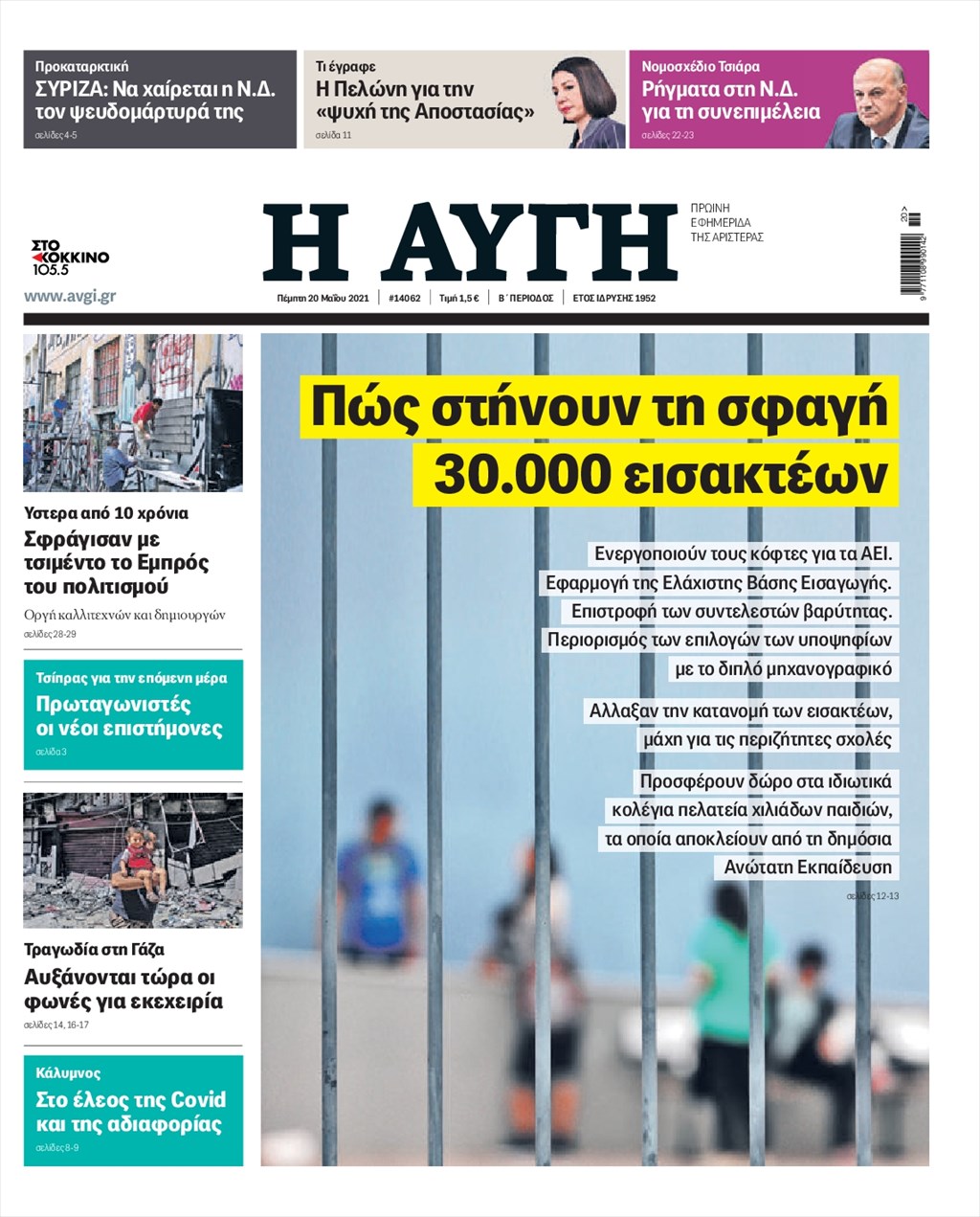 Τα πρωτοσέλιδα των εφημερίδων 20 Μαΐου