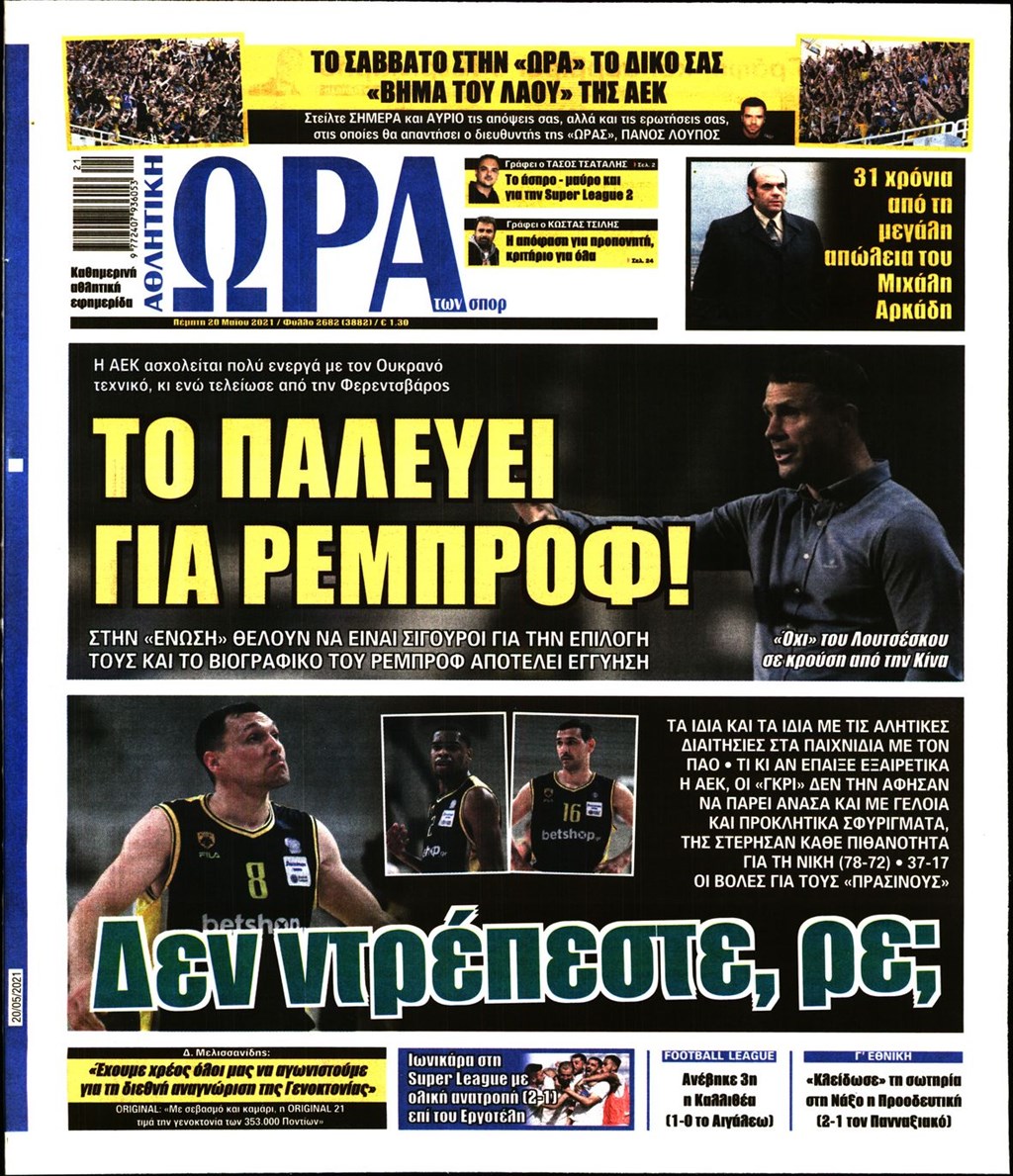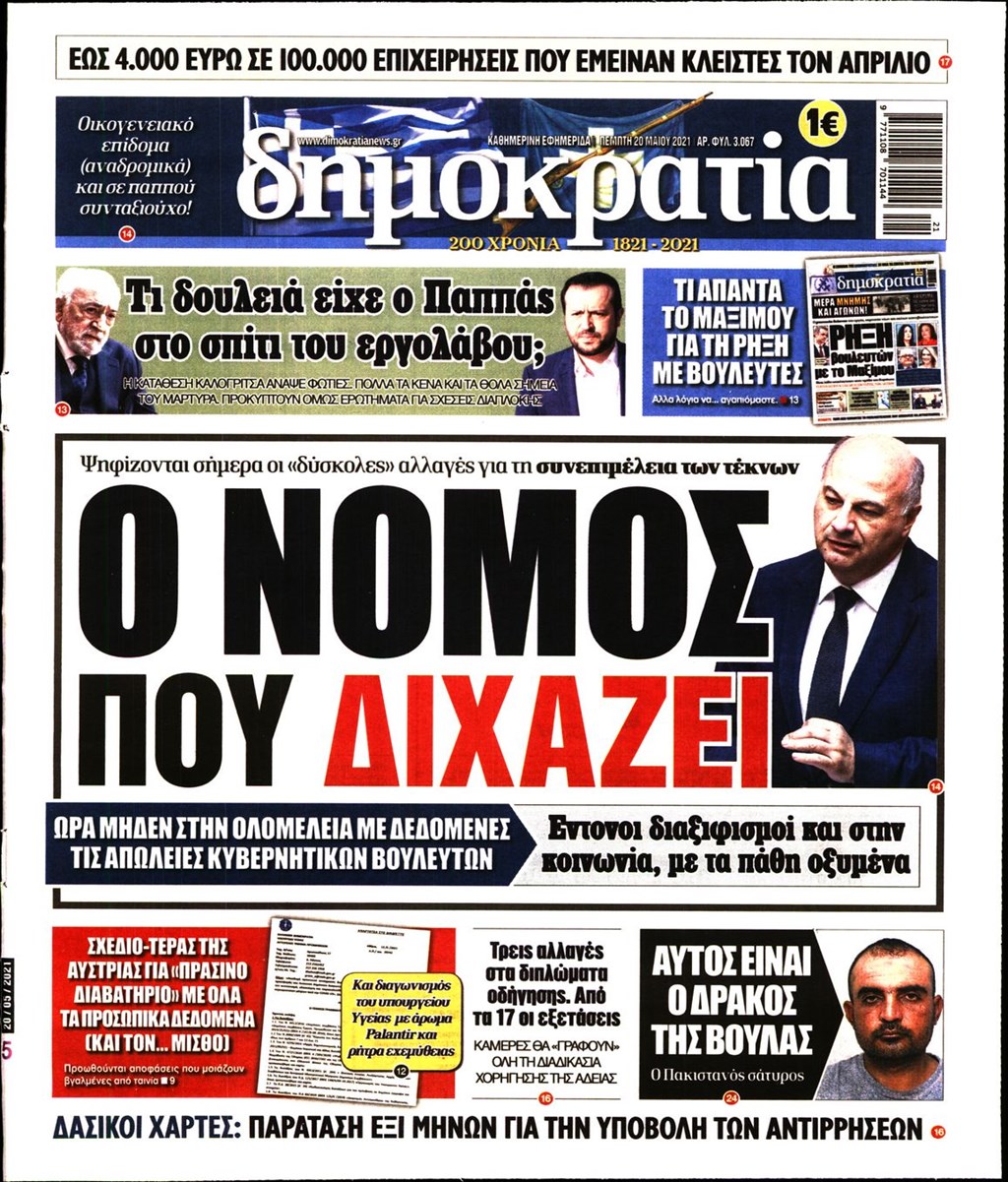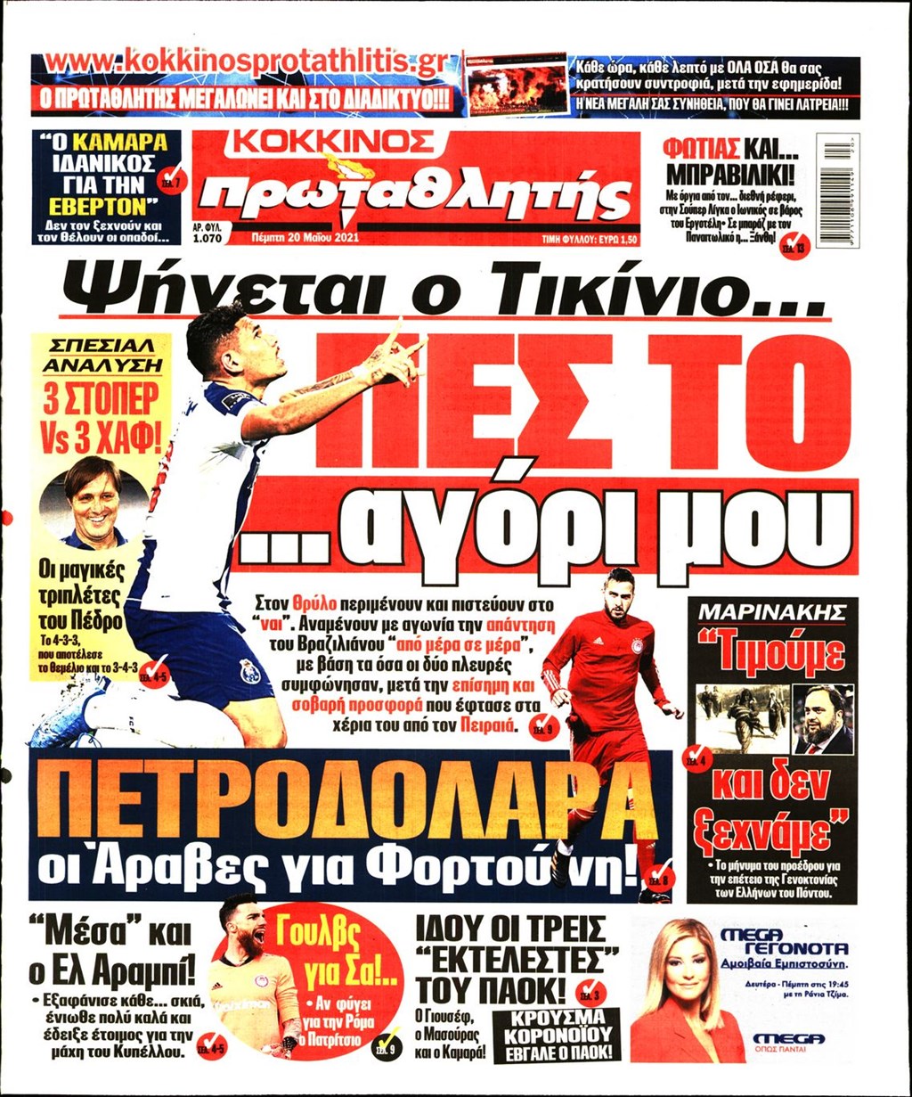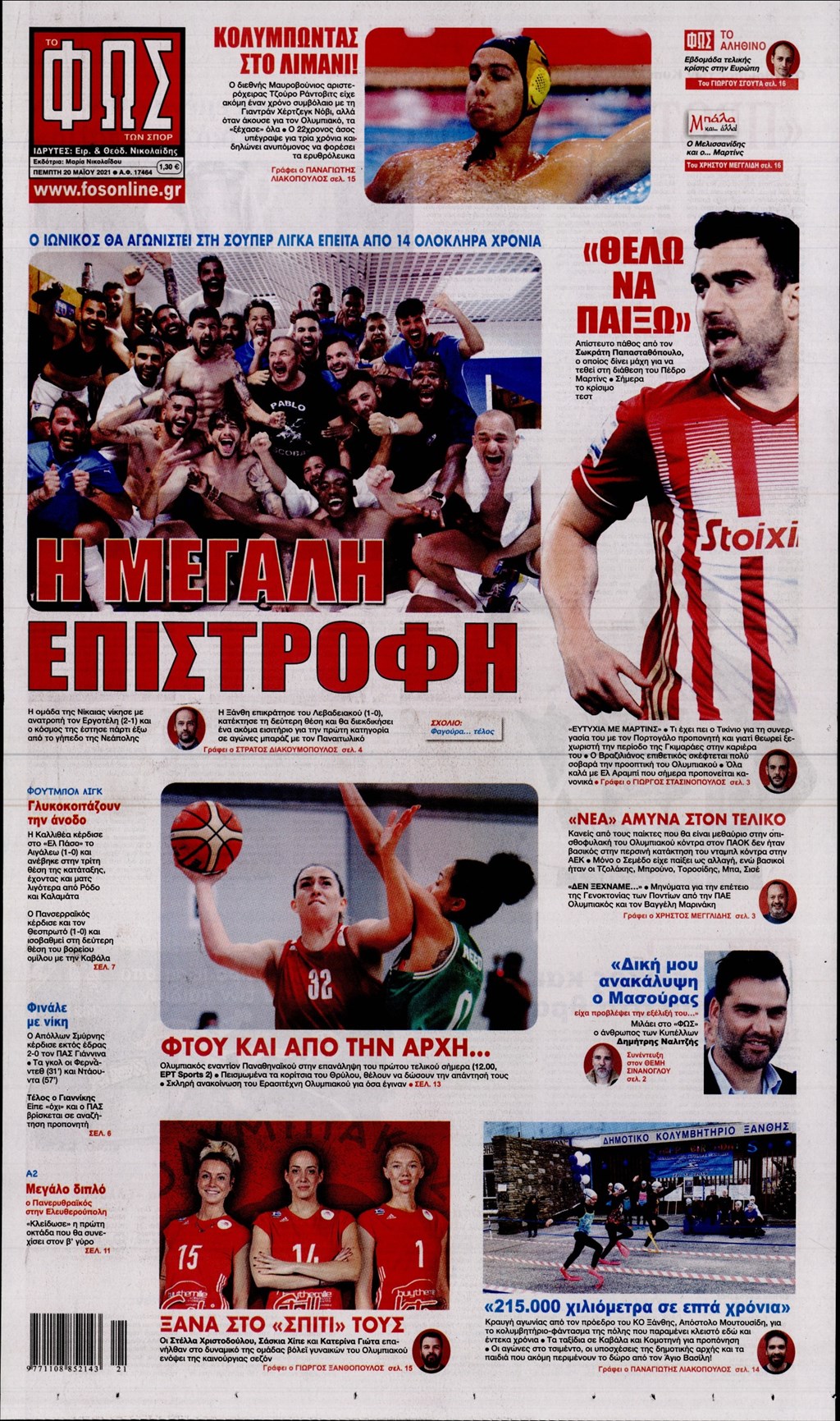 Τα πρωτοσέλιδα των εφημερίδων 20 Μαΐου