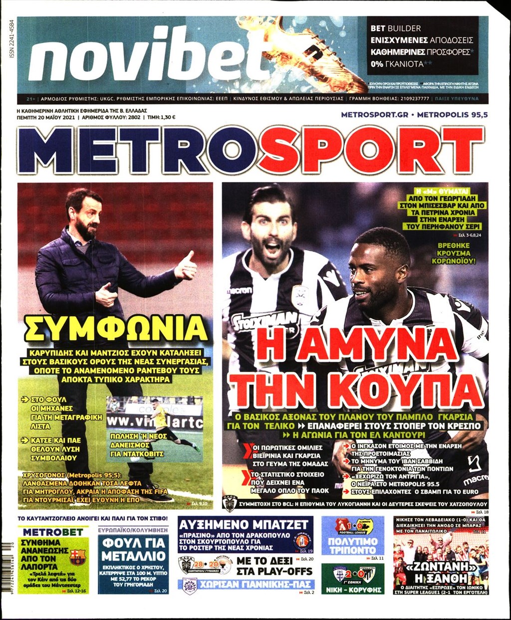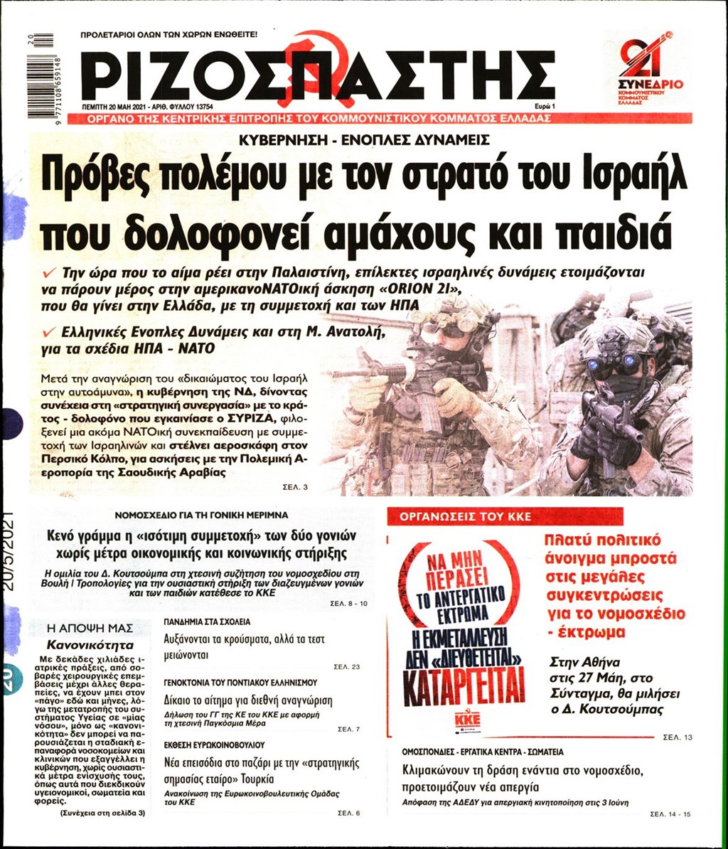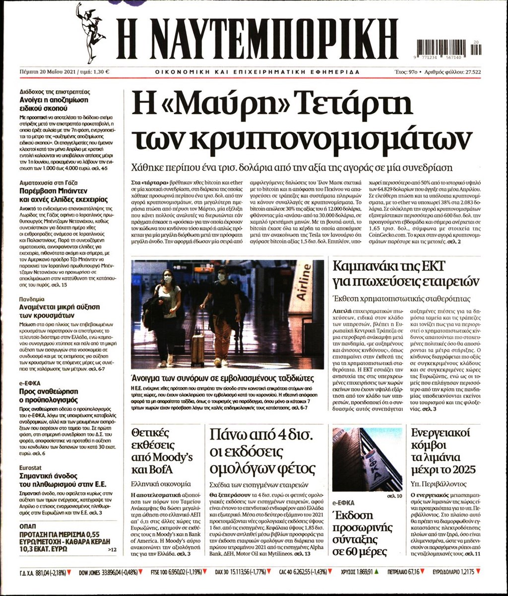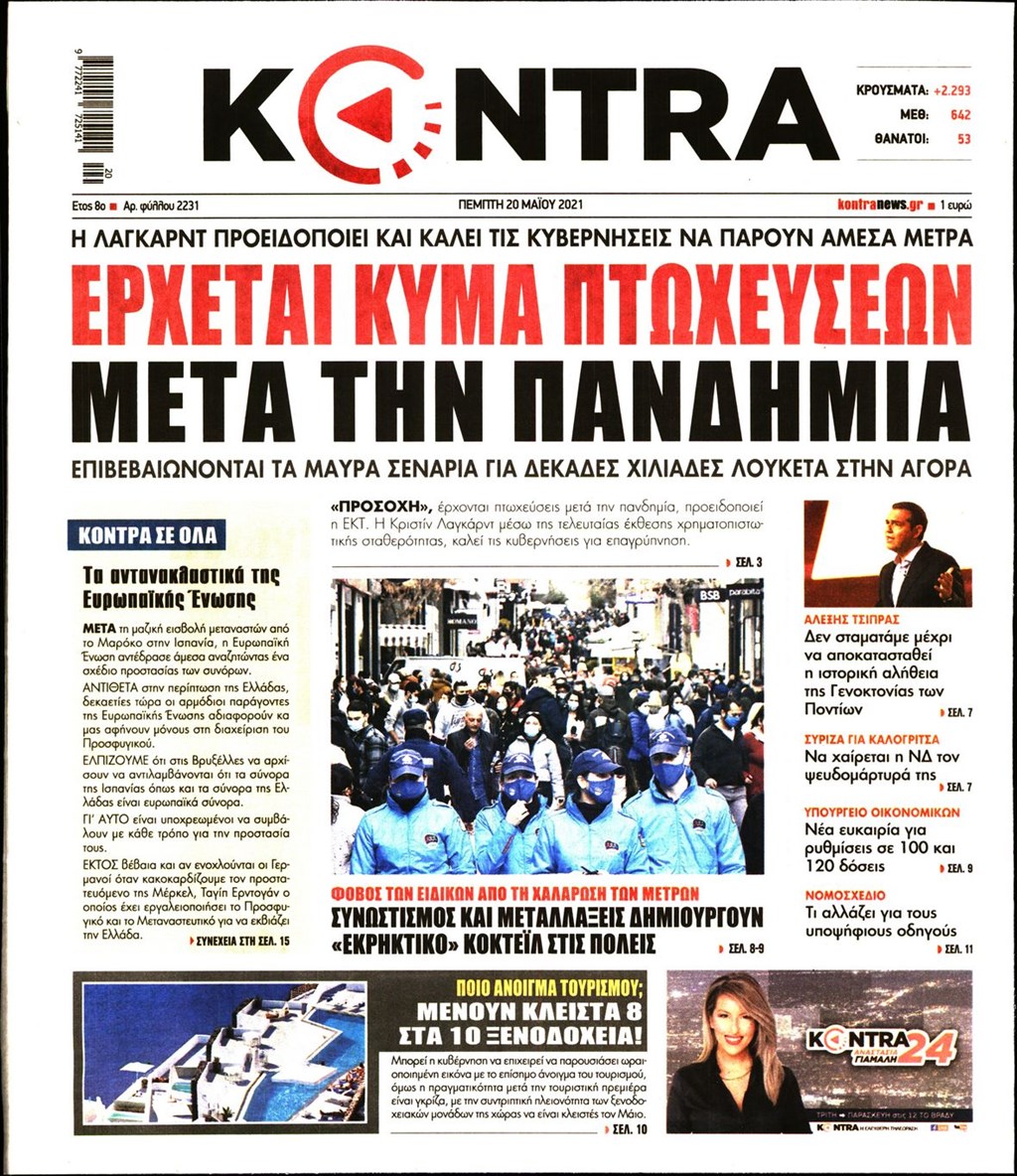 Τα πρωτοσέλιδα των εφημερίδων 20 Μαΐου