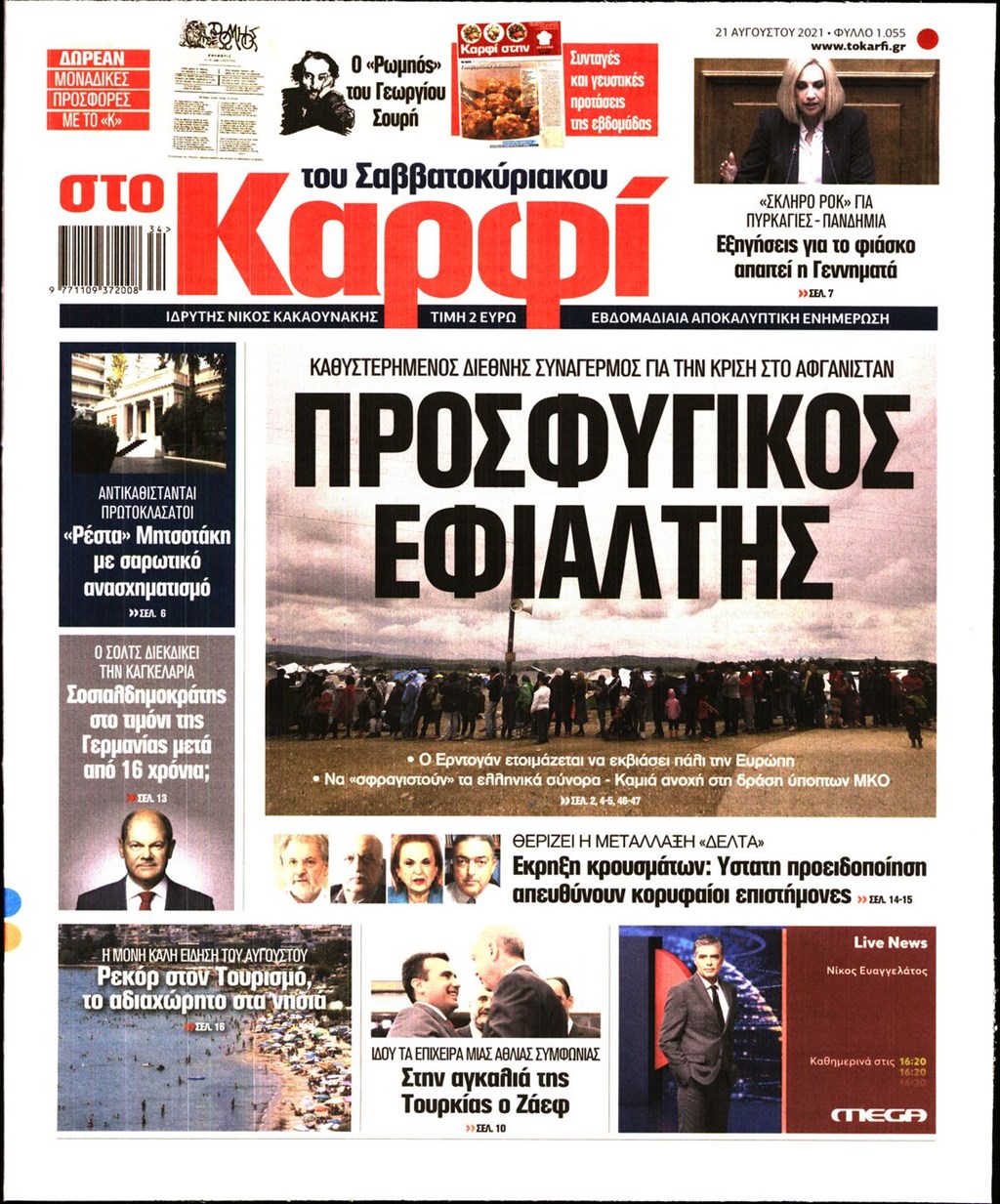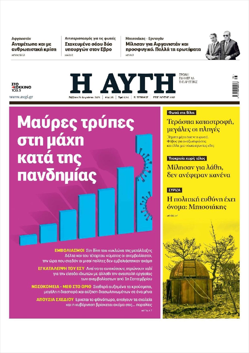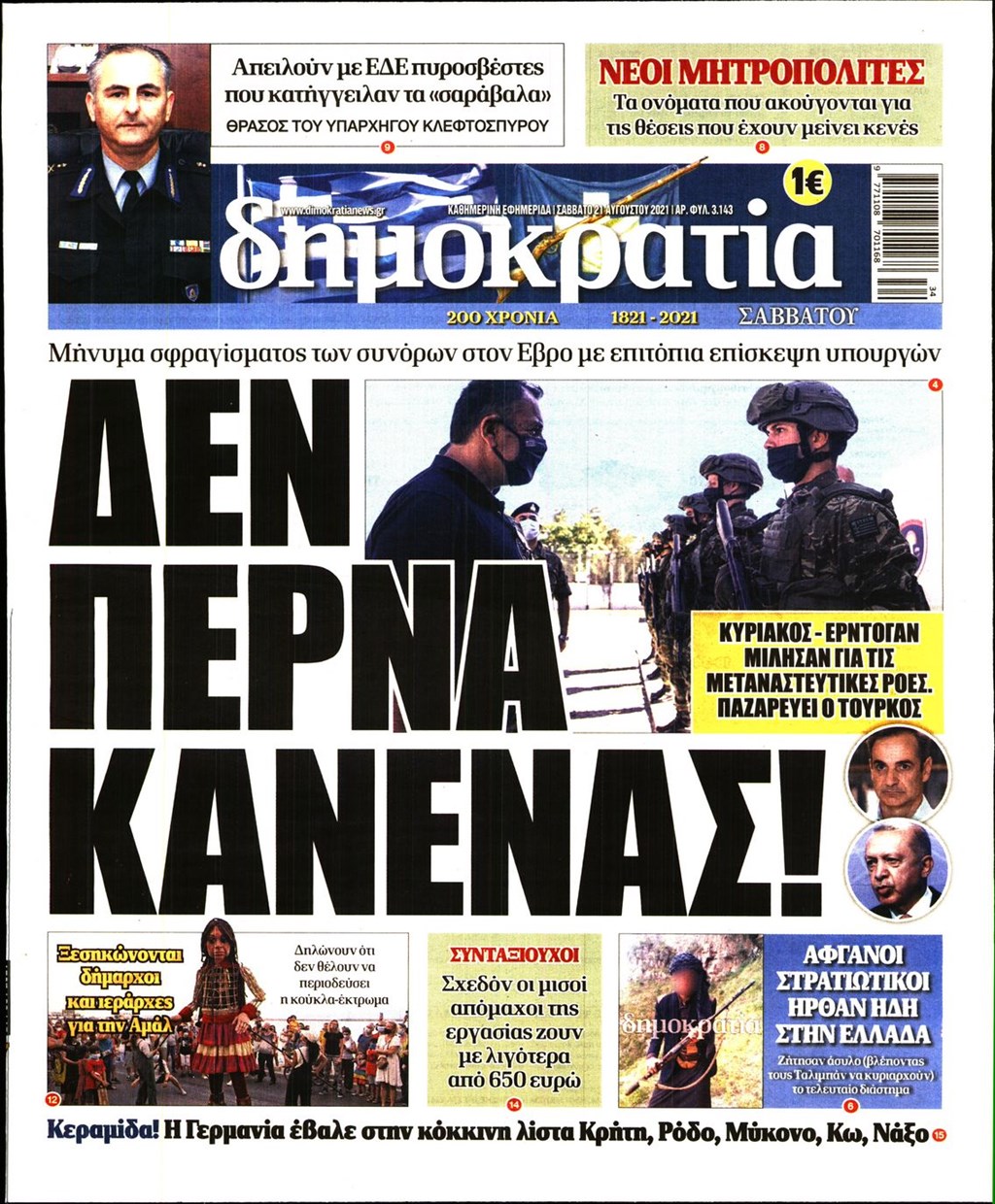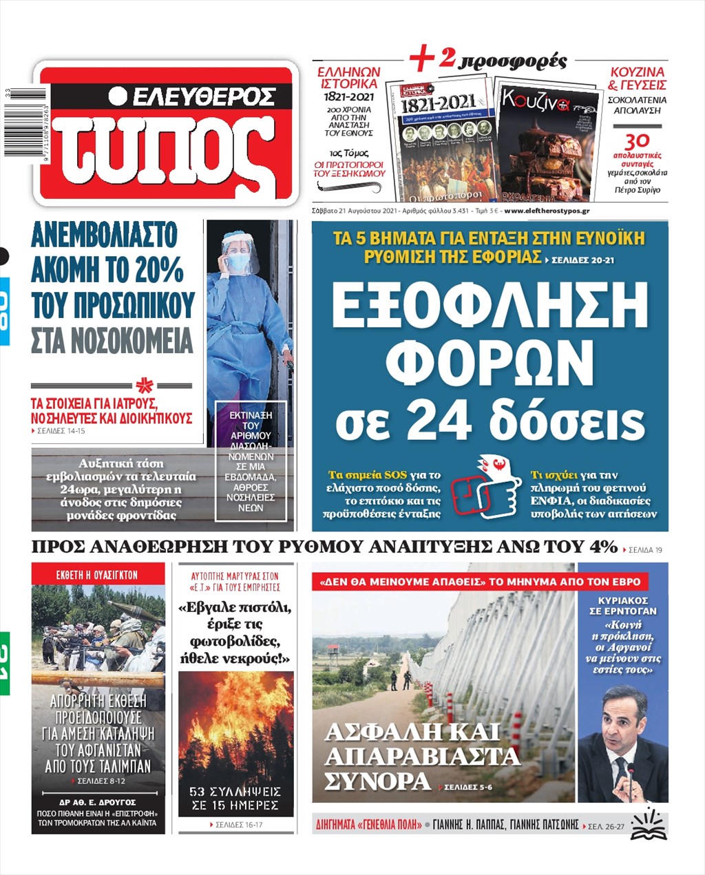 Τα πρωτοσέλιδα των εφημερίδων 21 Αυγούστου