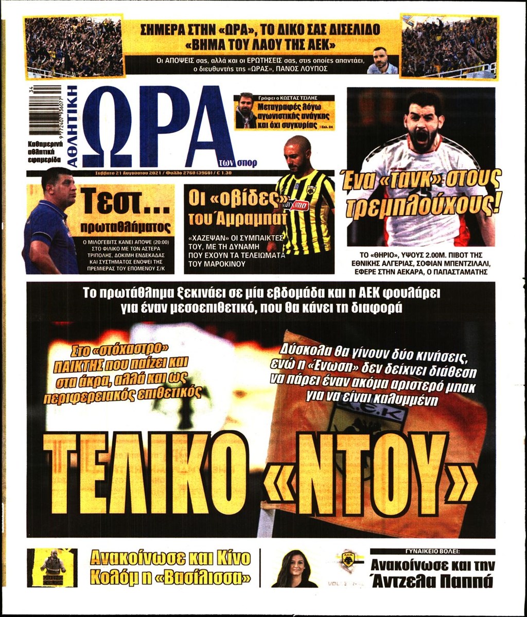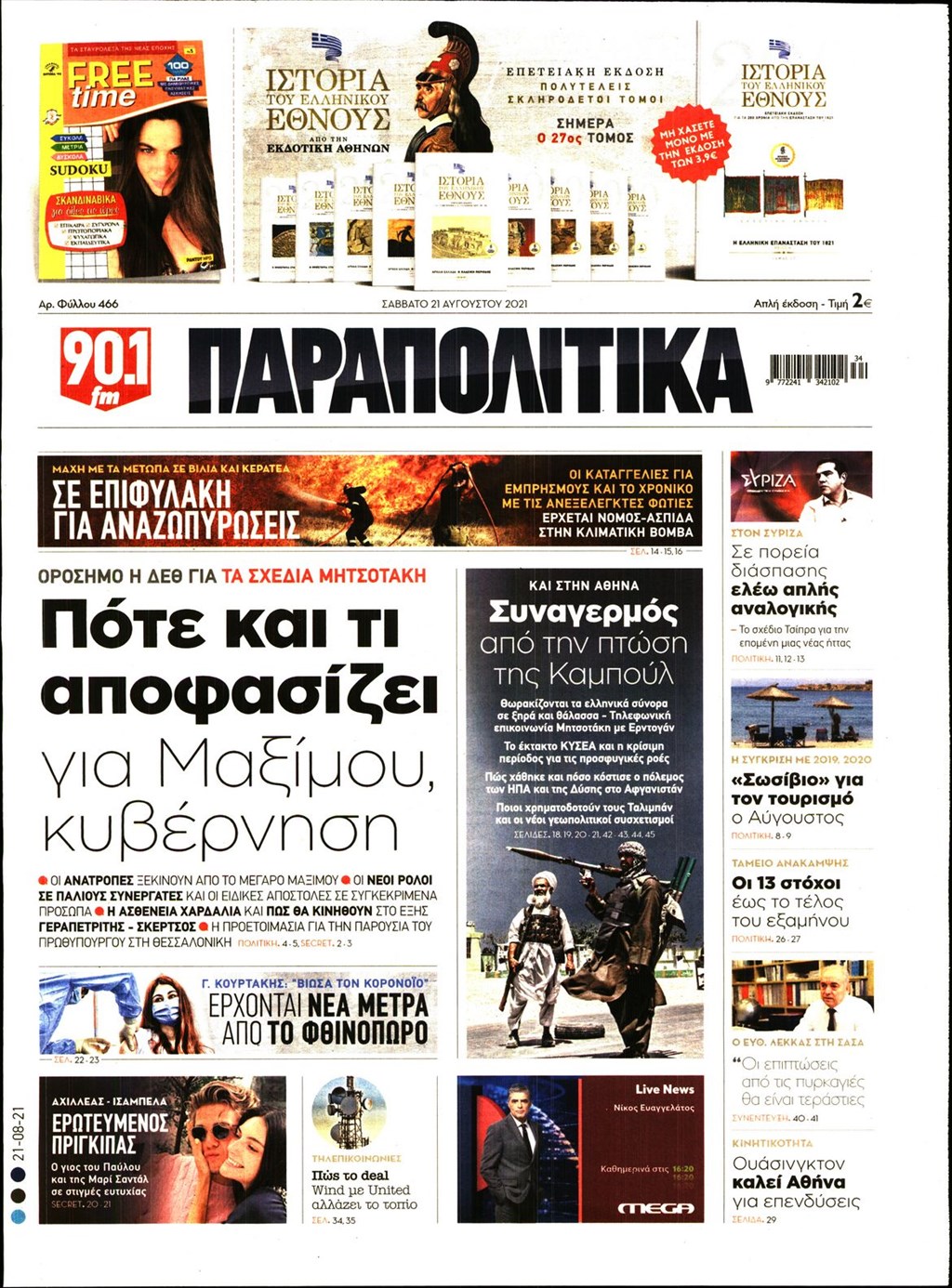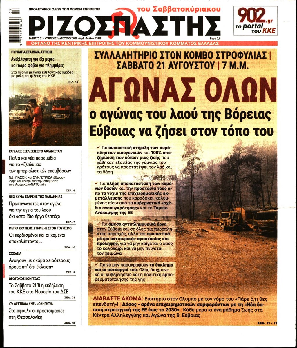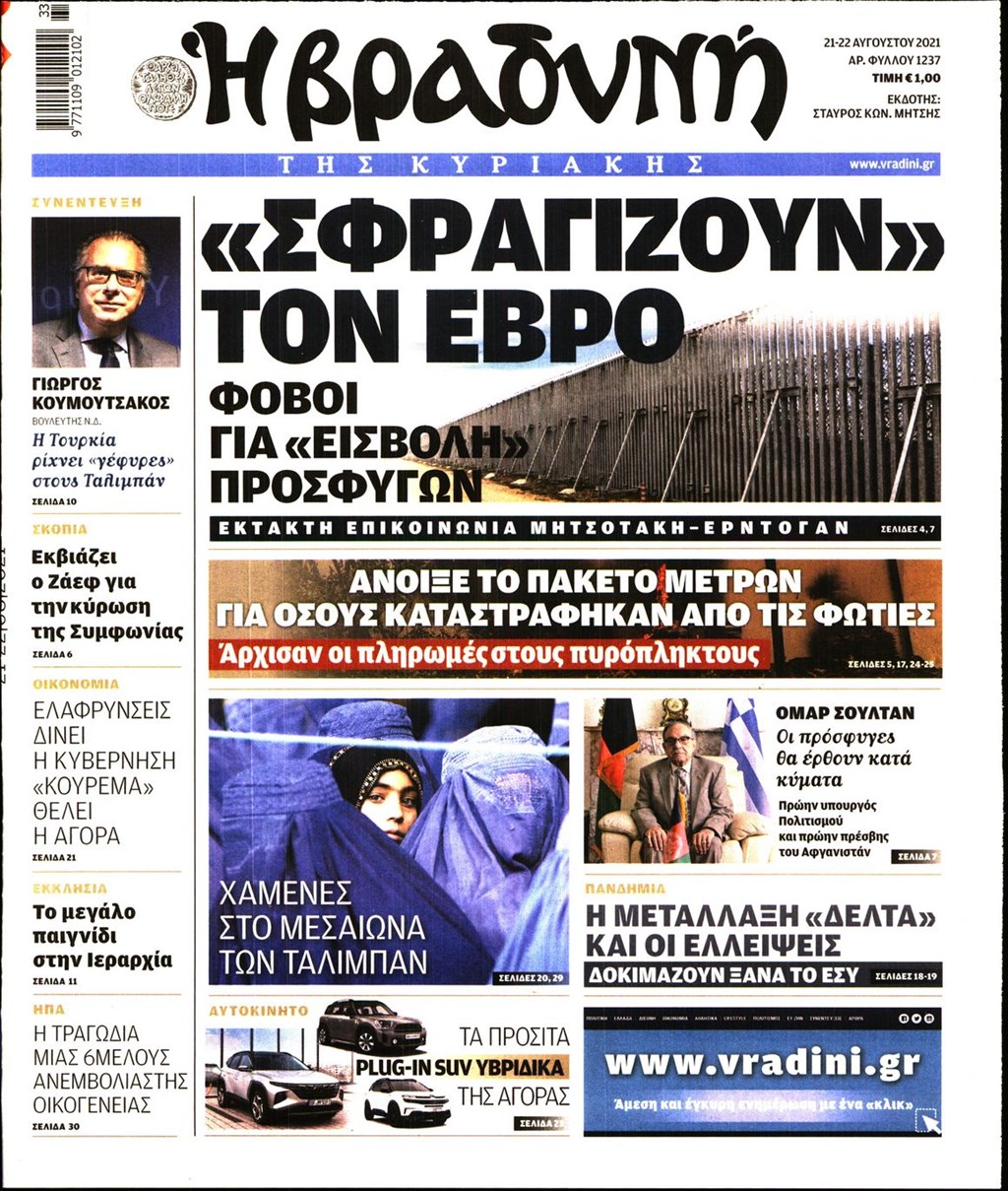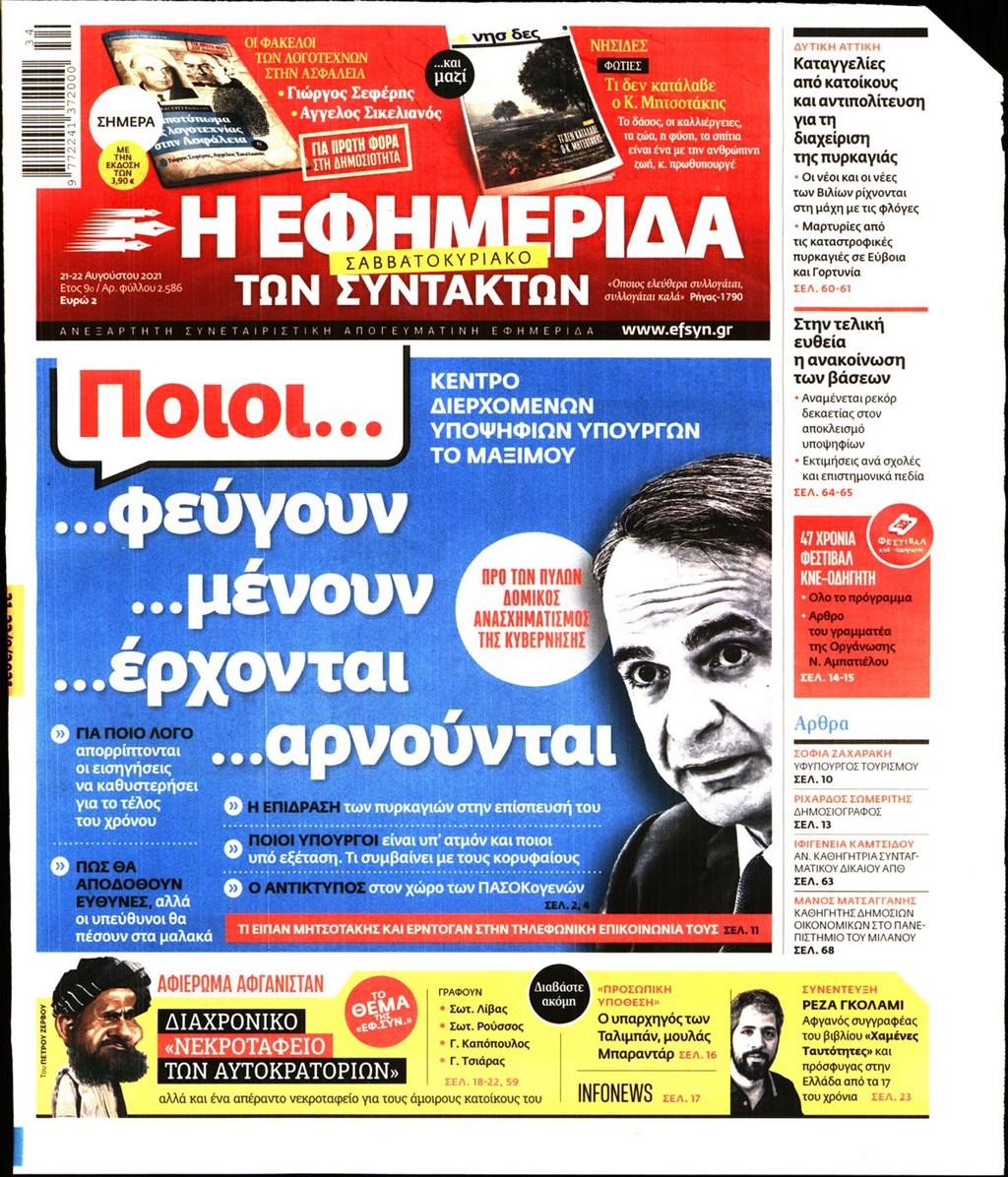 Τα πρωτοσέλιδα των εφημερίδων 21 Αυγούστου