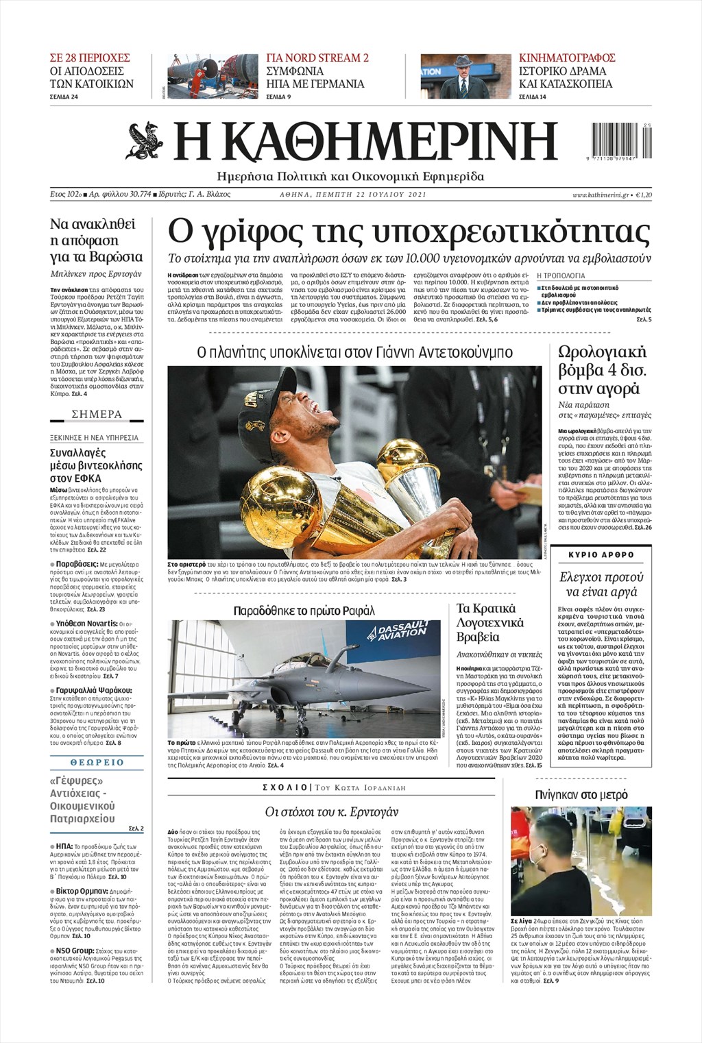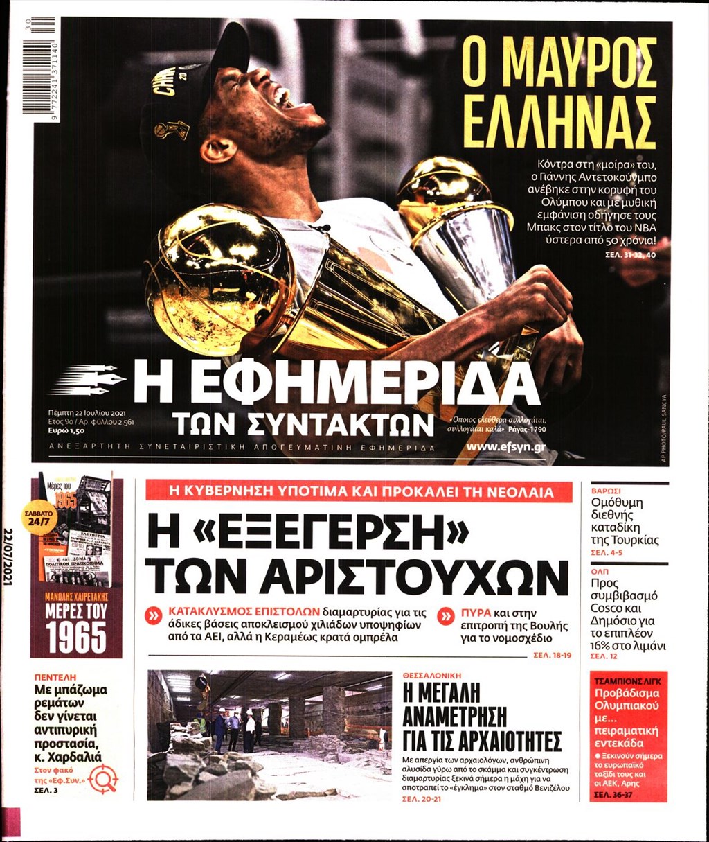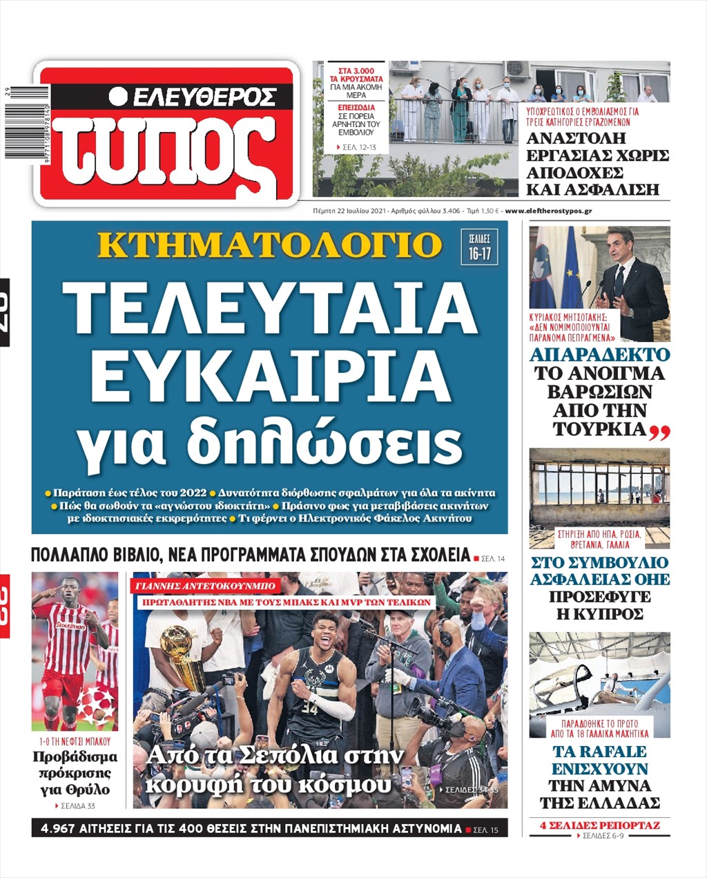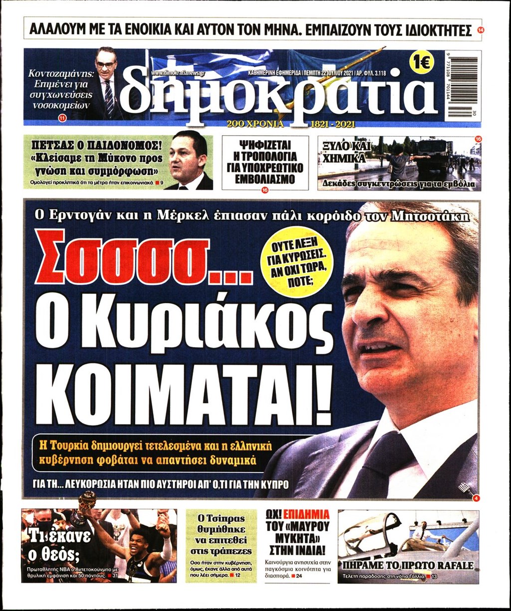 Τα πρωτοσέλιδα των εφημερίδων 22 Ιουλίου