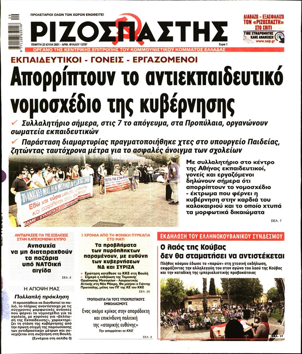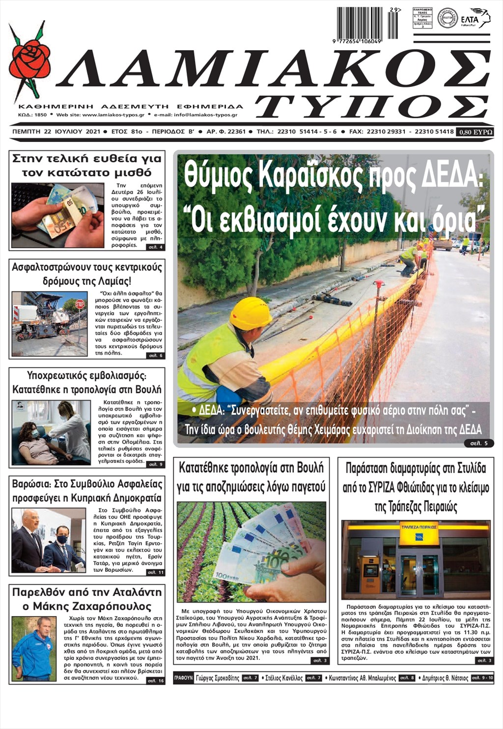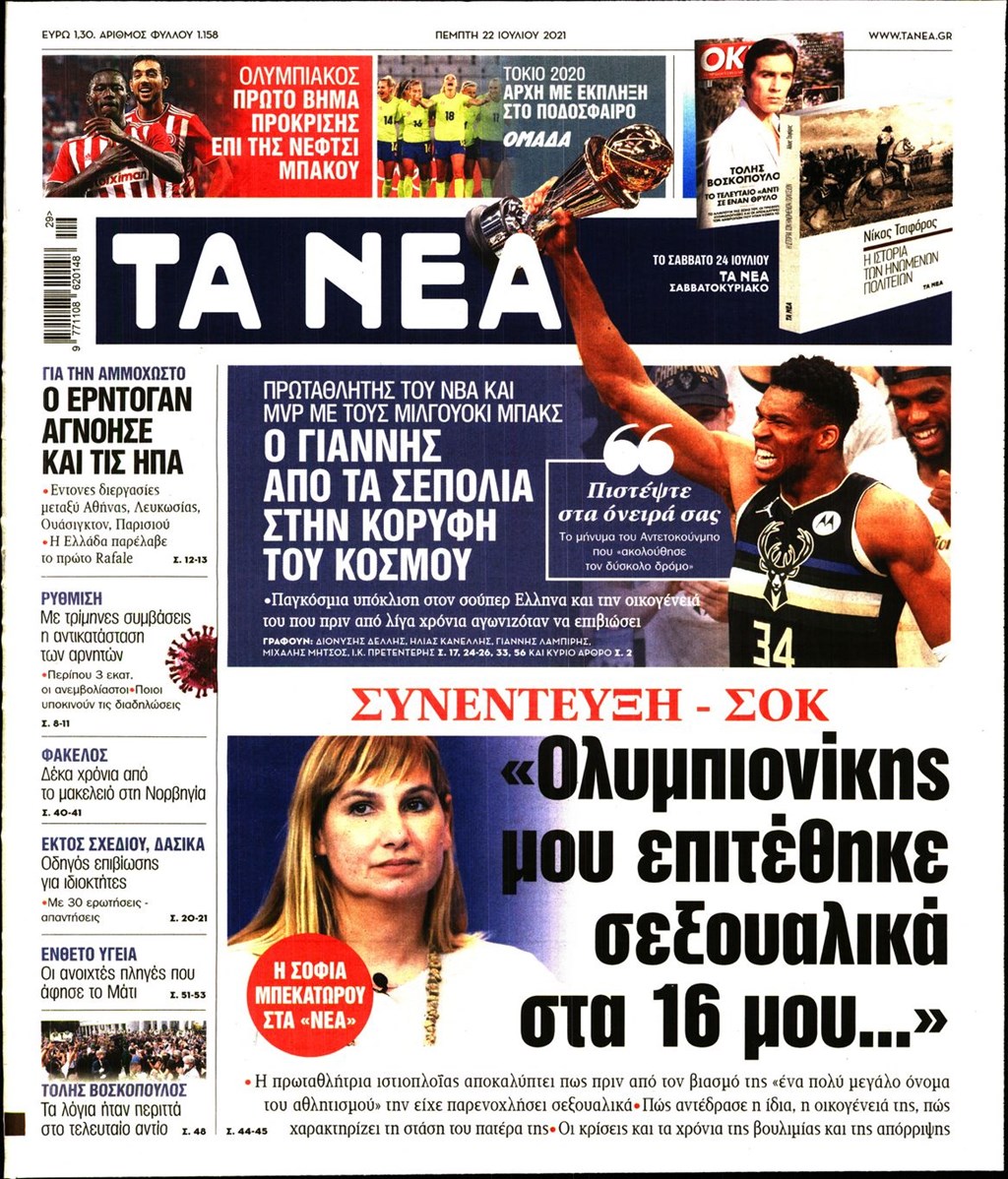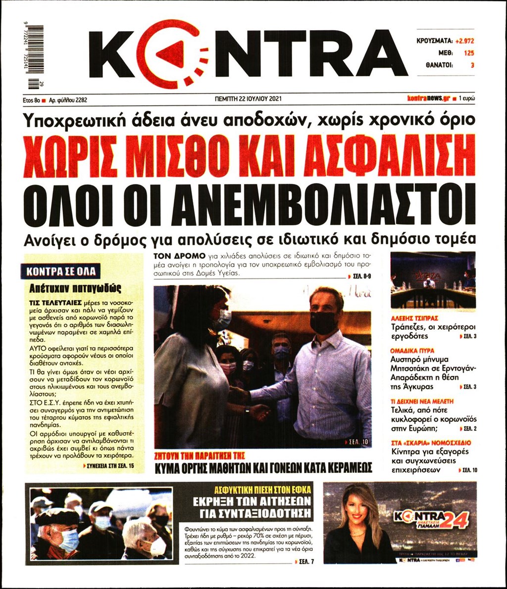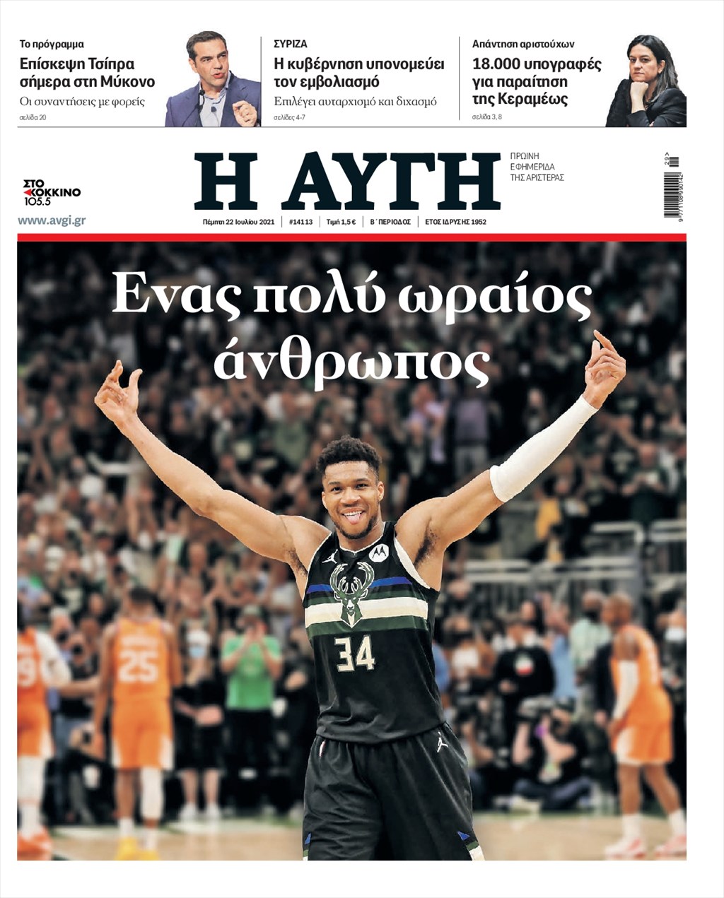 Τα πρωτοσέλιδα των εφημερίδων 22 Ιουλίου