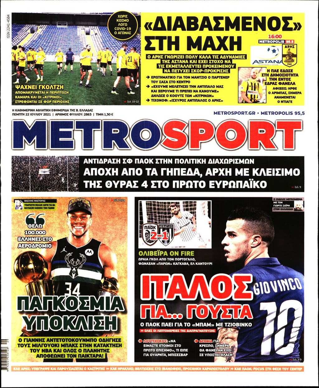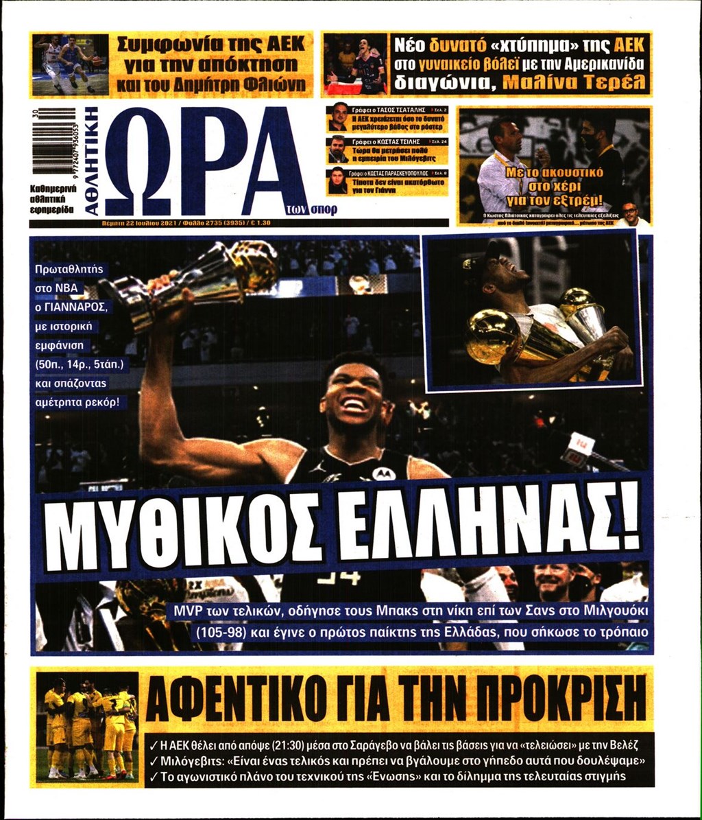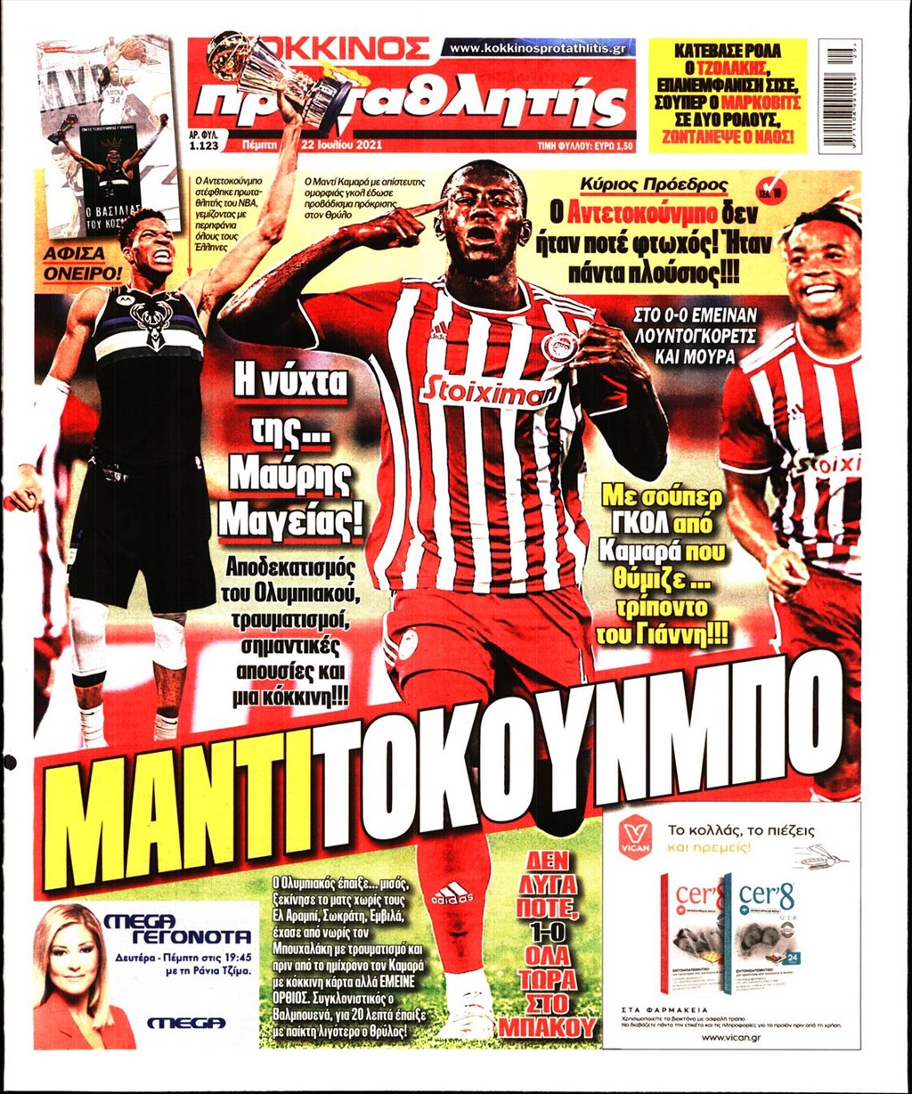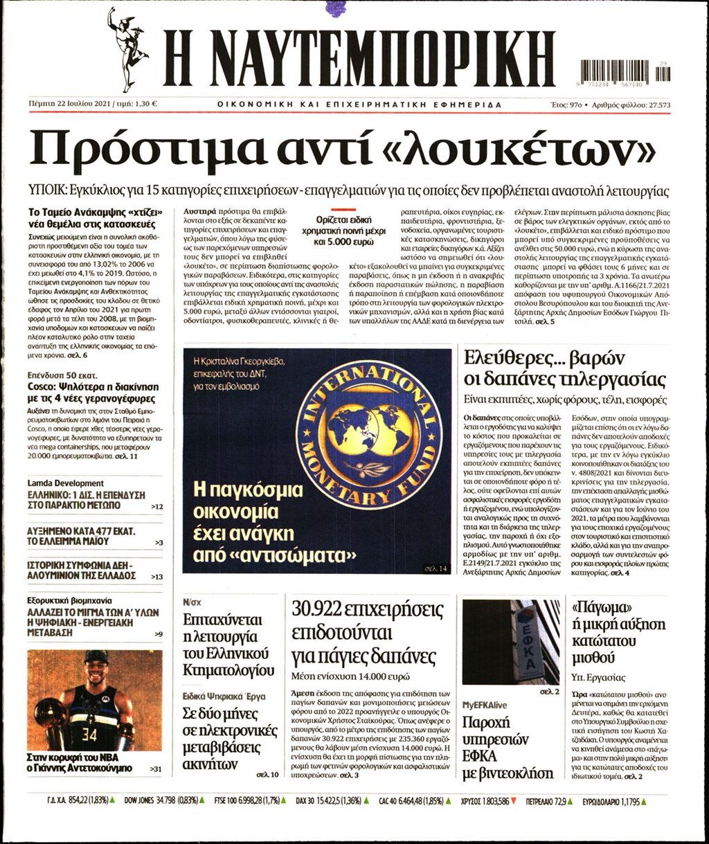 Τα πρωτοσέλιδα των εφημερίδων 22 Ιουλίου