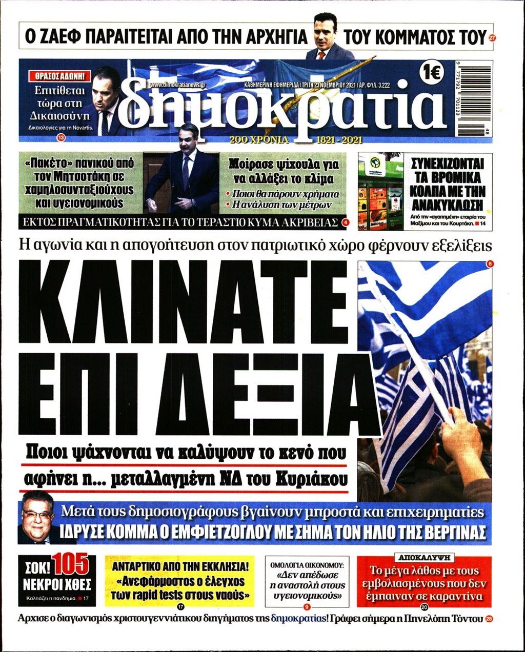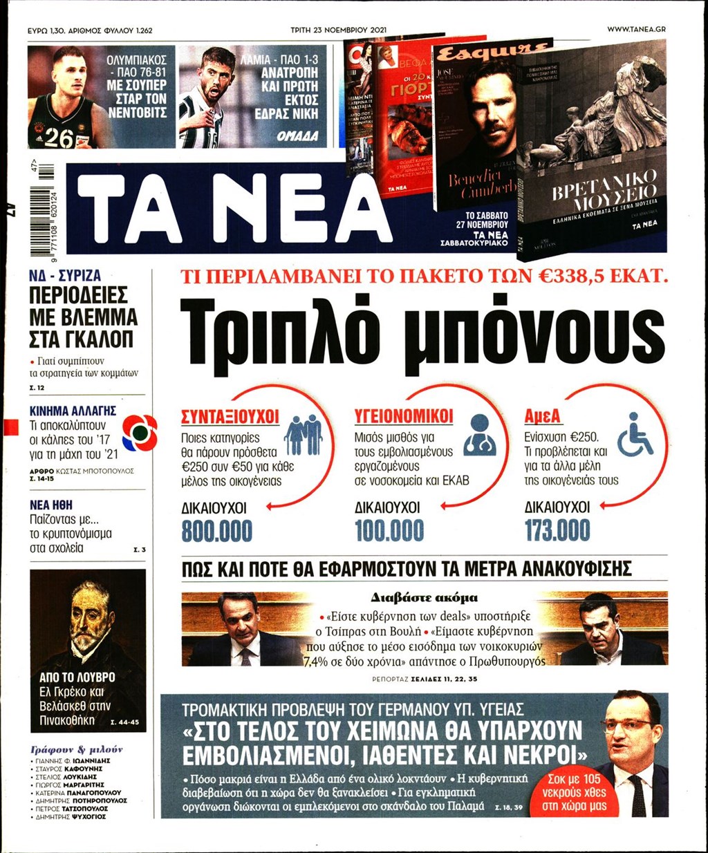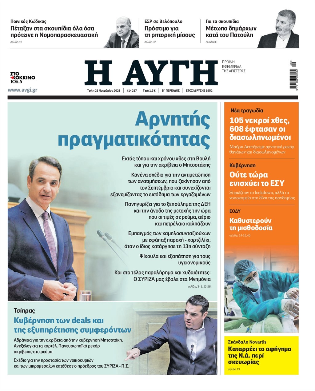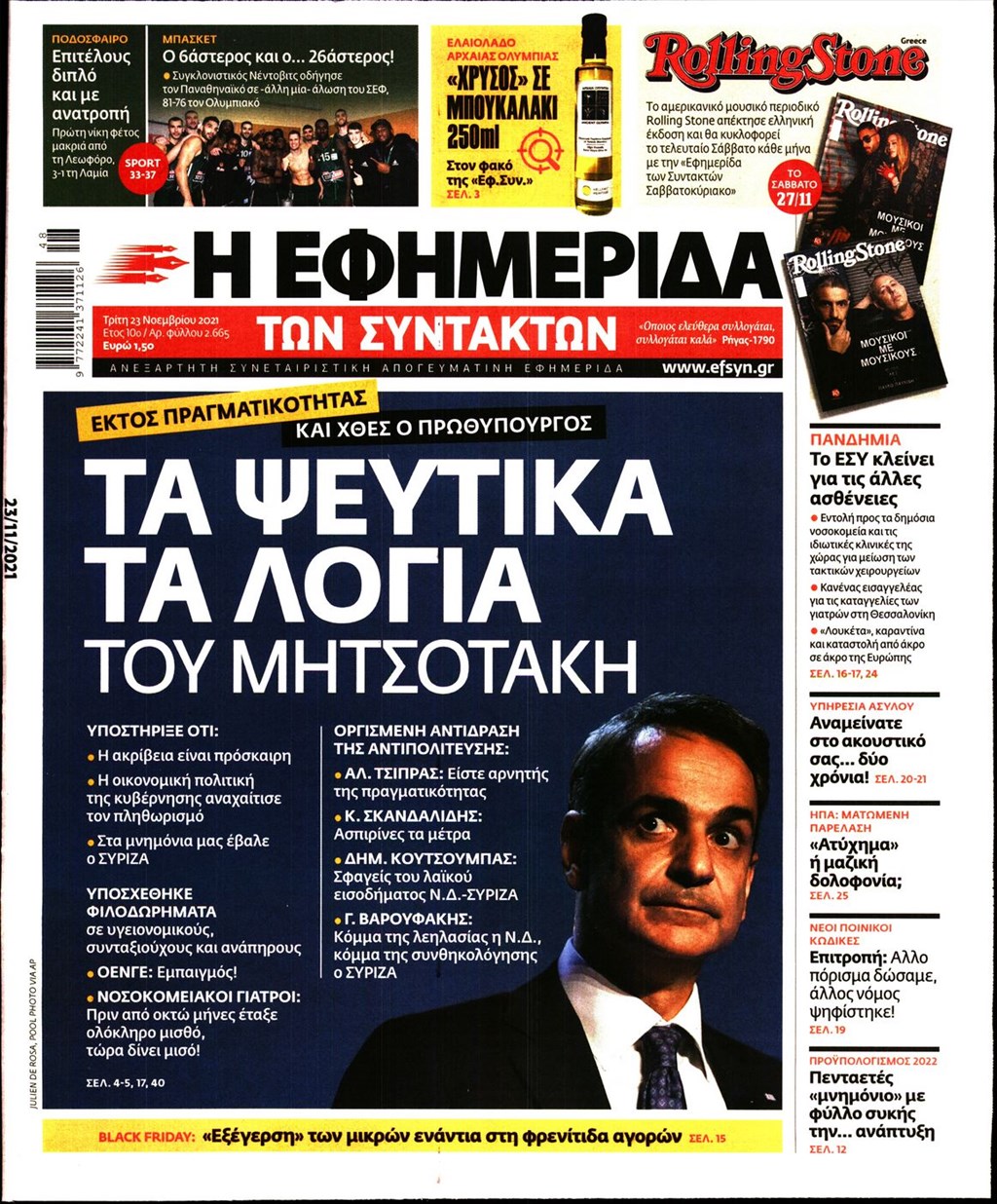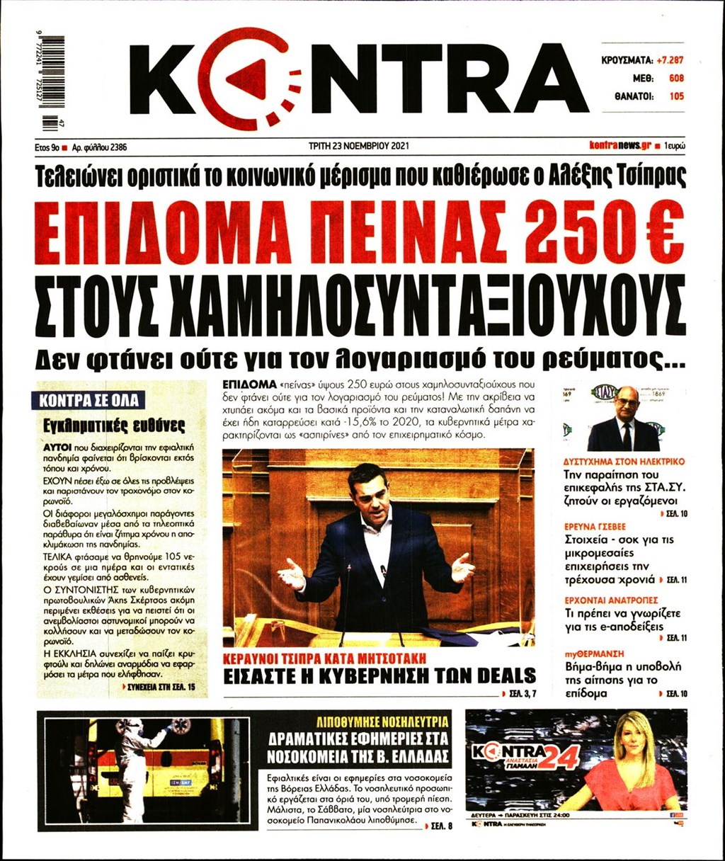 Τα πρωτοσέλιδα των εφημερίδων 23 Νοεμβρίου