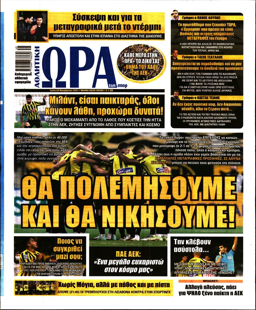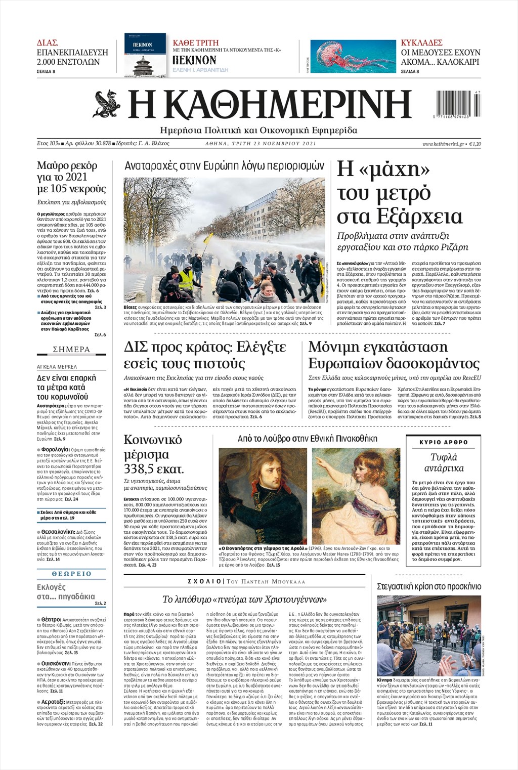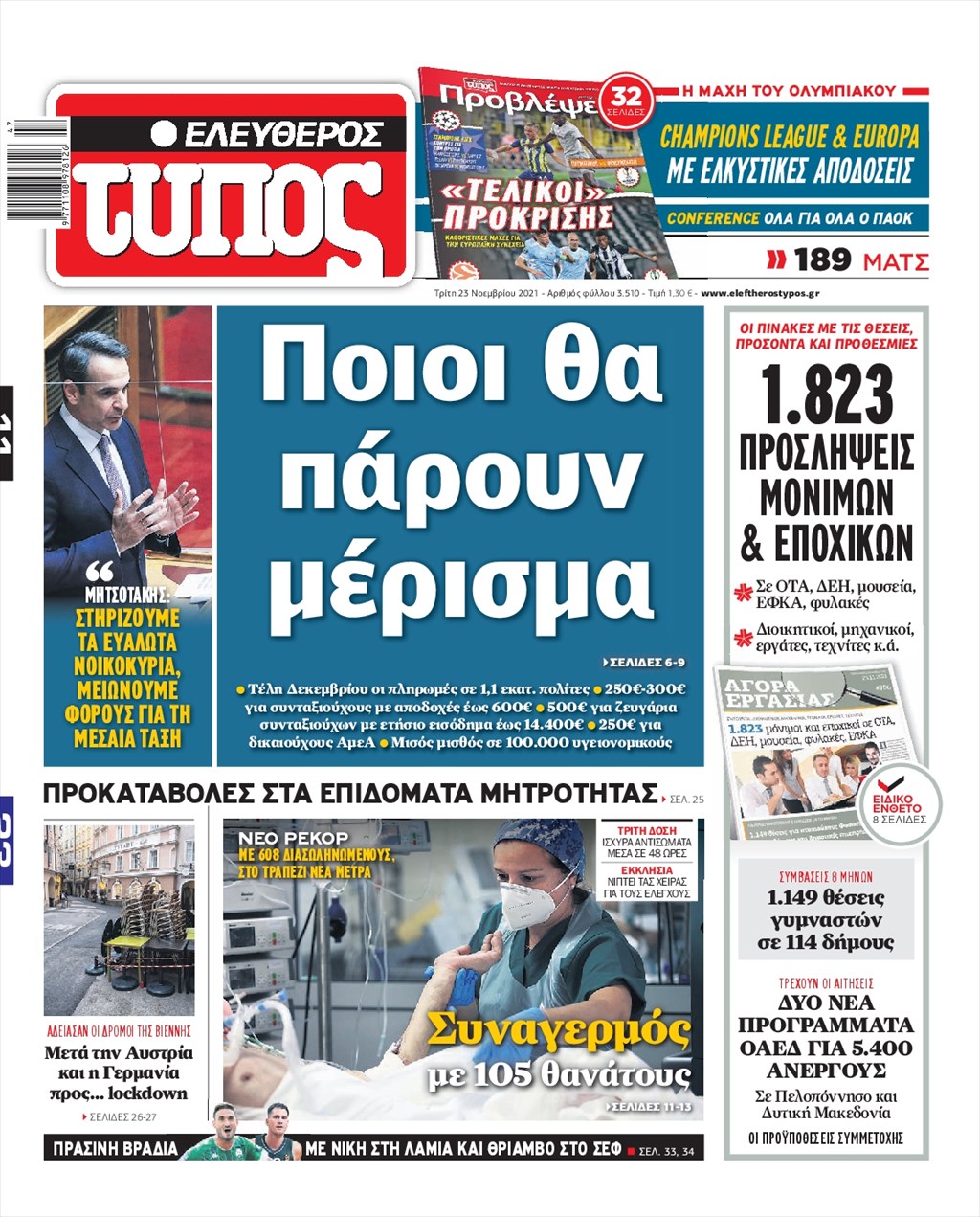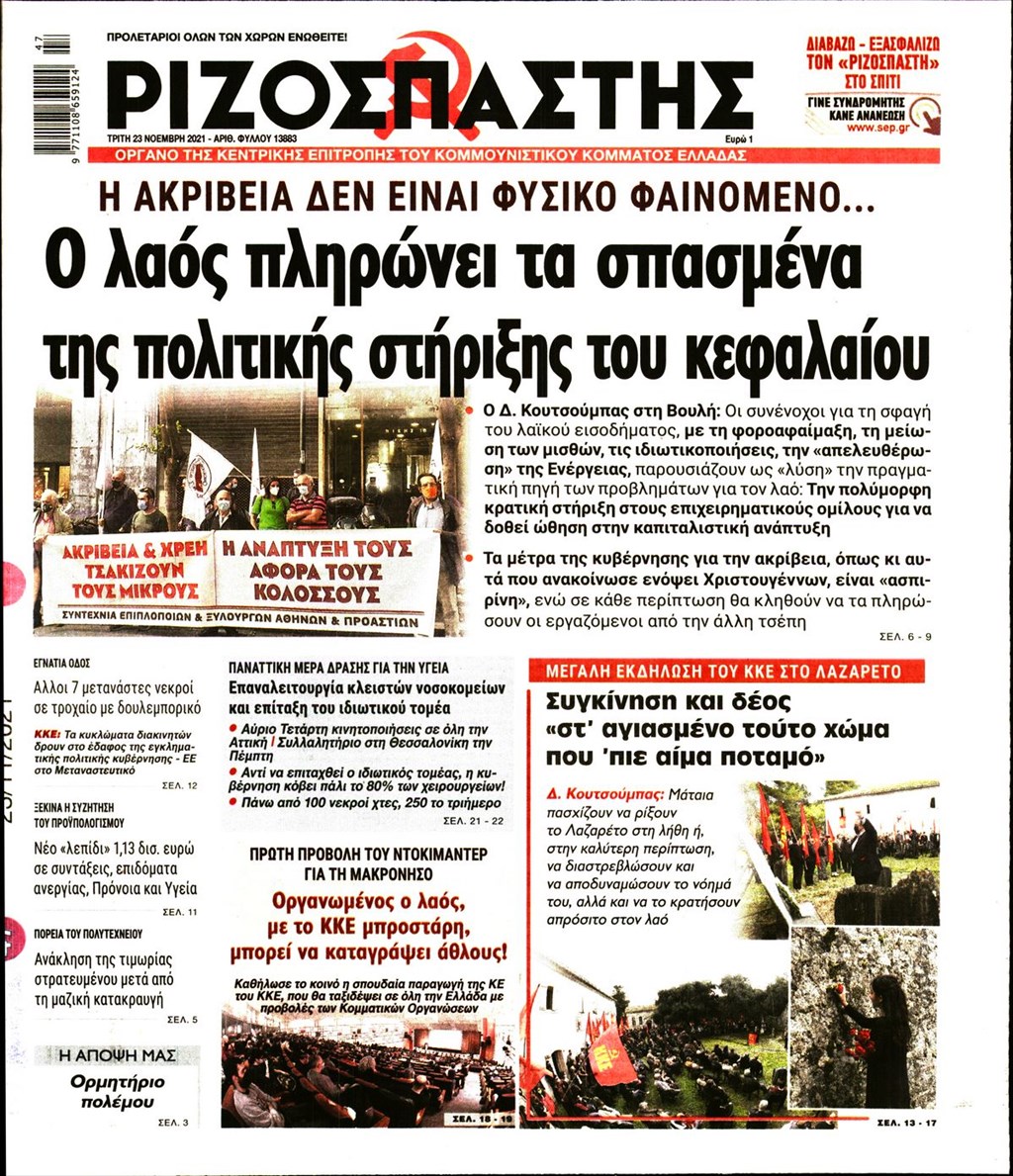 Τα πρωτοσέλιδα των εφημερίδων 23 Νοεμβρίου