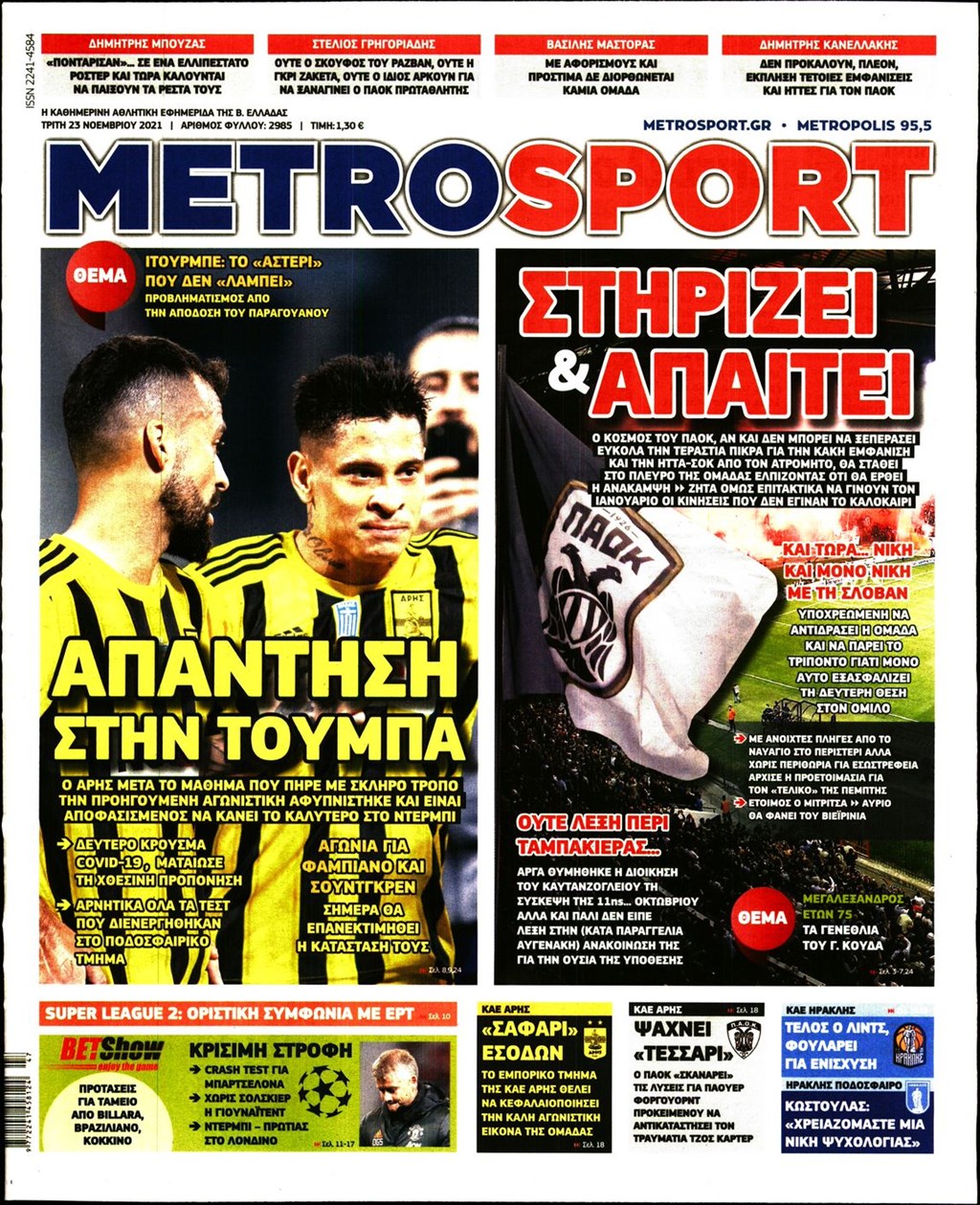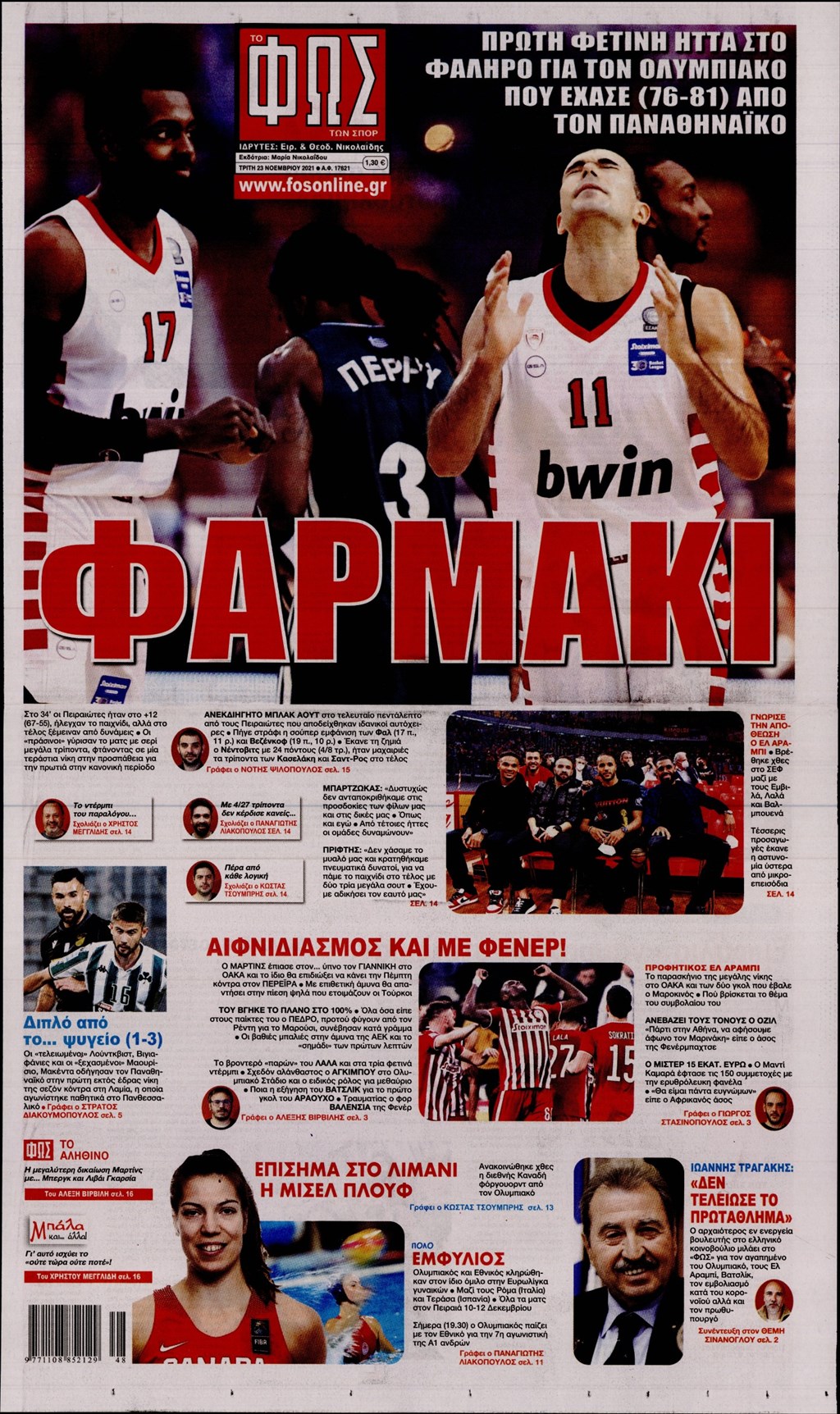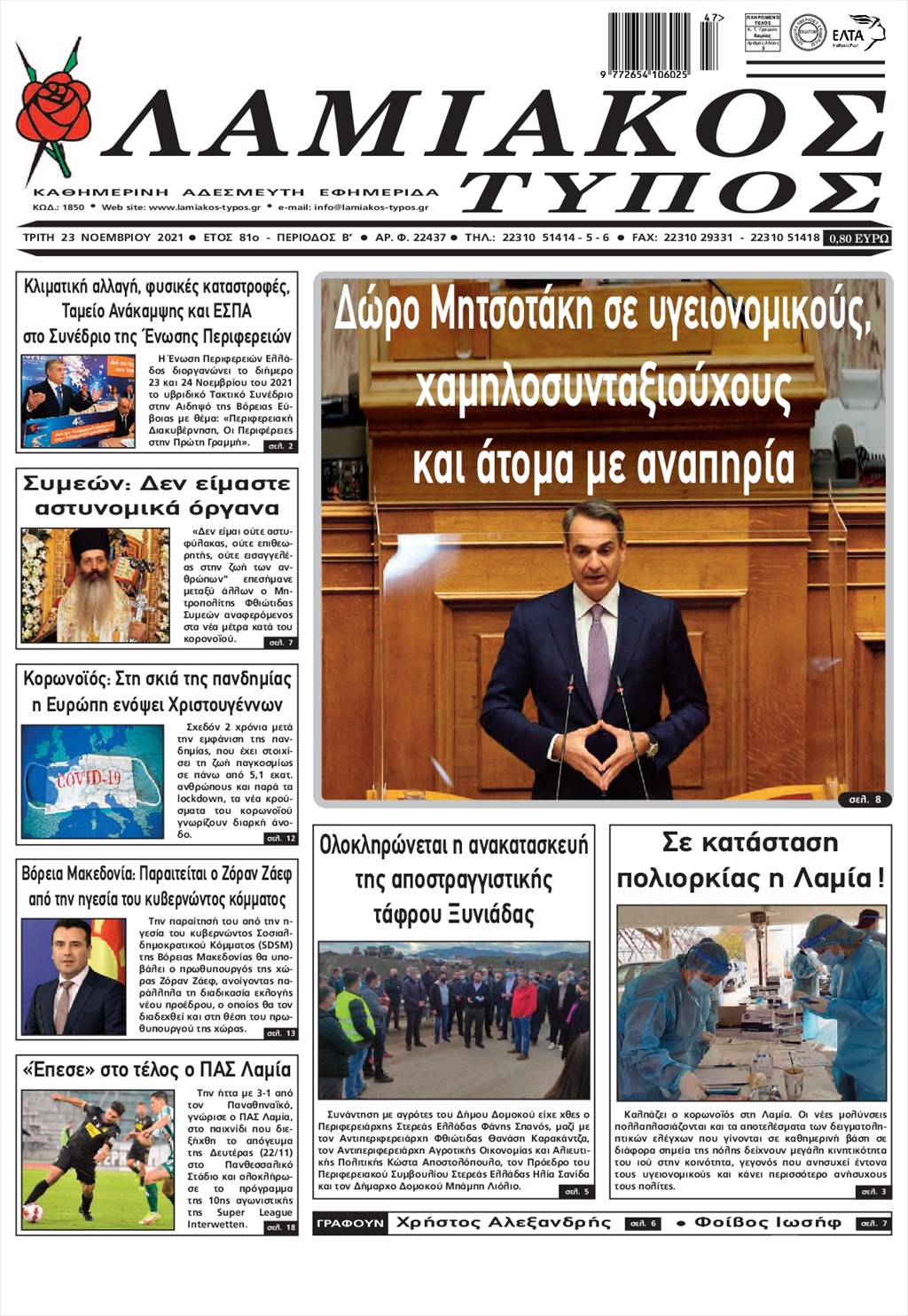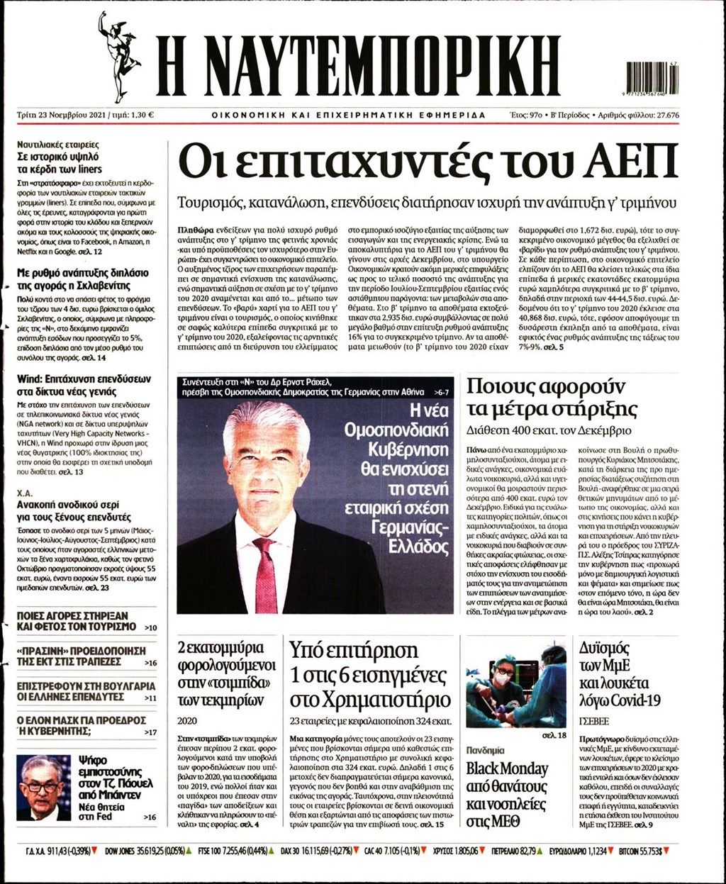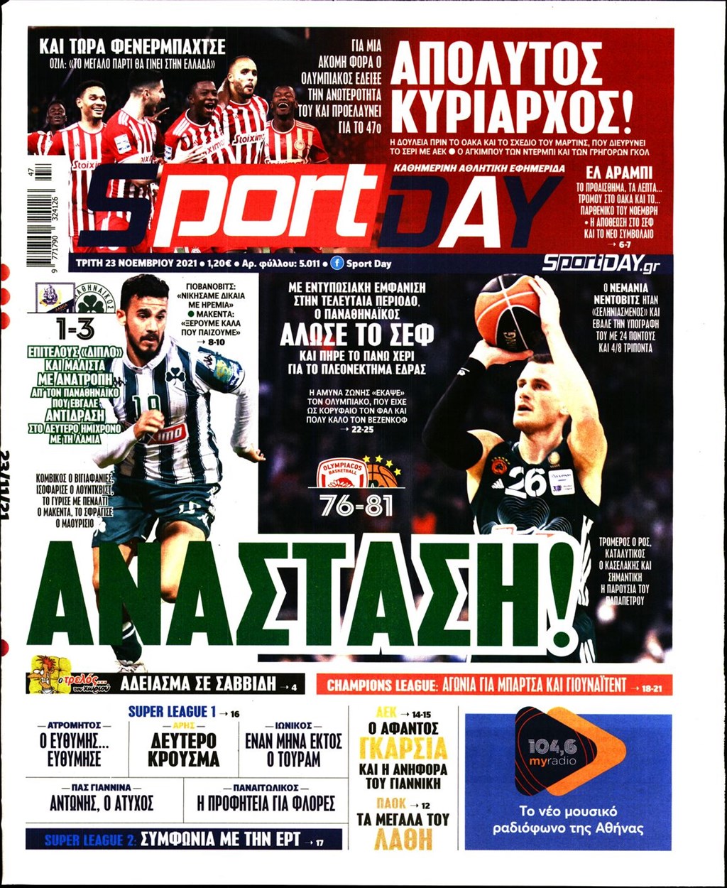 Τα πρωτοσέλιδα των εφημερίδων 23 Νοεμβρίου