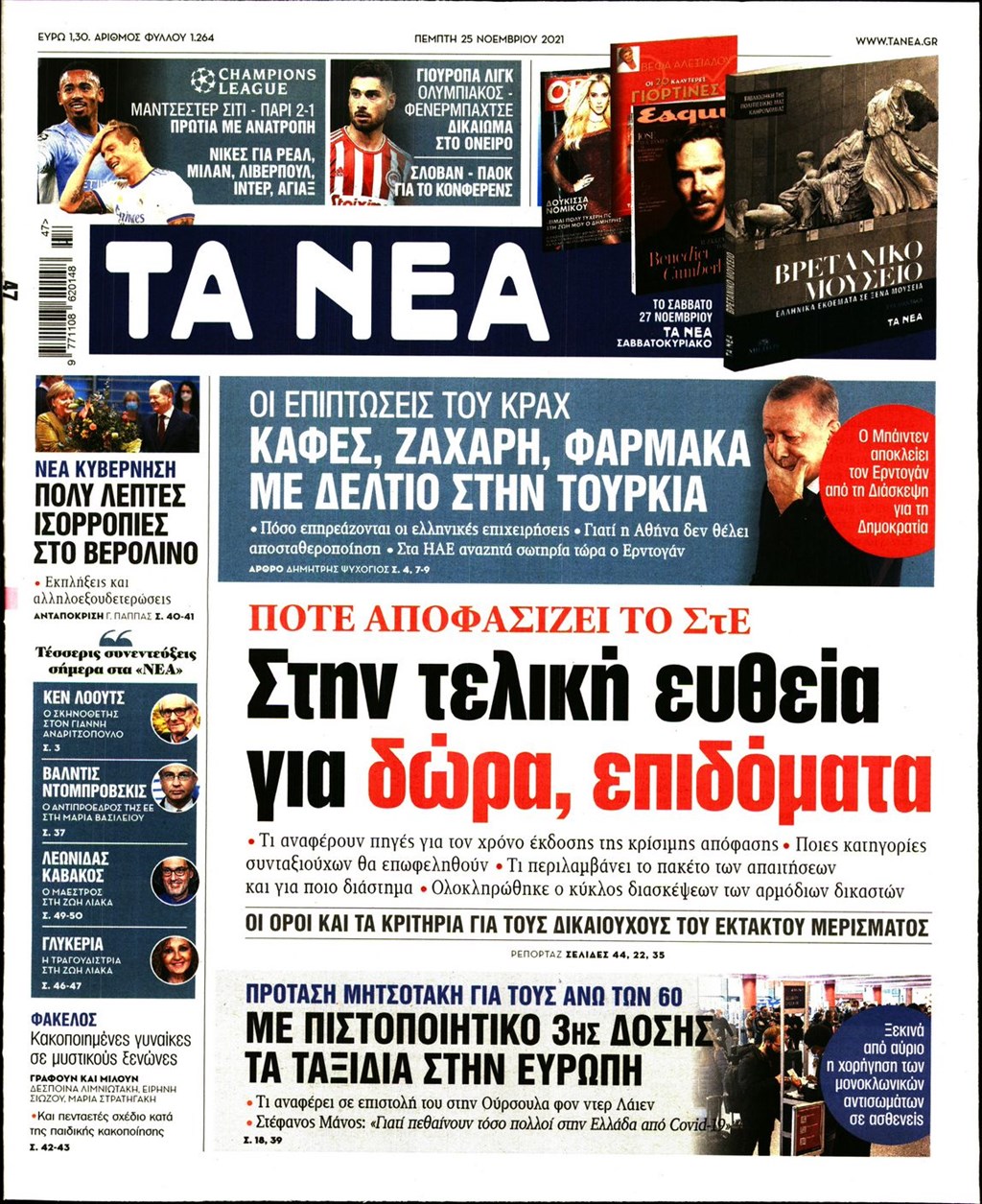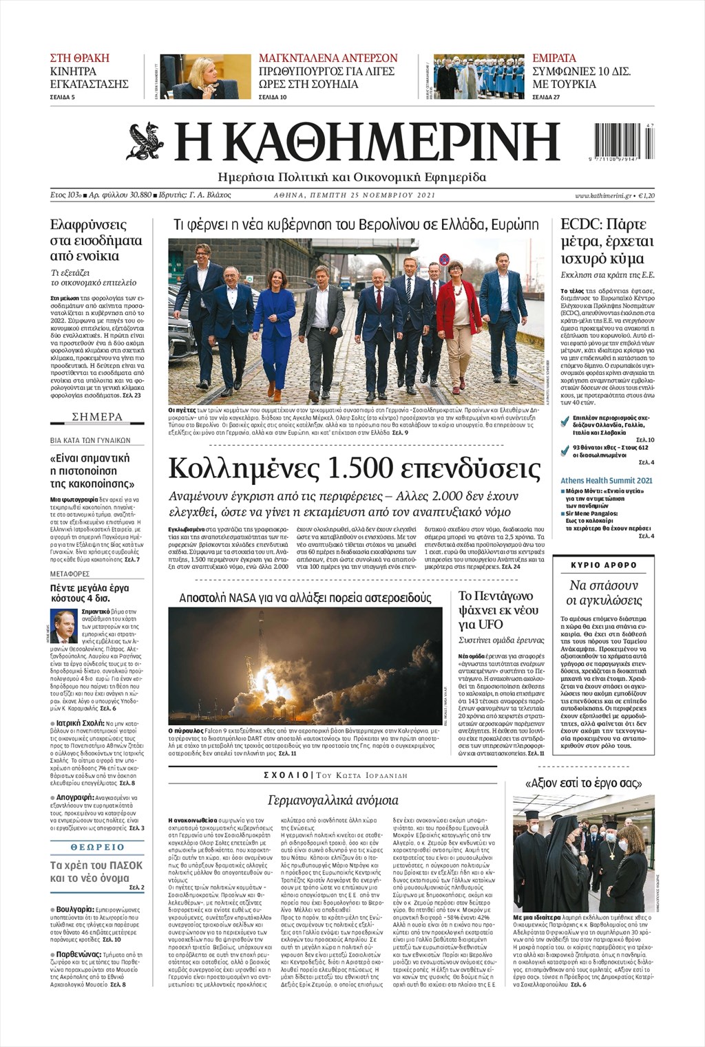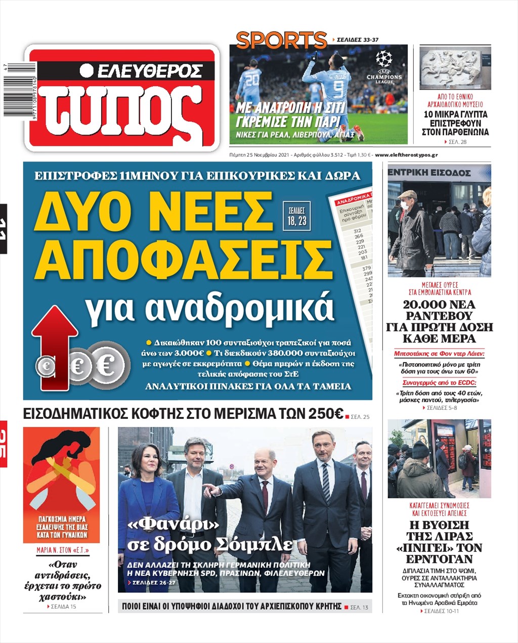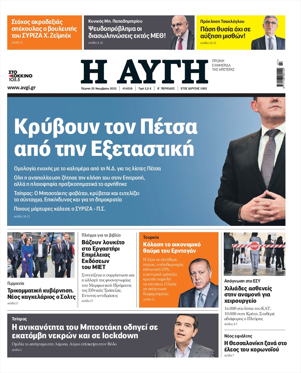 Τα πρωτοσέλιδα των εφημερίδων 25 Νοεμβρίου