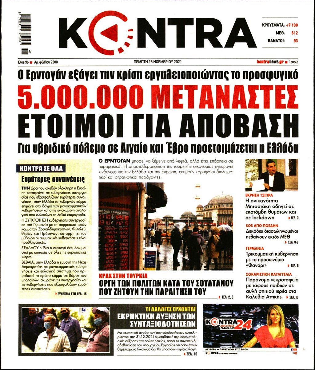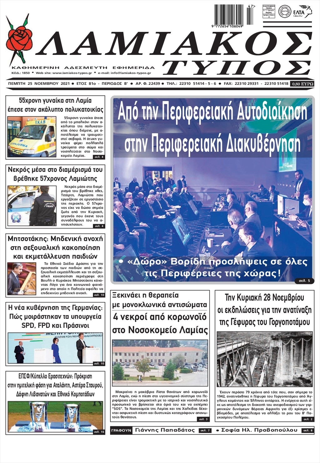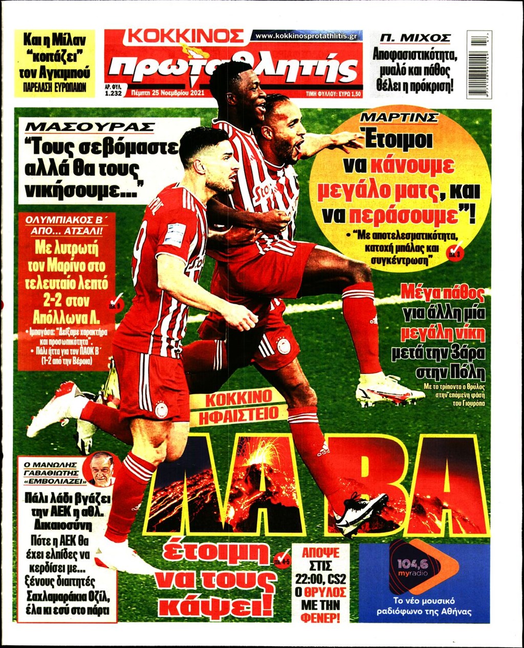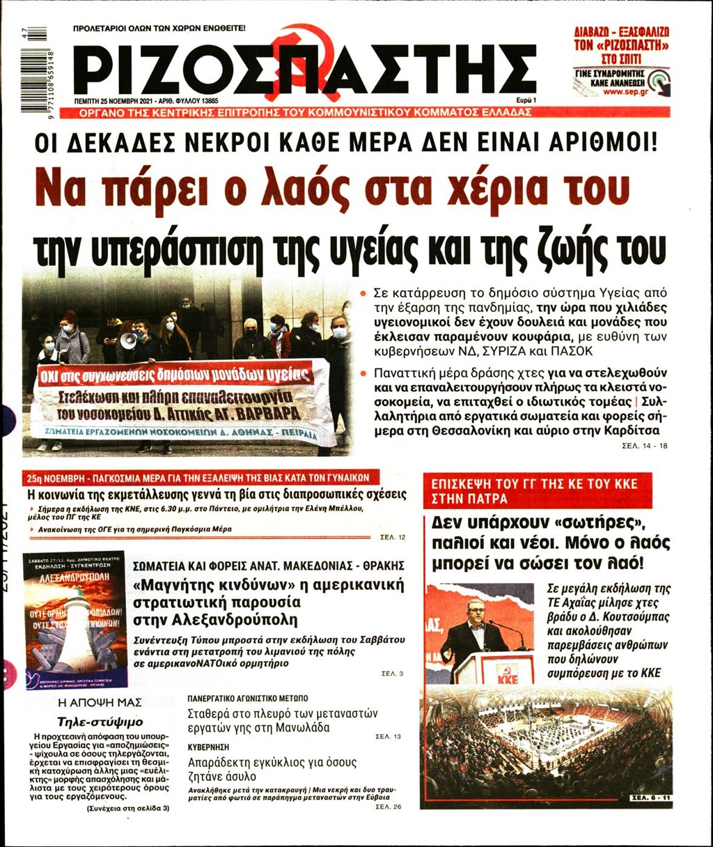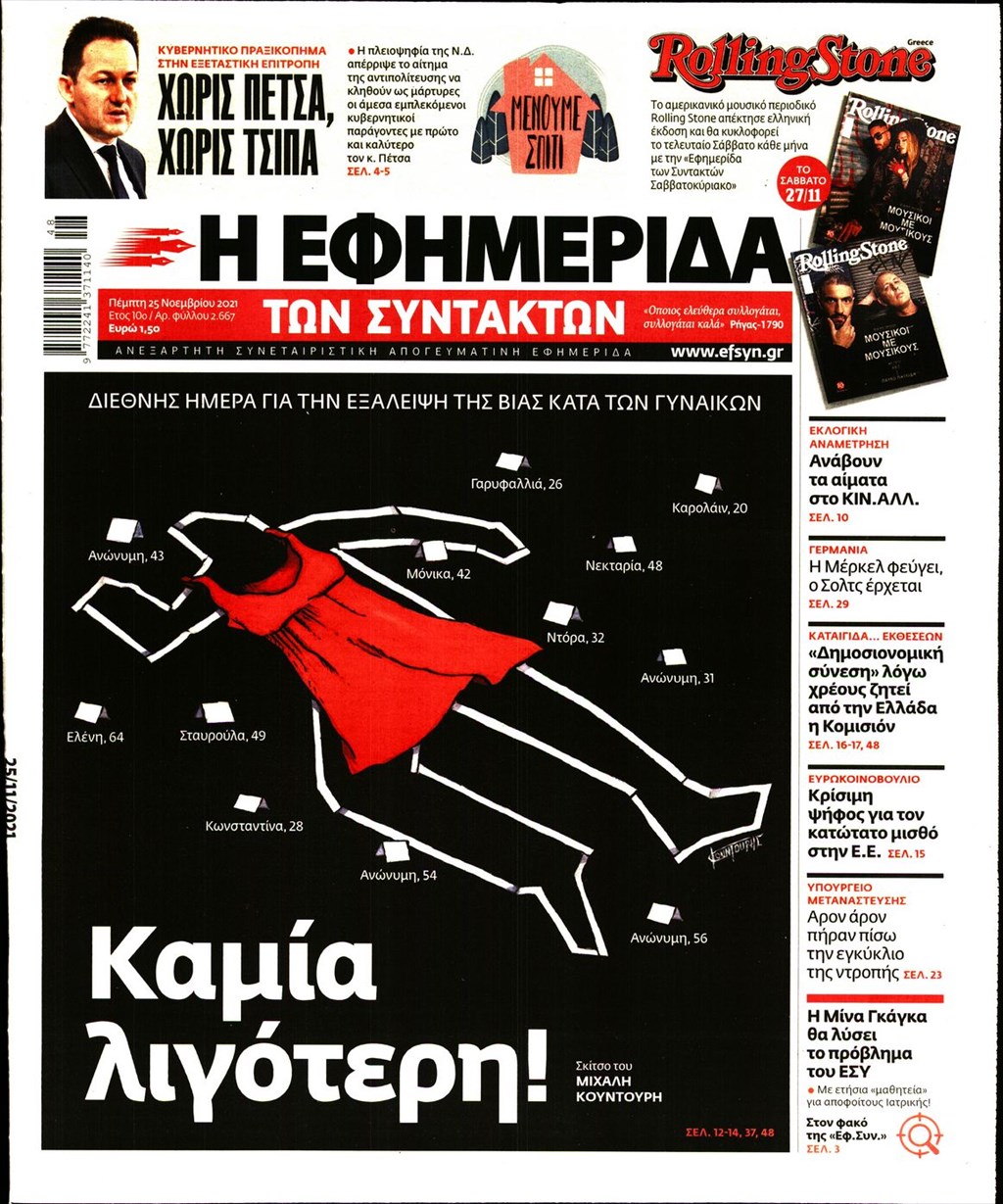 Τα πρωτοσέλιδα των εφημερίδων 25 Νοεμβρίου